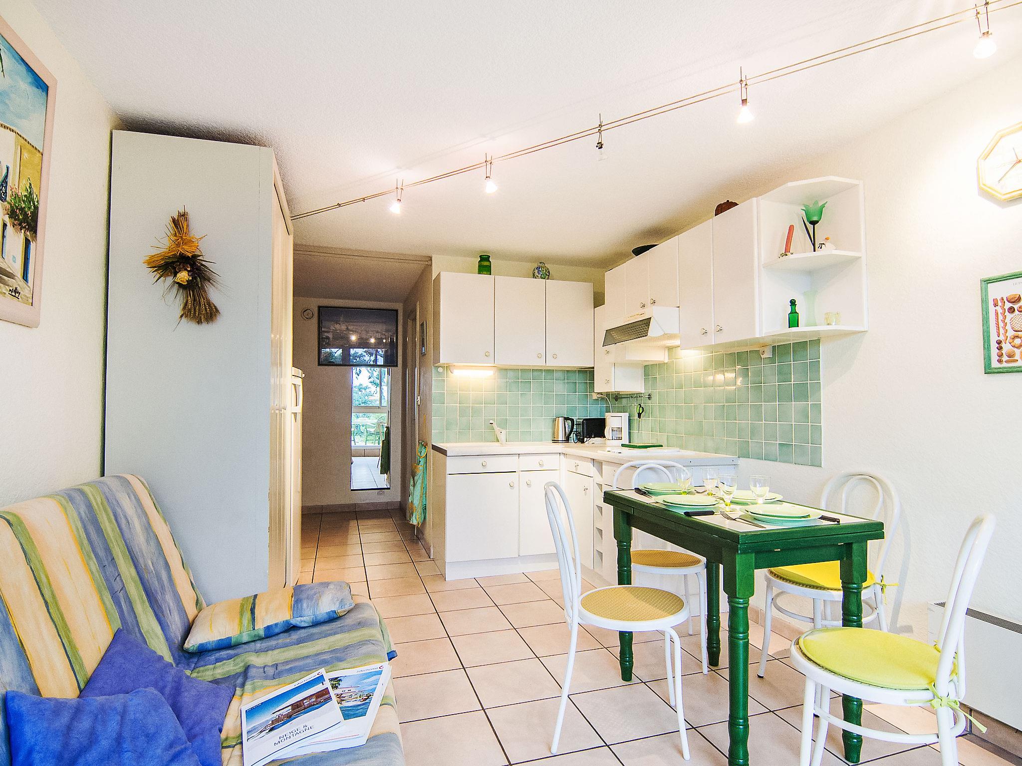 1-room apartment 20 m2, on the ground floor, south facing position. Practical furnishings: living/dining room with 1 double sofabed (140 cm, length 190 cm), TV. Exit to the terrace. Kitchenette (2 hot plates, toaster, kettle, electric coffee machine, combination microwave). Shower/WC. Electric heating. Terrace 15 m2. Terrace furniture. View of the sea. Facilities: Internet (WiFi, extra). Parking space n 34. Please note: maximum 1 pet/ dog allowed. Smoke alarm.