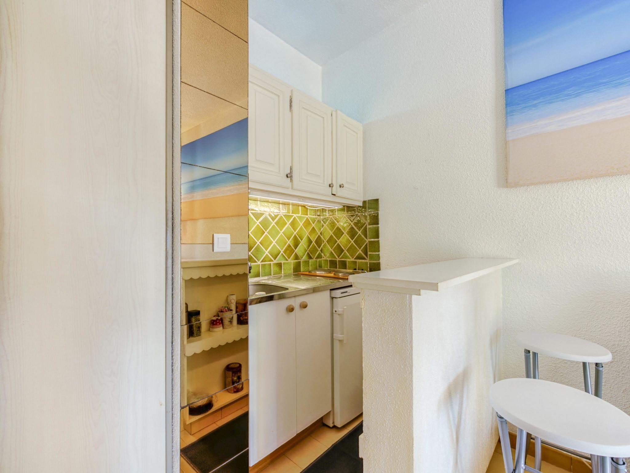 1-room studio 22 m2, on the ground floor, south-west facing position. Beautiful furnishings: living room with 1 sofabed (135 cm, length 190 cm), TV (flat screen), fan. Exit to the terrace. Alcove with sliding door with 1 double sofabed (140 cm, length 190 cm), fan. Kitchenette (2 hot plates, toaster, kettle, microwave, electric coffee machine, Capsules for coffee machine (Nescafé Dolce Gusto) extra). Shower, sep. WC. Electric heating, boiler (100 litres). Terrace 9 m2, south facing position and west facing position, patio 15 m2. Terrace furniture. View of the garden. Facilities: washing machine, iron, hair dryer. Internet (WiFi, free). Parking space n C40 (1 car). Please note: maximum 1 pet/ dog allowed. TV only FR. Smoke alarm. Instead of an enclosed bedroom, some sleeping areas are located in an open-plan area (gallery, alcove, etc.).