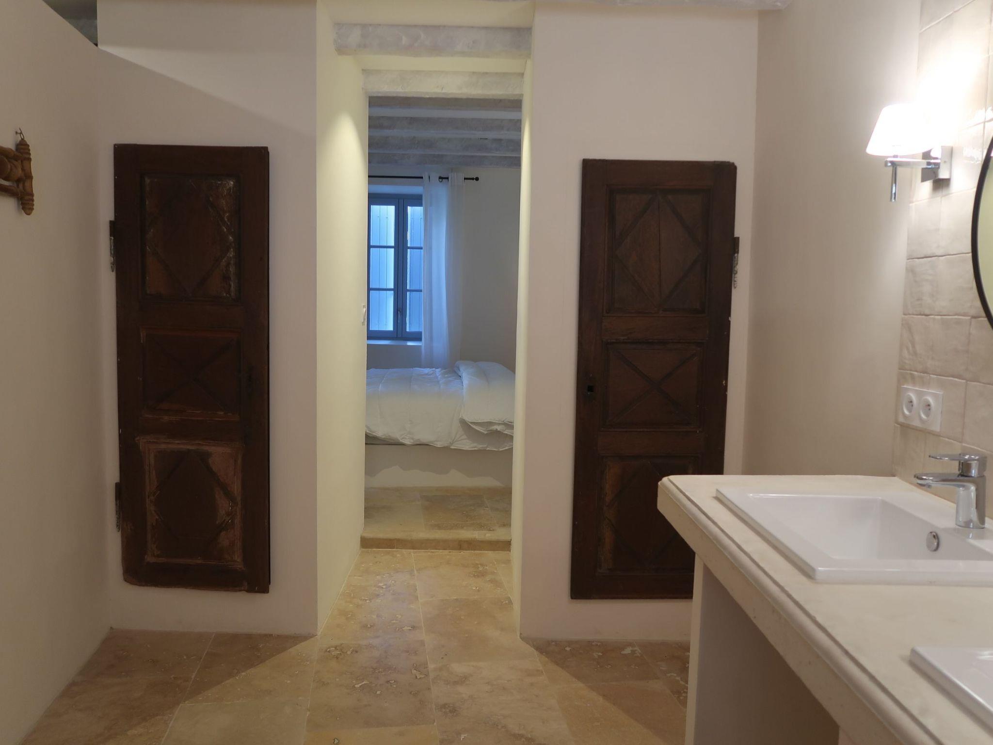 The gîte we created in 2021, it has a cosy living room with air conditioning, a kitchen equipped with an induction hob, oven, fridge/freezer, dishwasher, nespresso machine and of course plates/cutlery/glasses etc. It has a spacious bedroom with a king-size bed (180x200) and an en-suite bathroom with 2 wardrobes, a spacious walk-in shower, two sinks and a separate toilet.