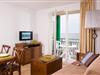 Stue(dobbeltsovesofa), åbent køkken(komfur(Komfur med fire kogeplader, glaskeramisk), combi-mikroovn, opvaskemaskine , køleskab), soveværelse(dobbeltseng), badeværelse(badekar eller bruser, håndvask, toilet), balkon eller terrasse, havemøbler