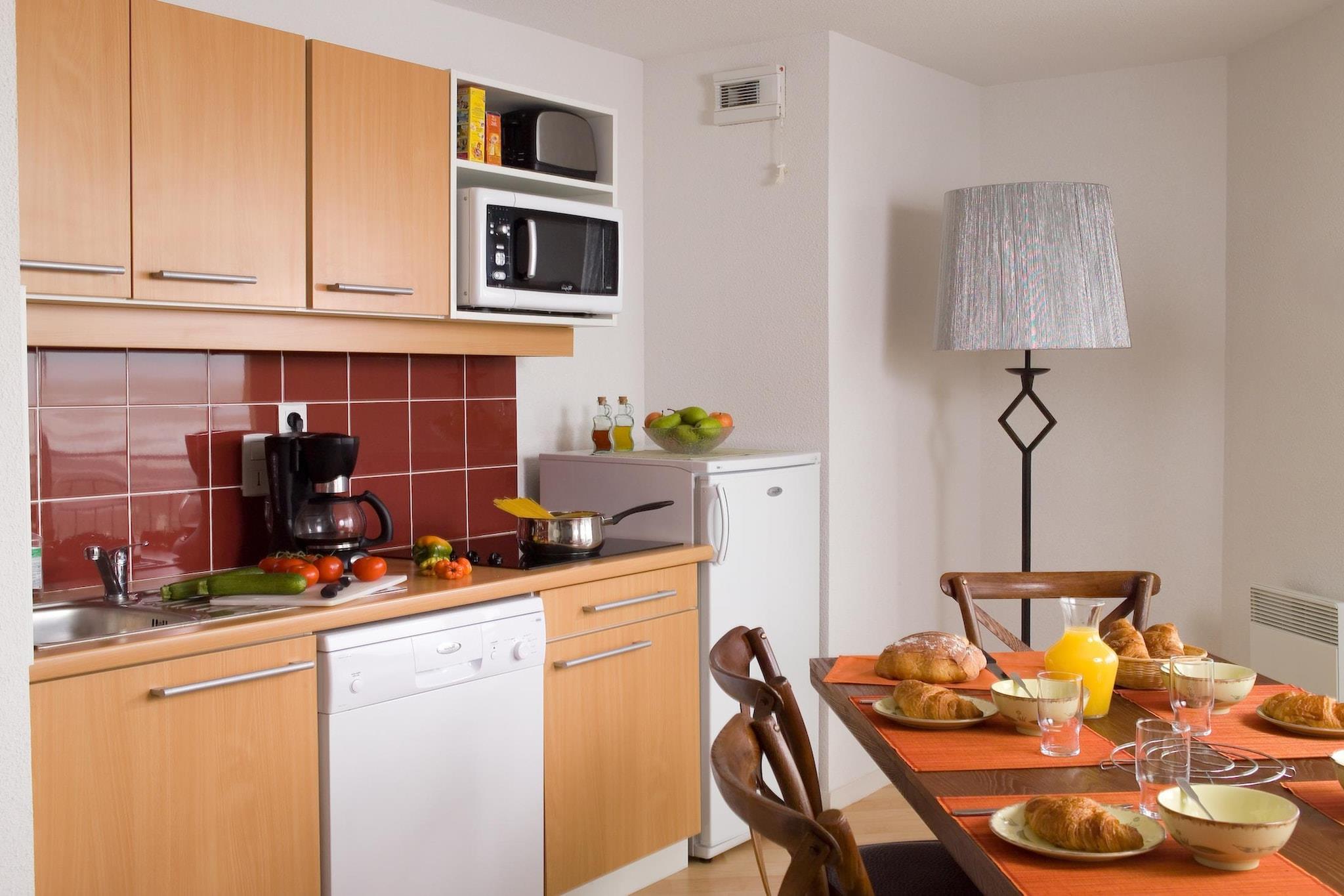Stue(dobbeltsovesofa), åbent køkken(komfur(Komfur med fire kogeplader, glaskeramisk), combi-mikroovn, opvaskemaskine , køleskab), soveværelse(dobbeltseng eller 2 enkeltsenge Senge), badeværelse(badekar eller bruser, håndvask, toilet), balkon eller terrasse, havemøbler