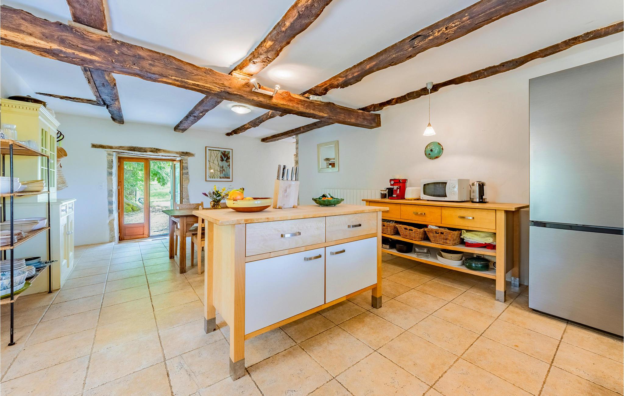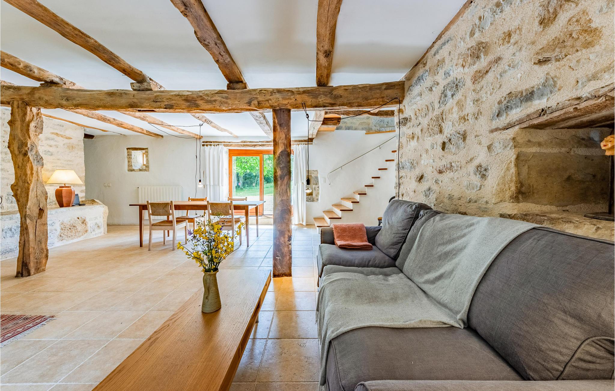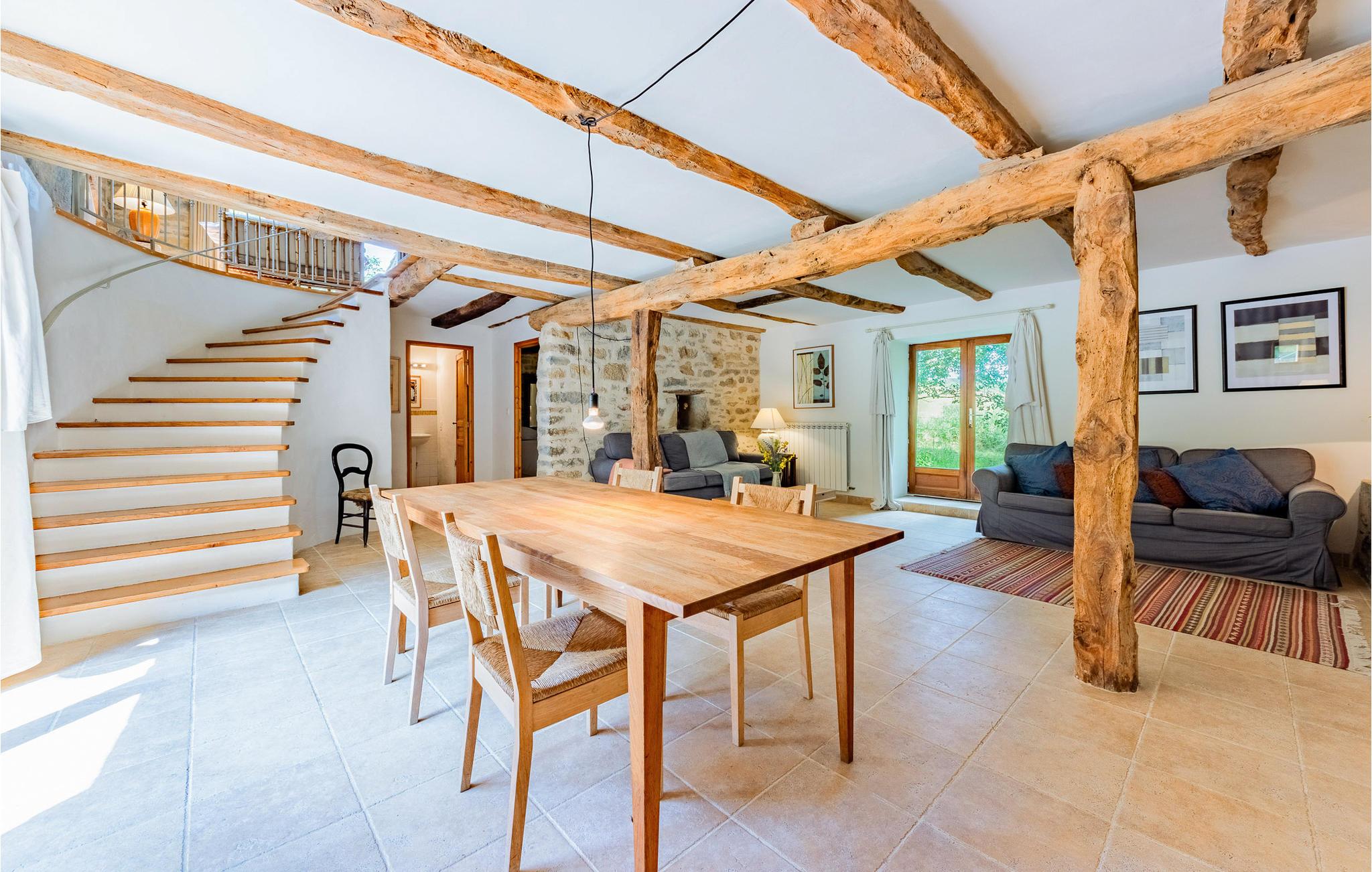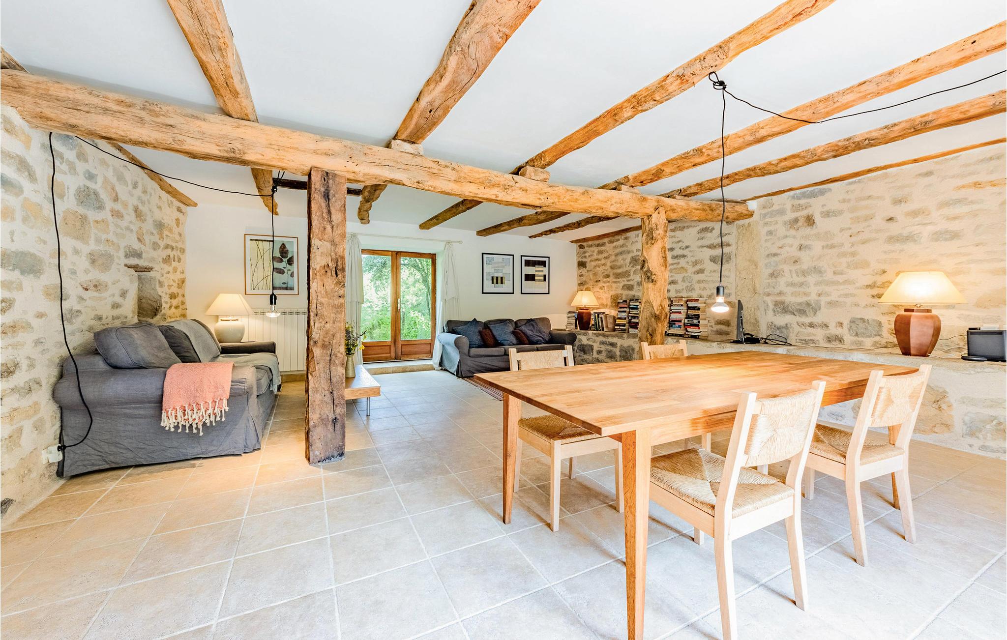 Nyd en drømmeferie i denne charmerende, nænsomt renoverede gård i Caylus. Kombinationen af ??original charme med synlige stenvægge og træbjælker samt moderne møbler og stilfuld belysning skaber en unik atmosfære. Det store køkken, udstyret med moderne bekvemmeligheder, lægger op til at tilberede regionale delikatesser. Slap af i den hyggelige stue med sine indbydende sofaer og afslut dagen med en bog eller et glas vin.