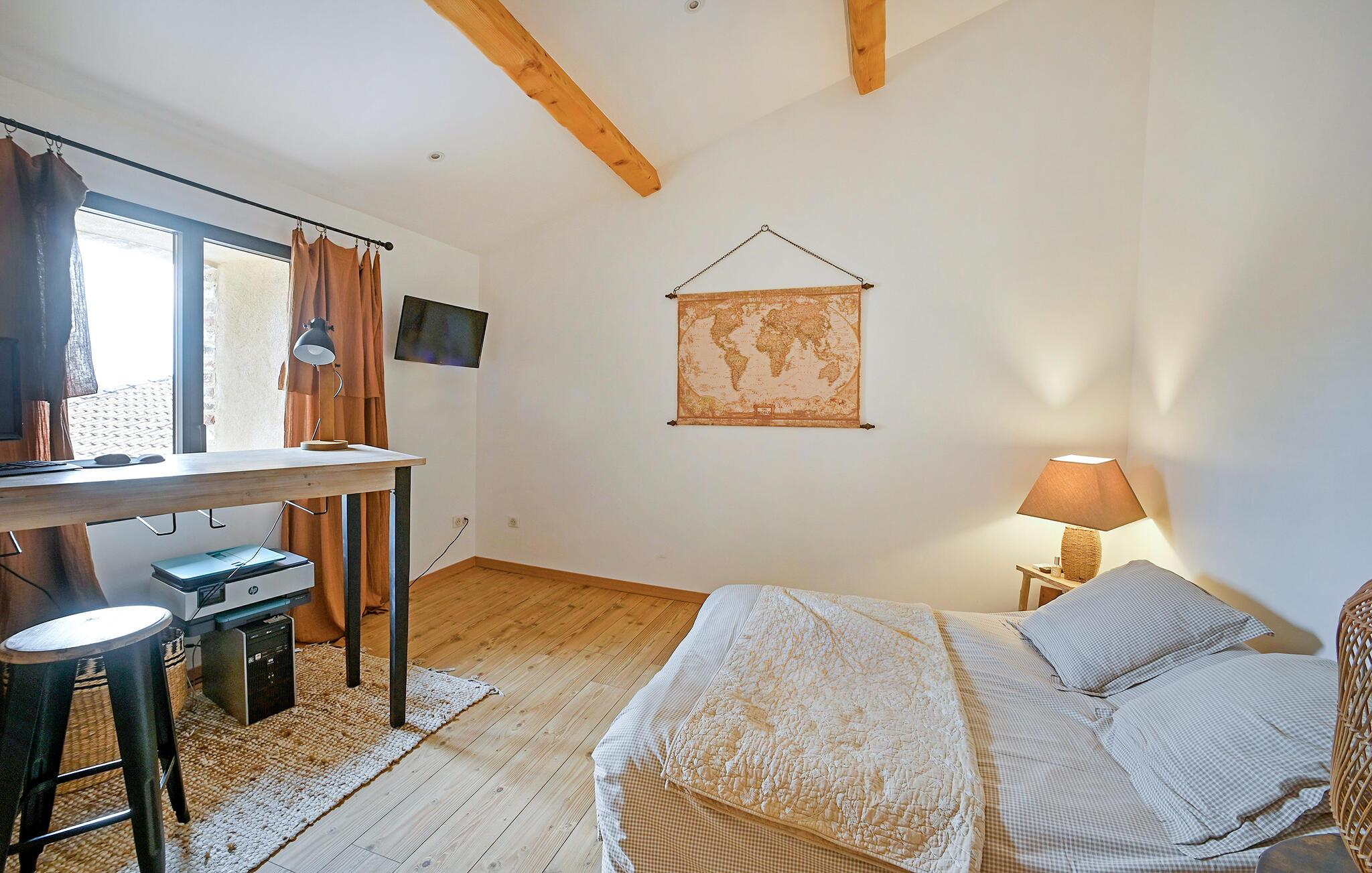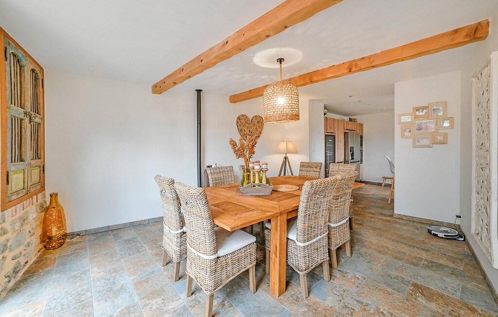 Stenhuset blev opført i 1700-tallet, men er blevet gennemrenoveret på en helt fabelagtig facon, og her venter jer en skøn base for en ferie med en større familie eller venneflok. Indretningen fremtræder på én gang rustikt og komfortabelt med en flot kombination af synlige stenvægge, varme træbjælker og gode, moderne faciliteter. Sov godt igennem i de behagelige soveværelser, inden I mødes til morgenmad i det veludstyrede køkken. Herfra får I en flot udsigt over landskabet, og om aftenen kan I hygge jer i al slags vejr ved baren i udestuen.