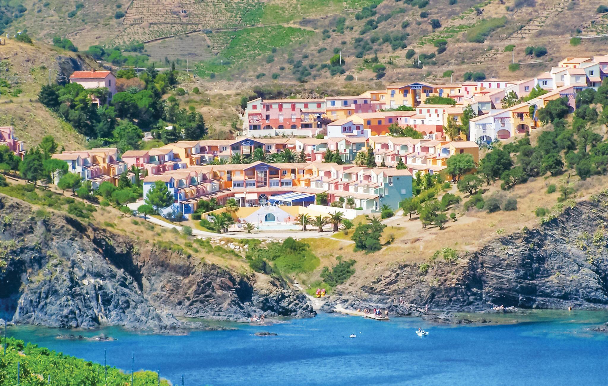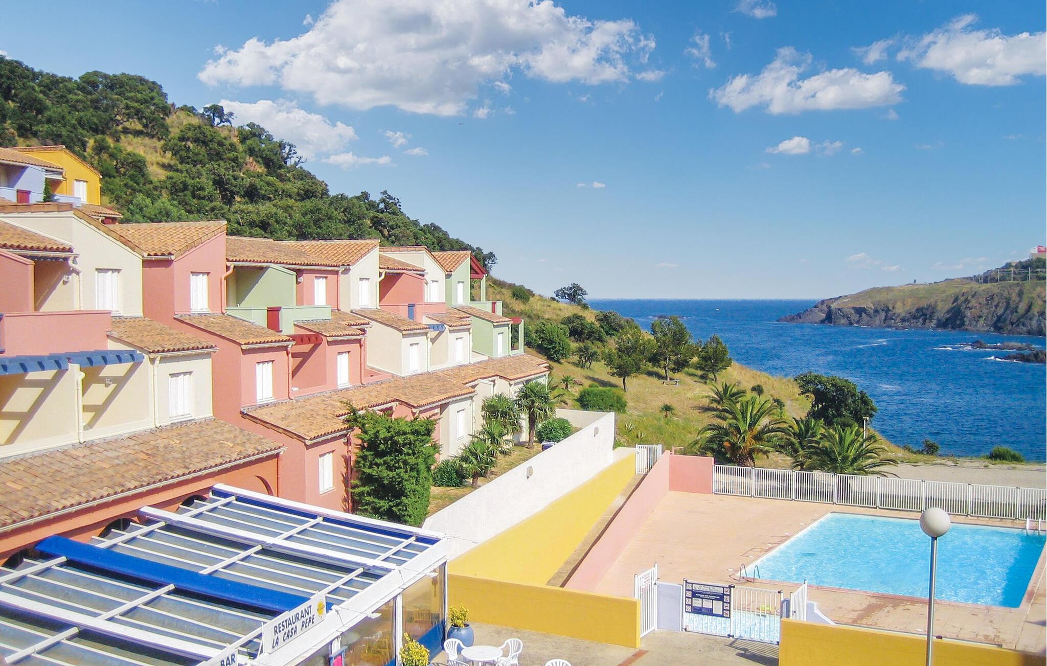 Velkommen til denne lejlighed, der er ligger i et feriekompleks i udkanten af ??Côte Vermeille, kun få kilometer fra den spanske grænse. Boligen emmer af middelhavscharme og varme farver, og den er den ideelle base for en afslappende pause fra hverdagen, hvor I kan se frem til hyggelige dage ved stranden og mange spændende udflugtsmål. Lad blot dagen starte ud med en lækker morgenmad i køkkenet eller udendørs, inden I begiver jer ud på eventyr eller ned til den store pool.