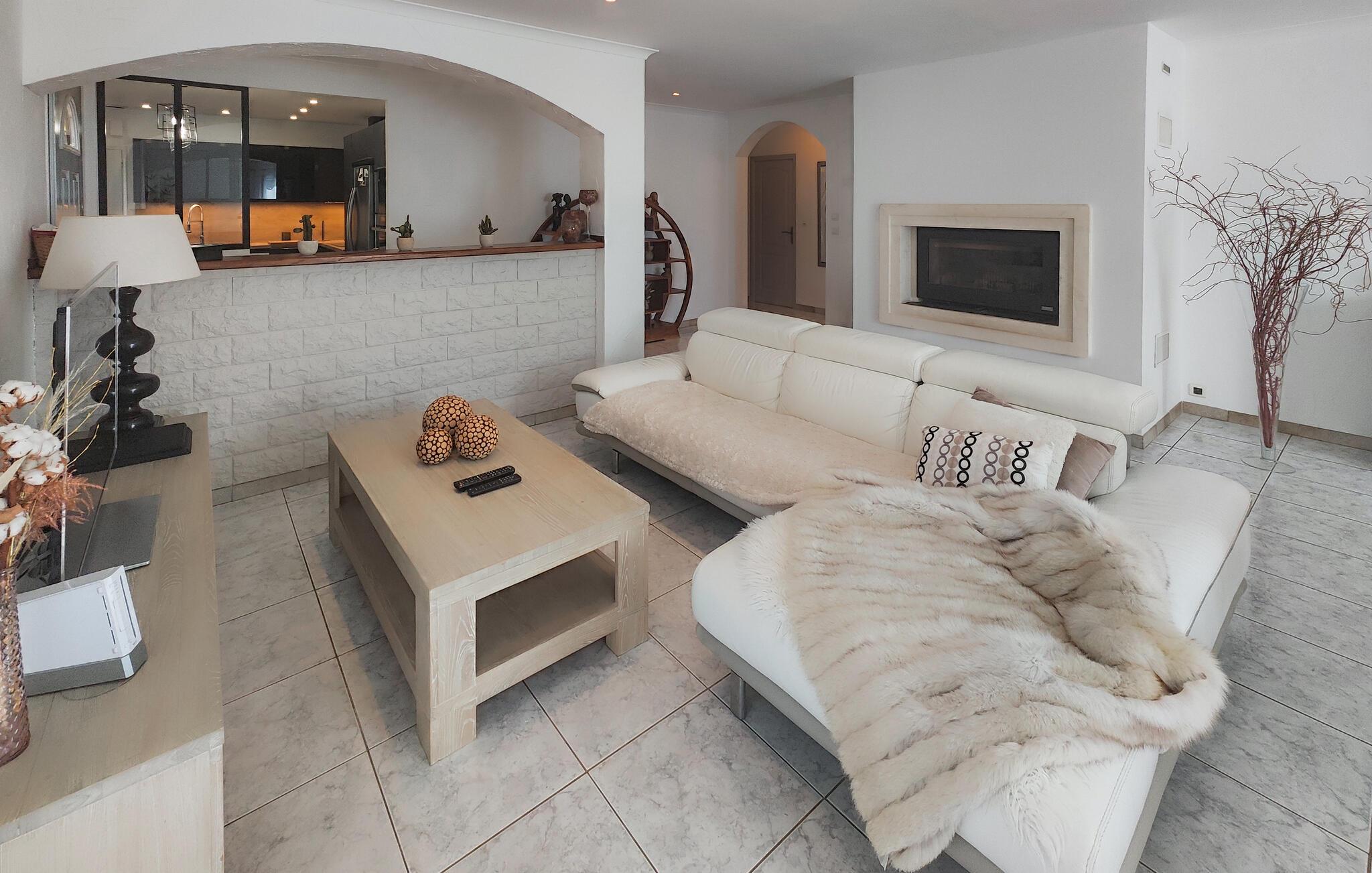 Træd indenfor og lad jer betage af det lyse og luftige interiør i dette komfortable feriehus. Glæd jer til at lave mad sammen i det moderne køkken og planlægge jeres aktiviteter ved spisebordet. Hyg jer med familien i den store sofa til en hyggelig spilleaften eller slap af med en stille bog.
