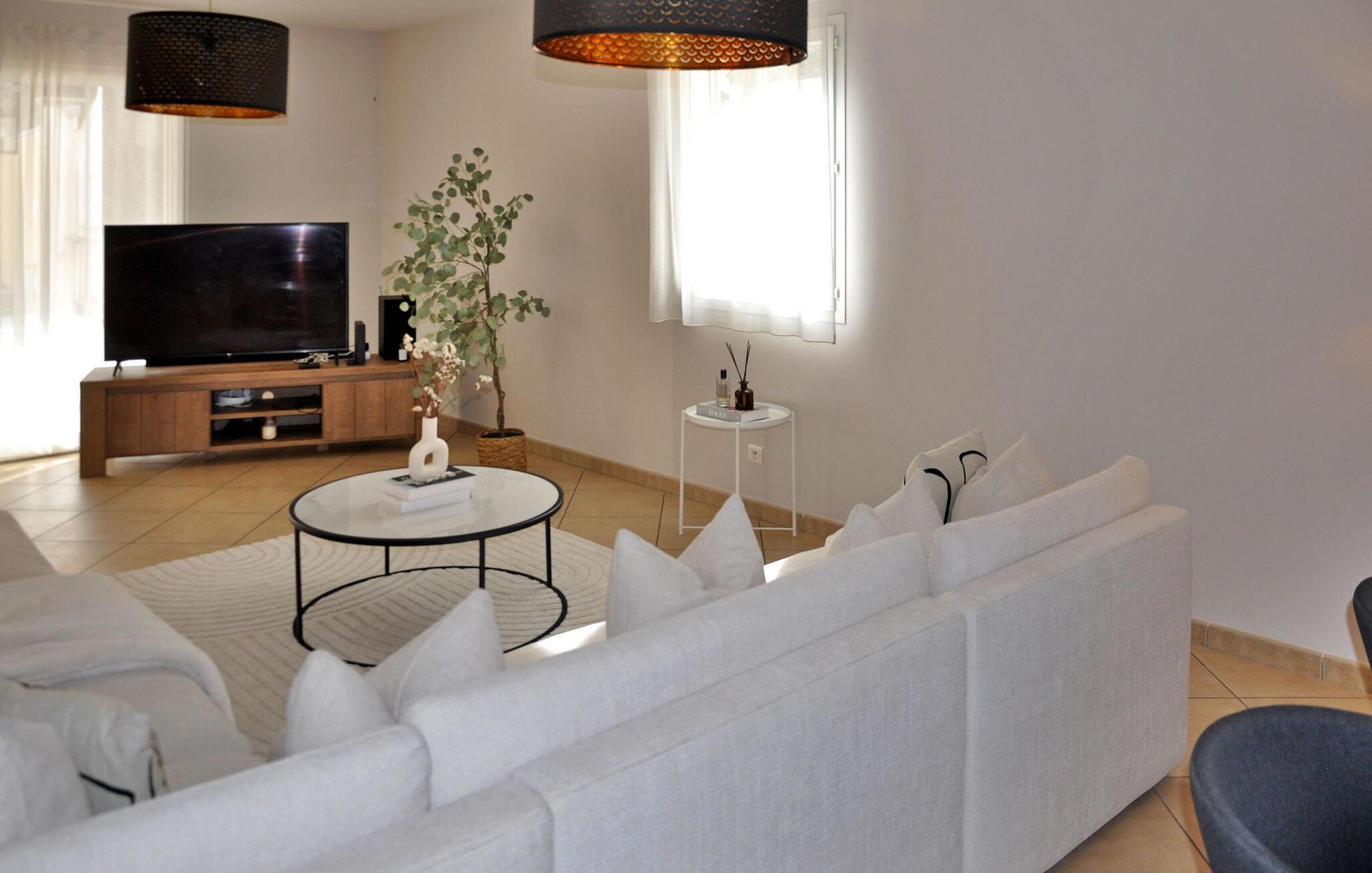 Oplev en pragtfuld ferievilla i Châteauneuf de Gadagne, perfekt beliggende mellem Isle sur la Sorgue og Avignon, og tilbyder et fredfyldt tilflugtssted. Omfavnet af landsbyens charmerende centrum med alle bekvemmeligheder kun 250 m væk, præsenterer denne villa en rolig have prydet med en skyggefuld terrasse og en privat pool. Stueetagen byder dig velkommen med et køkken med aircondition, moderne apparater og en central ø. Spise-/opholdsområdet har komfortable siddepladser til afslapning, mens sommerkøkkenet giver en dejlig plads til fritid og direkte adgang til haven og poolen. Derudover er der et soveværelse og et praktisk brusebadeværelse på dette niveau, mens ovenpå finder du de resterende soveværelser og badeværelse. Udenfor ligger villaen på rummelig grund. En overdækket terrasse med udsigt til haven giver ideelle rammer til spisning. Den private swimmingpool, sikret med en elektrisk rulleskodde, måler 9m x 4m og suppleres af en terrasse med liggestole. Golfentusiaster kan spille 4 km væk på "Golf de Châteaublanc" eller på "Golf du Grand Avignon" (7 km). I nærheden kan du besøge den berømte landsby Isle sur la Sorgue, dens antikvitetsbutikker og det traditionelle provencalske marked. Fontaine de Vaucluse, Avignon med sin berømte bro og pavens palads. Bemærk venligst, at villaen ligger langs vejen mod Morières lès Avignon - Avignon (D901), hvilket tillader noget trafikstøj, selvom ejendommen er indhegnet af høje mure. Forkæl dig selv med roen og komforten i denne ferievilla, der tilbyder en perfekt balance mellem bekvemmelighed, fritid og afslapning midt i den smukke region Châteauneuf de Gadagne.