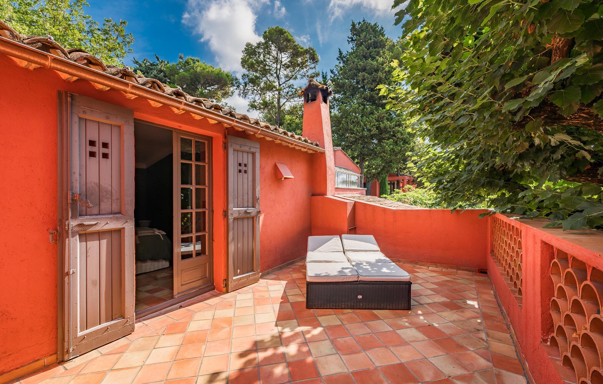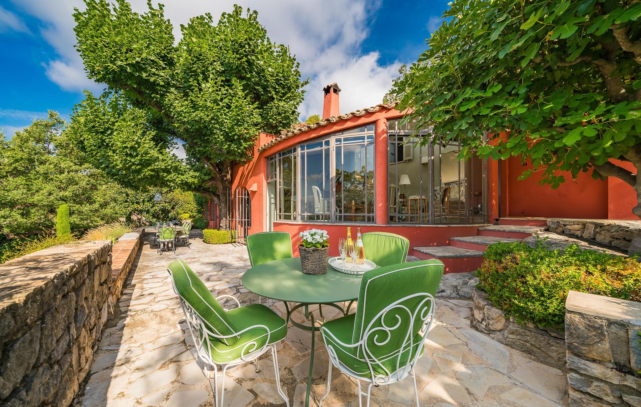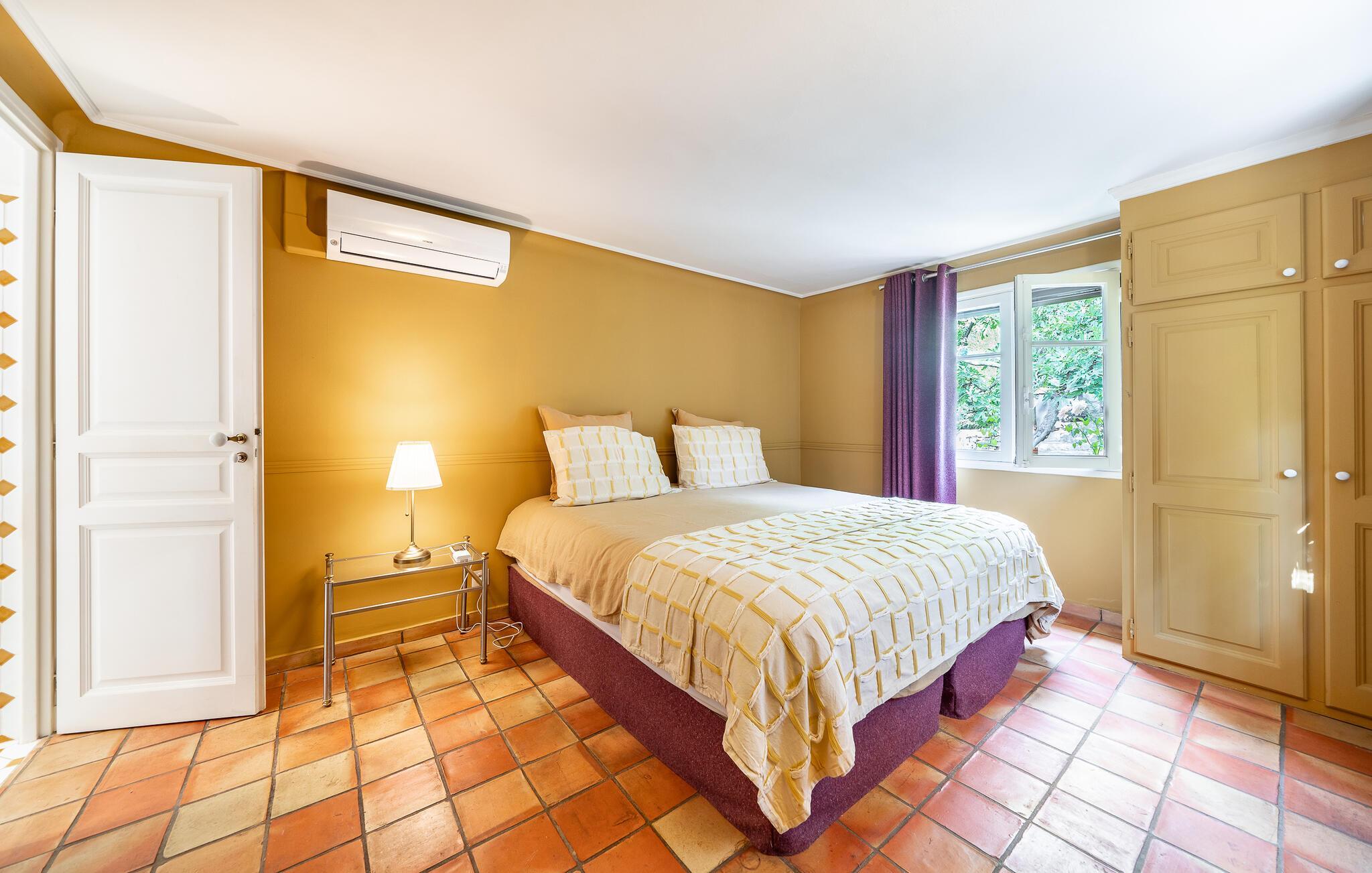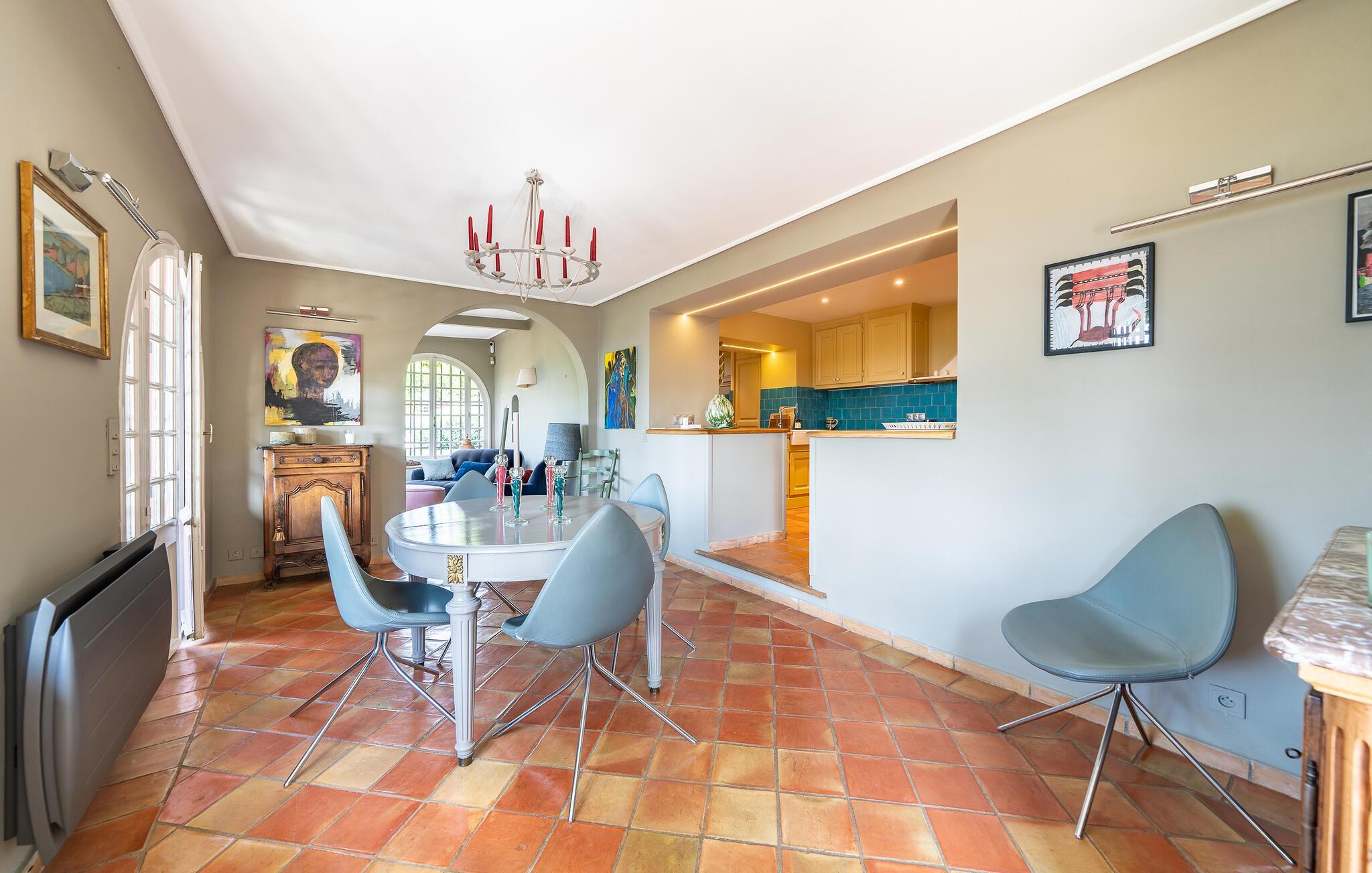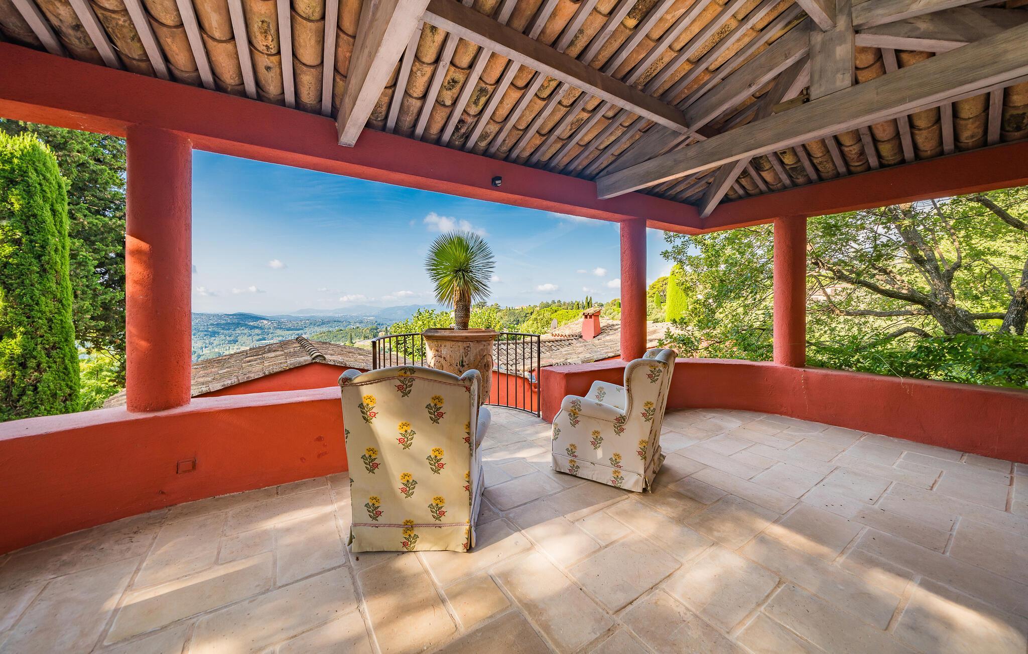 Jeres hus i Chateauneuf-Grasse, omgivet af et malerisk landskab, tilbyder jer det ideelle sted til afslapning og ro. Start dagen på en af de rummelige terrasser, som er udstyret med hyggelige siddepladser. Tag en forfriskende dukkert i poolens kølige vand, og nyd roen samt den vidtrækkende udsigt over det omkringliggende landskab. Husets stilfulde indretning, der giver en følelse af slotsstemning, kombinerer traditionel charme med moderne bekvemmeligheder. Sæt jer til rette i den lyse lounge, eller tilbered lækre måltider i det veludstyrede køkken. Benyt muligheden for at spise udendørs, hvor det skyggefulde spiseområde under træerne skaber rammerne for afslappede måltider.