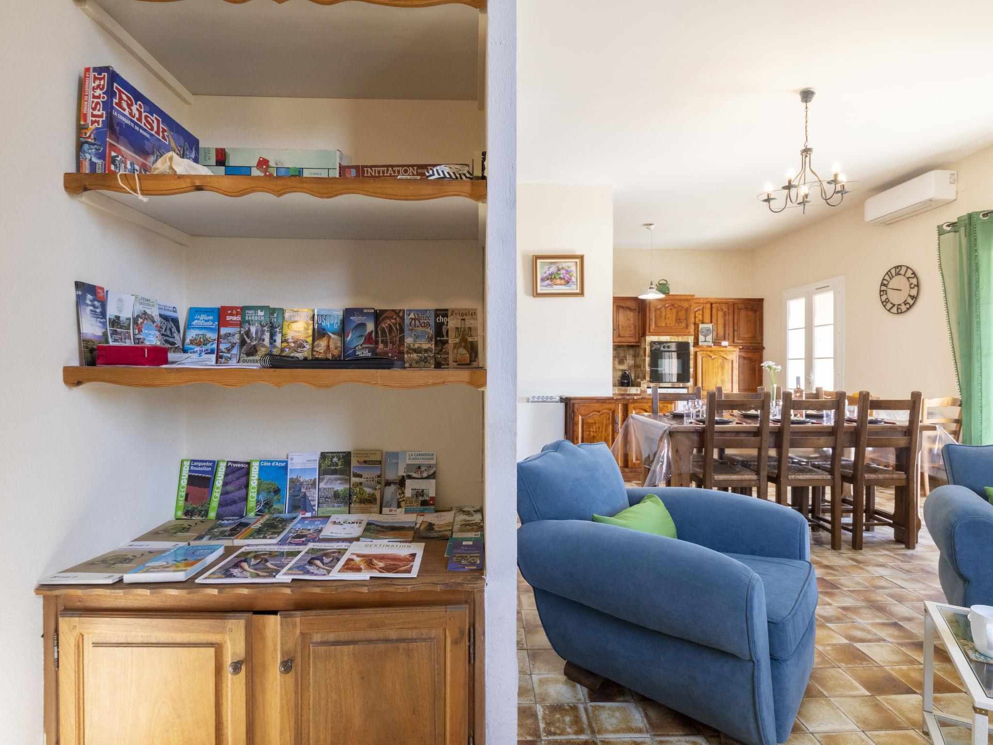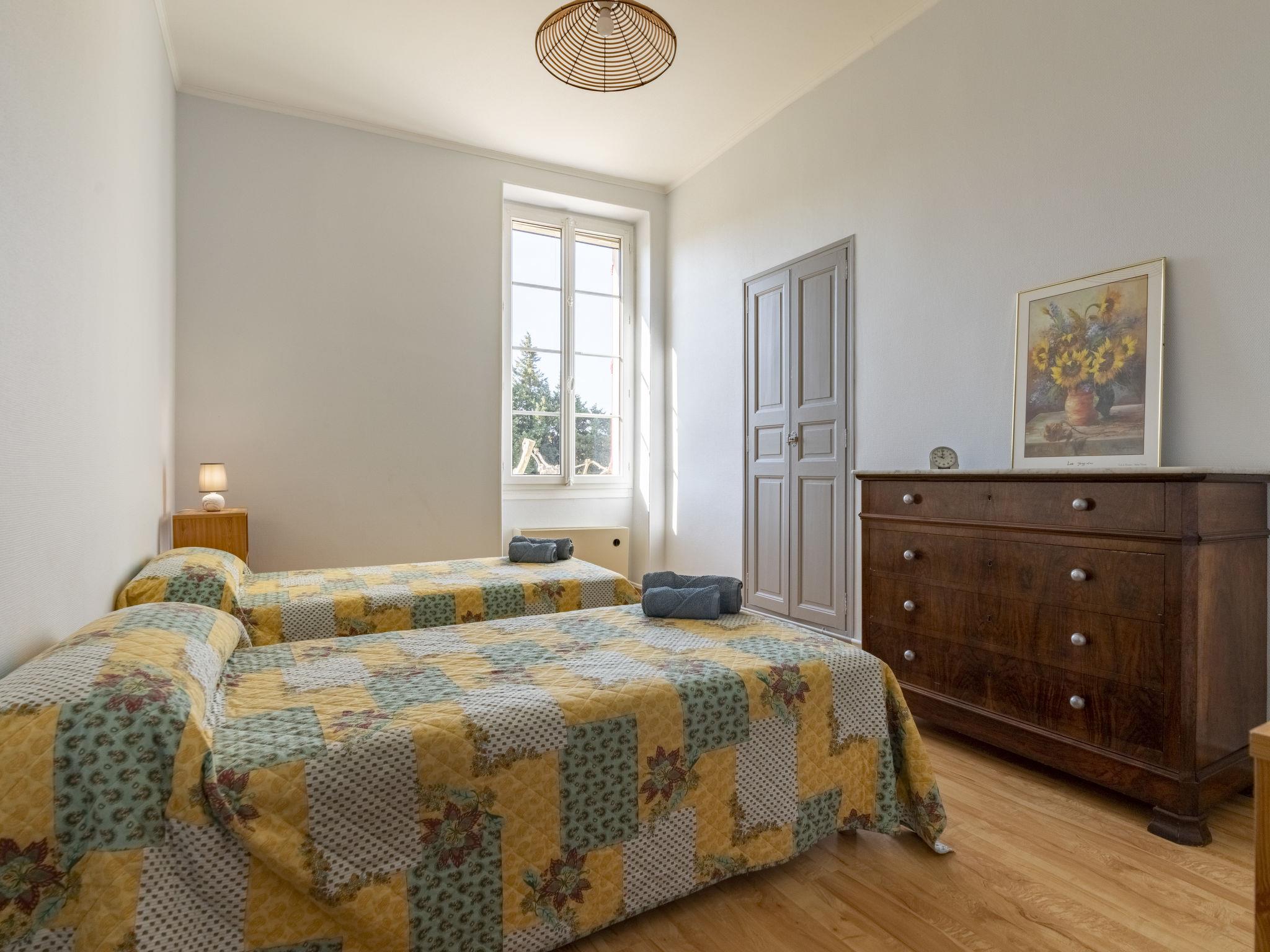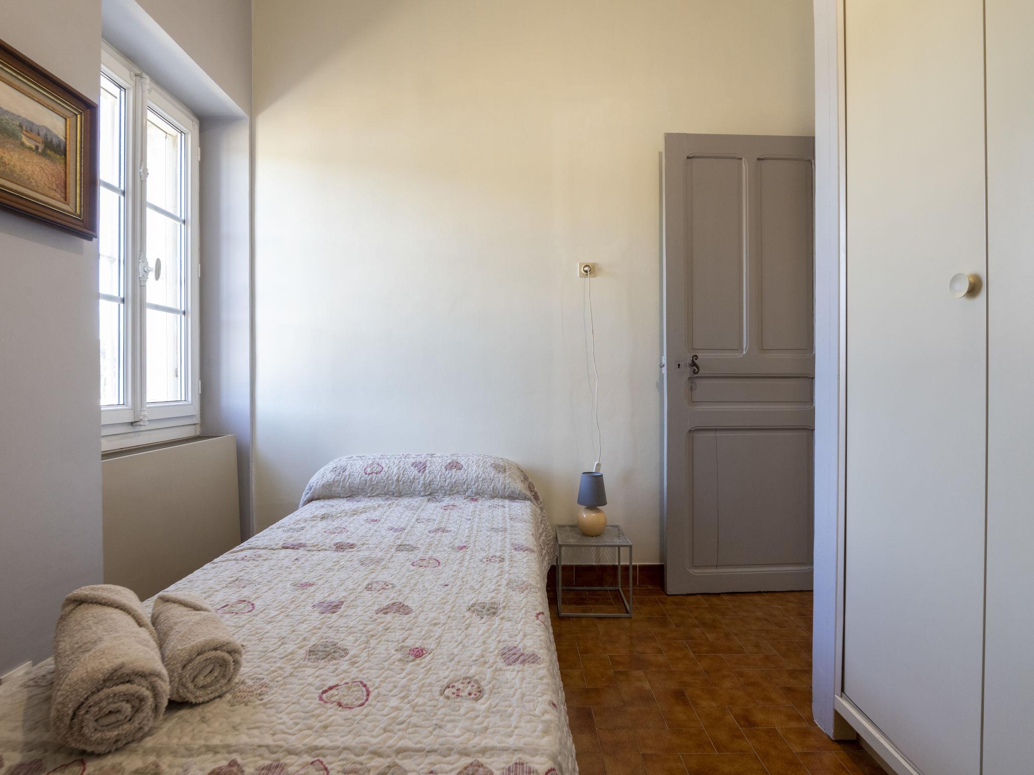 "Mas de la Gourmette", 4-room apartment 90 m2 on 1st floor. Simple and comfortable furnishings: living/dining room 30 m2 with open-hearth fireplace (only for decoration), dining nook and TV (flat screen), air conditioning. Exit to the balcony. 1 room with 1 french bed (160 cm, length 200 cm). 1 room with 2 beds (90 cm, length 190 cm). 1 room with 1 bed (90 cm, length 190 cm). Open kitchen (1 hot plate, oven, dishwasher, 3 gas rings, toaster, kettle, microwave, electric coffee machine) with dining table. Exit to the balcony. Shower, sep. WC. Electric heating. Parquet floors. Large balcony 16 m2. Terrace furniture, electric barbecue, sitting area, box-room. Facilities: washing machine, iron, children's high chair, baby cot for up to 2 year olds. Internet (WiFi, free). Parking (2 cars). Please note: non-smokers only. Smoke alarm.