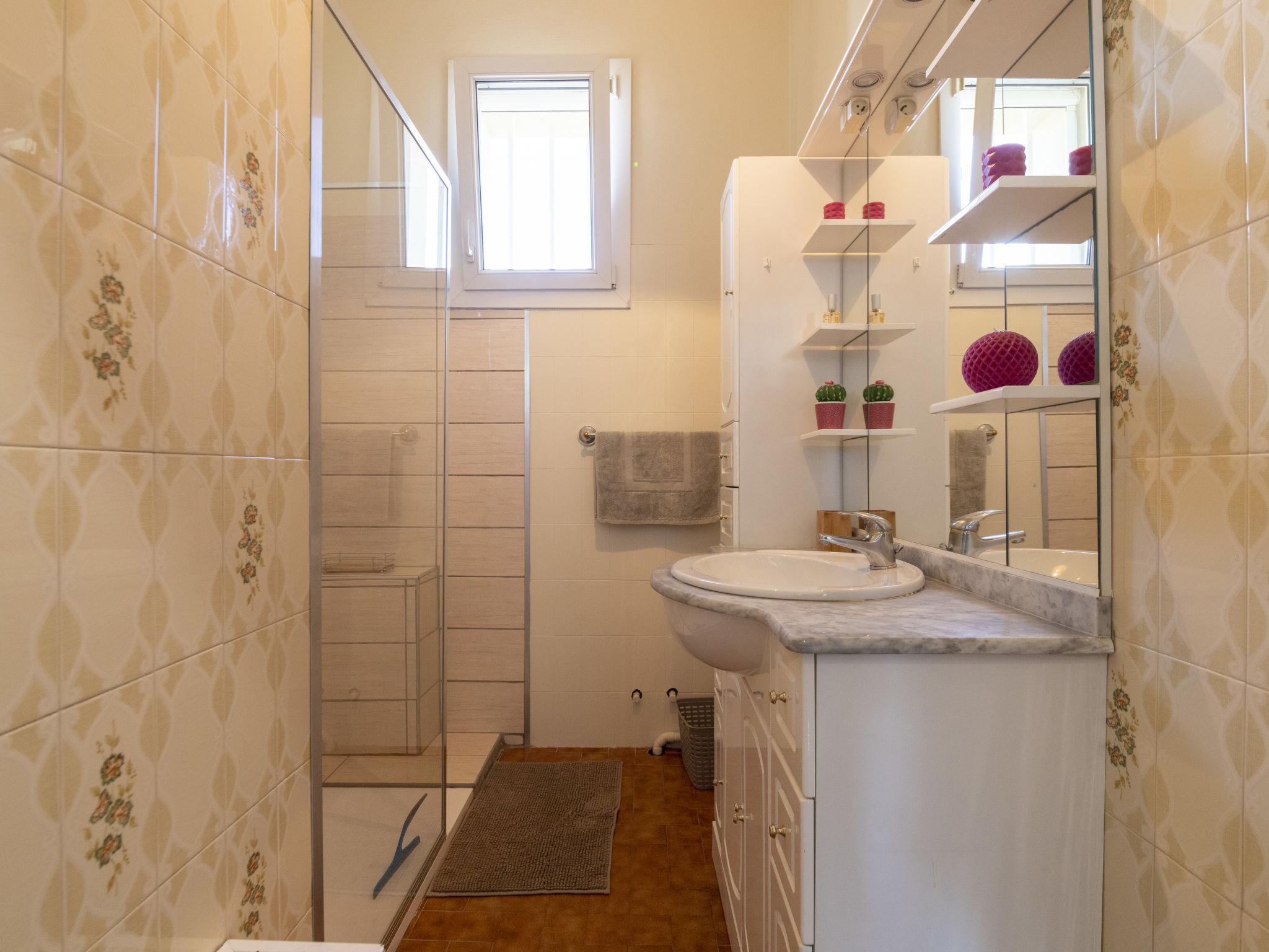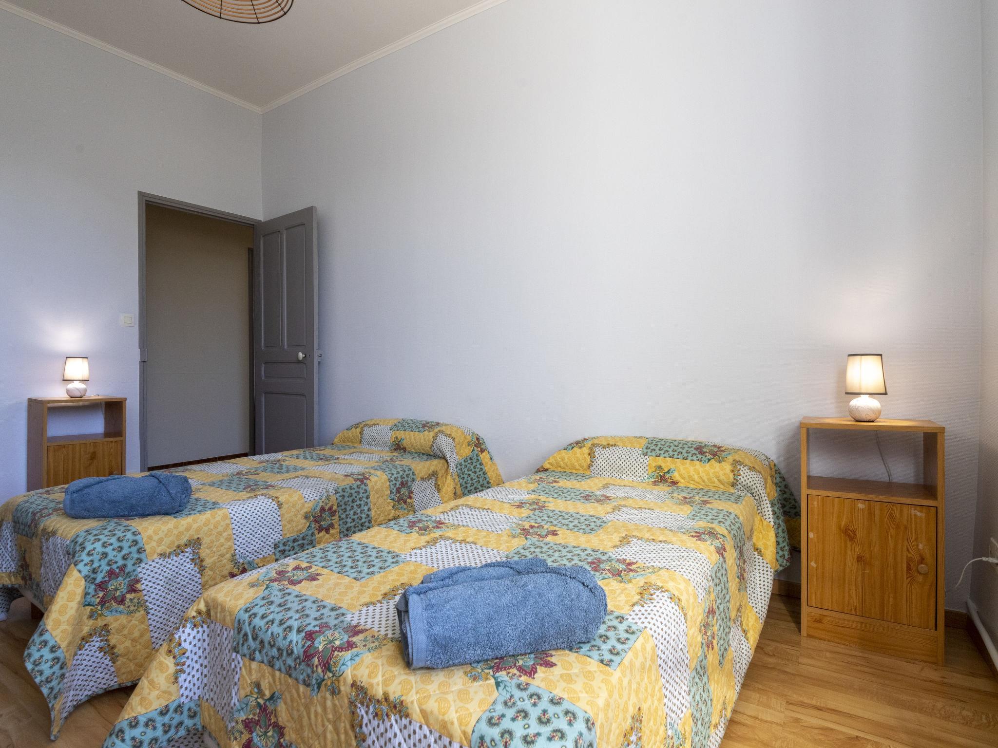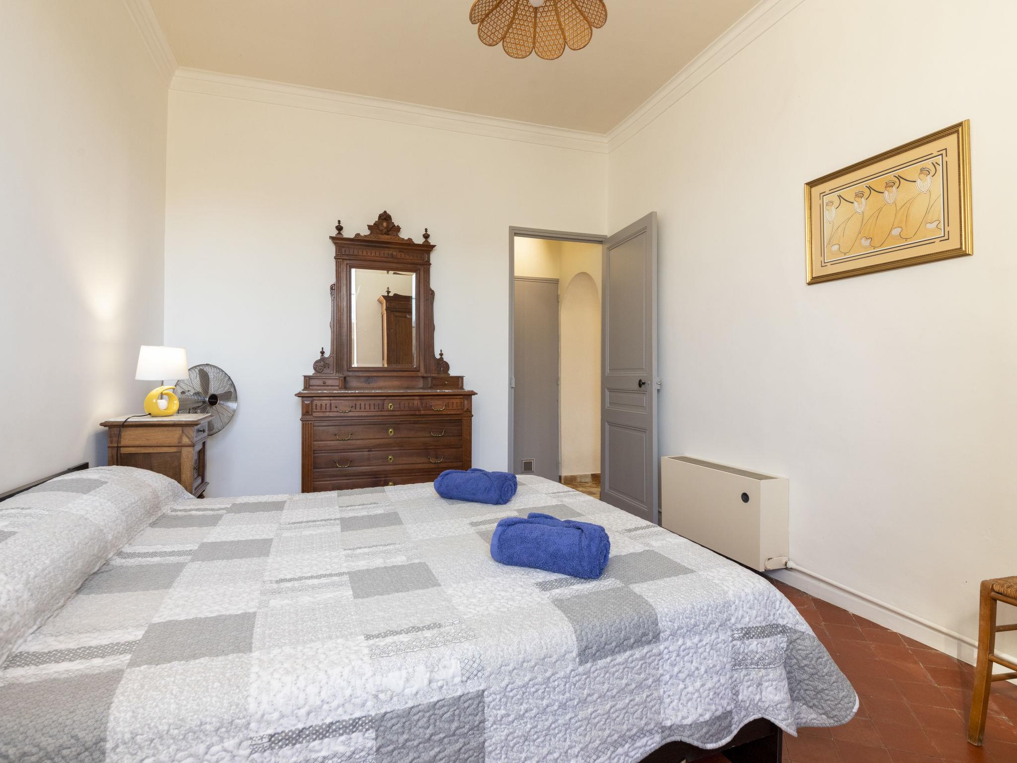 "Mas de la Gourmette", 4-room apartment 90 m2 on 1st floor. Simple and comfortable furnishings: living/dining room 30 m2 with open-hearth fireplace (only for decoration), dining nook and TV (flat screen), air conditioning. Exit to the balcony. 1 room with 1 french bed (160 cm, length 200 cm). 1 room with 2 beds (90 cm, length 190 cm). 1 room with 1 bed (90 cm, length 190 cm). Open kitchen (1 hot plate, oven, dishwasher, 3 gas rings, toaster, kettle, microwave, electric coffee machine) with dining table. Exit to the balcony. Shower, sep. WC. Electric heating. Parquet floors. Large balcony 16 m2. Terrace furniture, electric barbecue, sitting area, box-room. Facilities: washing machine, iron, children's high chair, baby cot for up to 2 year olds. Internet (WiFi, free). Parking (2 cars). Please note: non-smokers only. Smoke alarm.