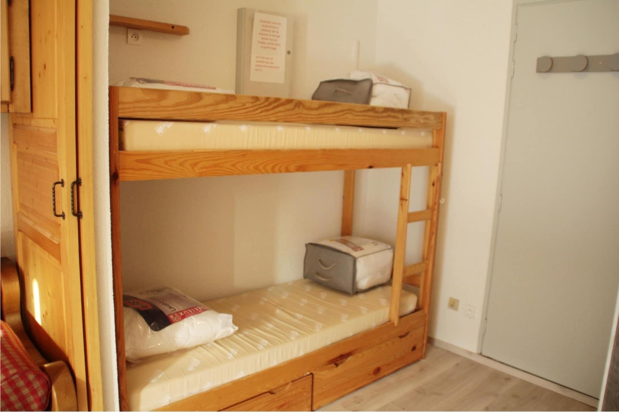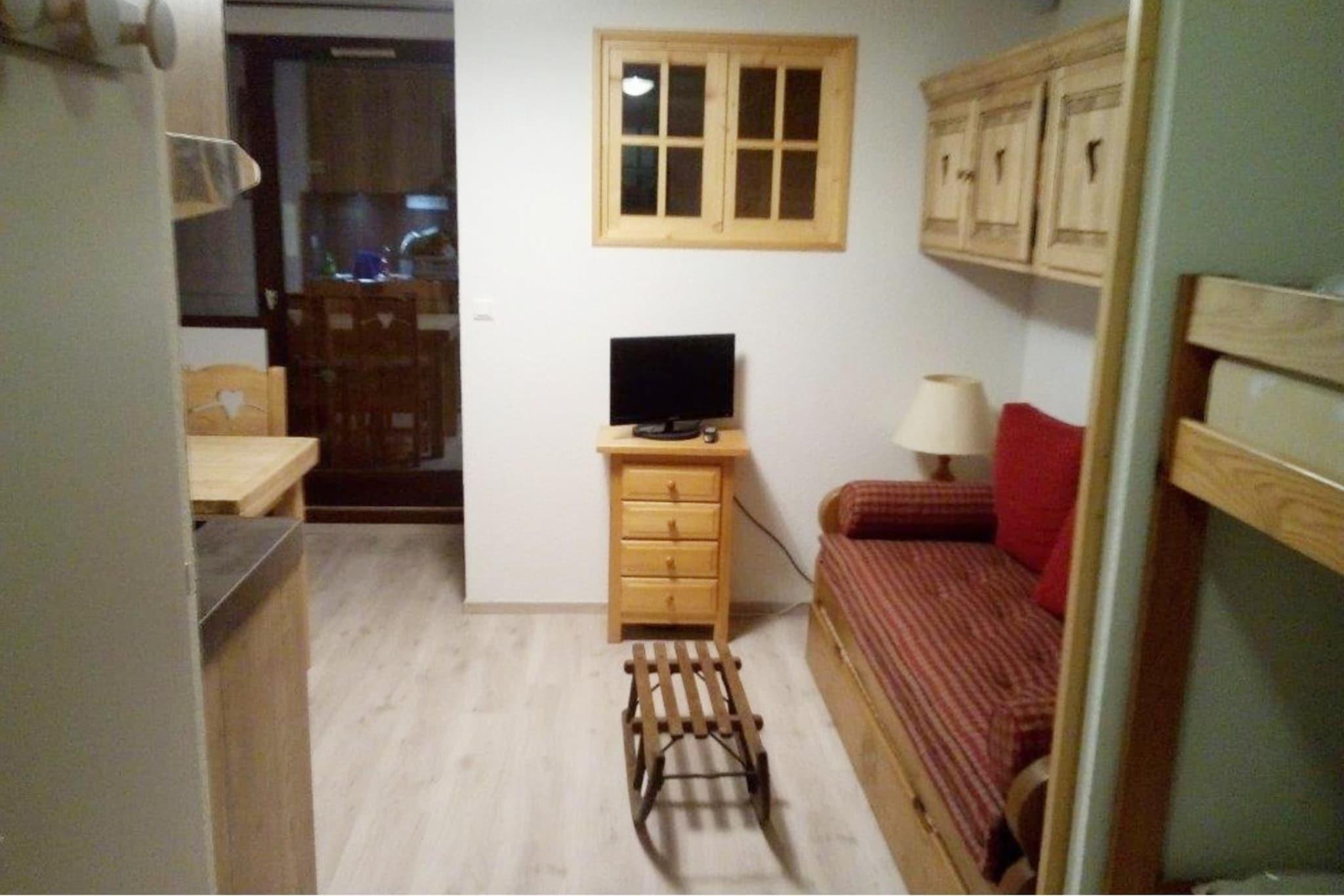 Denne ejendom, sammen med dens indbydende atmosfære, rummer komfortabelt op til fire personer, hvilket gør den til et ideelt tilflugtssted for små familier eller par. Det har et hyggeligt alkove-soveværelse med dobbeltseng og et opholdsområde med køjesenge til ekstra soveplads. Lejligheden er kæledyrsvenlig, hvilket sikrer et indbydende ophold for dem, der rejser med kæledyr. Gæsterne kan nyde den udendørs terrasse med en fantastisk udsigt over bjergene, perfekt til at slappe af efter en dag med aktiviteter. Yderligere tjenester såsom sengelinned, håndklæder og en Wi-Fi-miniboks kan lejes for ekstra komfort, og der er et skirum med et skab til opbevaring af udstyr. Denne lejlighed ligger i hjertet af Châtel og tilbyder fredelige omgivelser med nærhed til en række lokale attraktioner. Svævebanen, kun 1,2 km væk, giver nem adgang til skiløjperne, mens butikker og restauranter kun ligger 1 km fra ejendommen. For udendørsentusiaster er det smukke bjerglandskab omkring boligen ideel til vandreture og skiløb. Lejligheden er veludstyret med et fuldt funktionelt køkken med keramisk kogeplade, køleskab, mikroovn, opvaskemaskine og andre vigtige apparater, så gæsterne kan tilberede måltider under deres ophold. Et fladskærms-kabel-tv er tilgængeligt i stuen til underholdning, og en udendørs parkeringsplads er til rådighed for nem adgang. Denne 24 m² store lejlighed i stueetagen er en del af en bolig med en rolig atmosfære, der tilbyder et fredfyldt miljø til afslapning og nydelse. Bemærk: Turistskatten opkræves på ejendommen og er ikke en del af udlejningen.