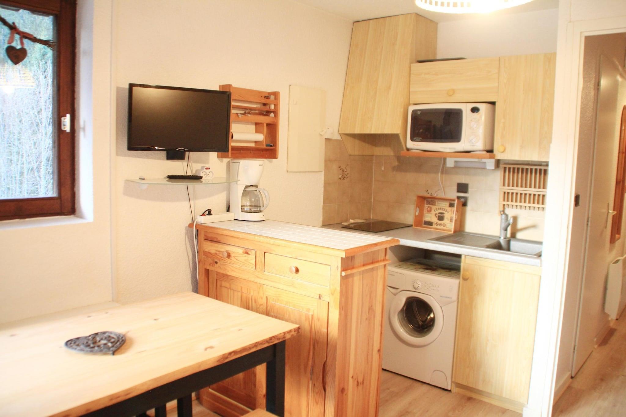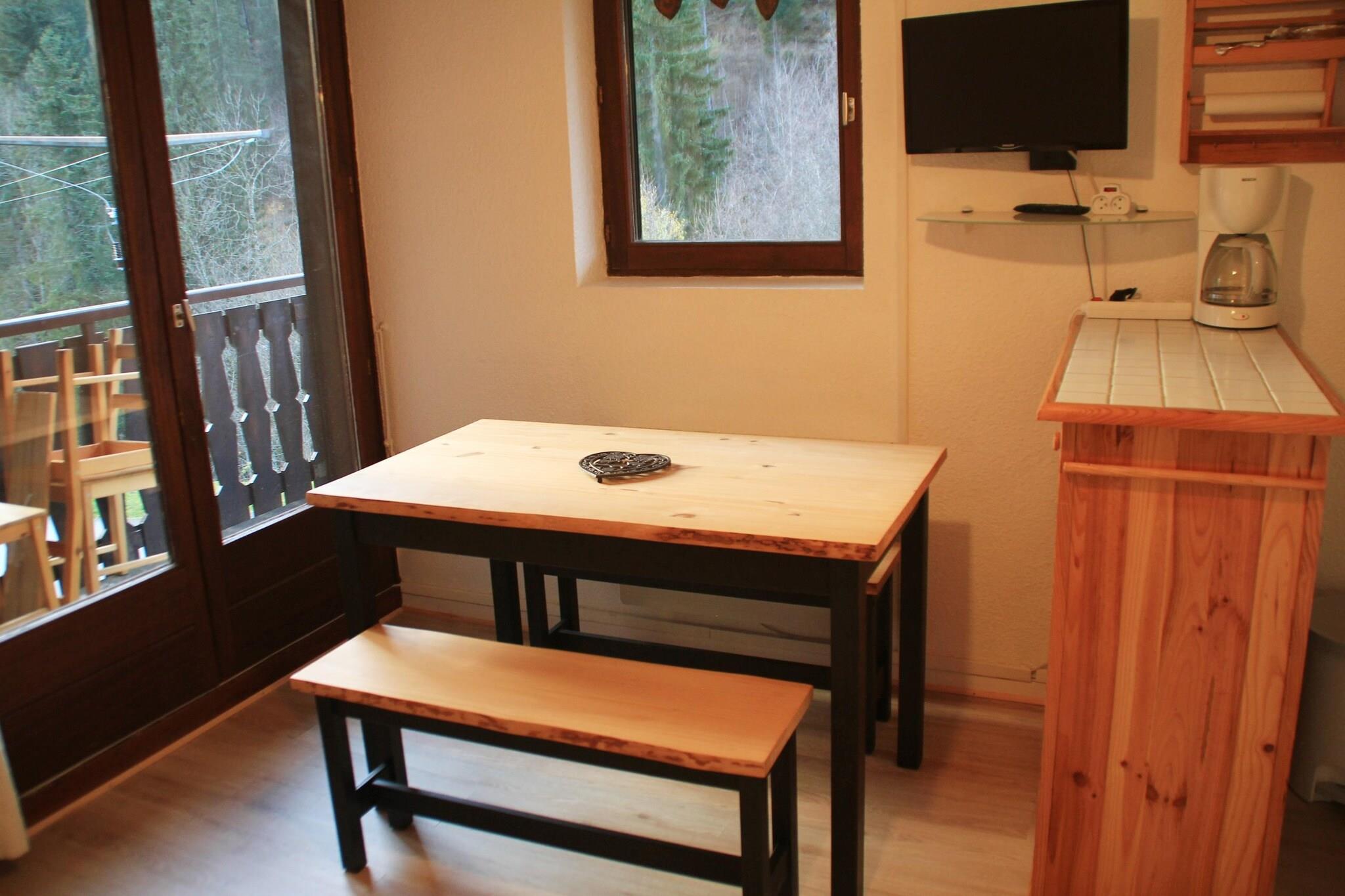 Denne hyggelige studiolejlighed tilbyder et behageligt ophold med en fantastisk udsigt over Abondance-dalen. Det er designet til at rumme op til tre gæster og har et opholdsområde med en sovesofa og sammenklappelige køjesenge. Et fladskærms-tv sørger for underholdning, mens store vinduer fylder rummet med naturligt lys. Ejendommen har en privat balkon til at nyde det betagende bjerglandskab. Gæsterne har adgang til et skiskab for nemheds skyld og en udpeget udendørs parkeringsplads. Kæledyr er ikke tilladt, hvilket sikrer et fredeligt miljø for alle besøgende. Lejligheden har en førsteklasses beliggenhed kun 900 meter fra landsbyens centrum og tæt på Les Marmottons. En gratis shuttlebus stopper i nærheden, hvilket gør det nemt at udforske det omkringliggende område. Den nærmeste svævebane er inden for gåafstand, perfekt til skiløbere og udendørsentusiaster. En række butikker, markeder og restauranter ligger kun 1,5 kilometer væk, og tilbyder friske lokale råvarer og lækre regionale retter. Uanset om du leder efter eventyr eller afslapning, har dette område noget for enhver smag. Lejligheden har et veludstyret åbent køkken med elektrisk kogeplade, køleskab, ovn, mikroovn og kaffemaskine, hvilket gør den ideel til at tilberede hjemmelavede måltider. Badeværelset har badekar og toilet, hvilket sikrer komfort efter en lang dag med aktiviteter. En elevator giver nem adgang til lejligheden, mens moderne indretning skaber en indbydende atmosfære. Med sin centrale beliggenhed og fremragende faciliteter er denne studio perfekt til en afslappende ferie i bjergene. Bemærk: Turistskatten opkræves på ejendommen og er ikke en del af udlejningen.