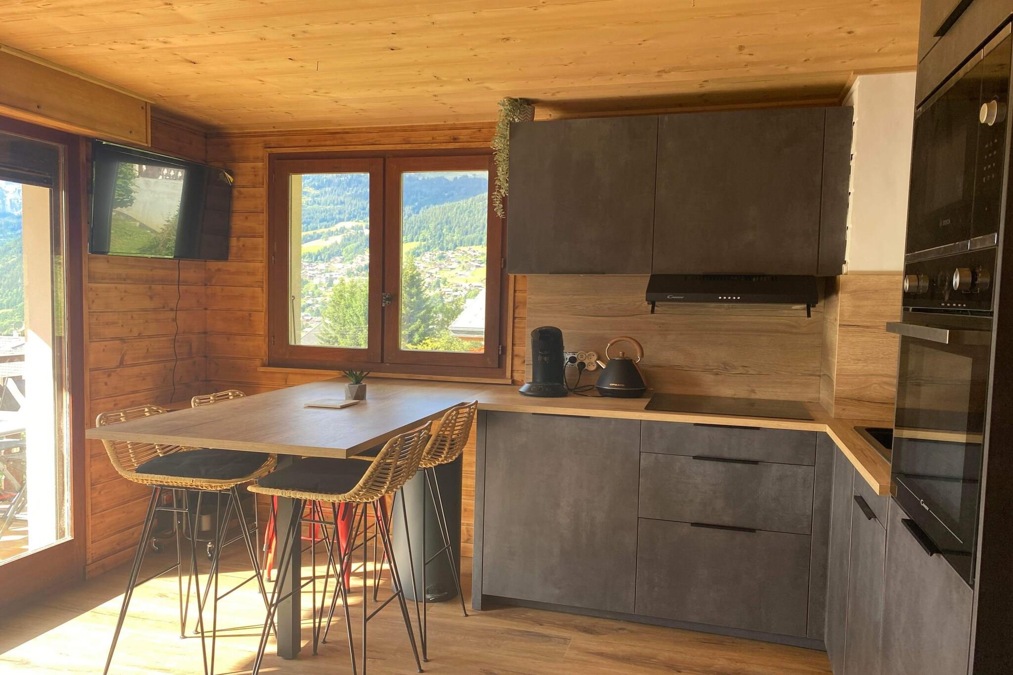 Ejendommen har med sit hyggelige og funktionelle design plads til op til fire gæster. Det omfatter et komfortabelt soveværelse med en dobbeltseng og et bjerghjørne med en køjeseng, hvilket gør det ideelt for familier eller små grupper. Gæsterne kan slappe af i den solrige opholdsstue eller træde ind på den private balkon for at nyde den betagende udsigt over Abondance-dalen. Selvom kæledyr ikke er tilladt, tilbyder ejendommen praktiske faciliteter såsom et fælles skiskab med stativ og hængelås og udendørs parkering. Ejendommen er beliggende i Châtels pulserende centrum, kun 400 meter fra landsbyens centrum, hvilket gør det nemt at udforske lokale attraktioner. Den nærmeste svævebane ligger 700 meter derfra og giver hurtig adgang til skiløjperne og vandrestierne i Portes du Soleil-regionen. Butikker er bekvemt placeret kun 100 meter væk, mens restauranter kan nås inden for 400 meter til fods, så gæsterne kan nyde det lokale køkken og faciliteter uden besvær. Et nærliggende gratis shuttle-busstoppested sikrer bekvem rejse i området. Det veludstyrede køkken omfatter moderne apparater såsom induktionskomfur, køleskab, opvaskemaskine, Senséo kaffemaskine, ovn, mikroovn, kedel og brødrister, så gæsterne nemt kan tilberede måltider. Yderligere bekvemmeligheder inkluderer en vaskemaskine og et separat badeværelse med bruser og toilet, hvilket sikrer et komfortabelt og praktisk ophold. Denne ejendom kombinerer væsentlige faciliteter, en central beliggenhed og en fantastisk udsigt over dalen og tilbyder en mindeværdig alpine ferieoplevelse. Bemærk: Turistskatten opkræves på ejendommen og er ikke en del af udlejningen.