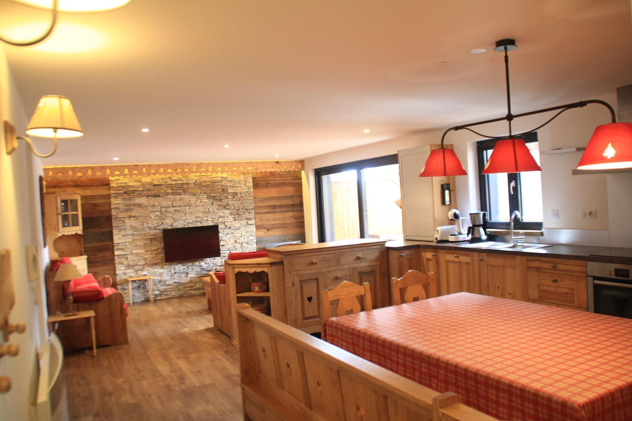 Denne rummelige lejlighed tilbyder et indbydende tilflugtssted for op til otte gæster, hvilket gør den perfekt til større familier eller grupper. Ejendommen strækker sig over 105 m² og har tre soveværelser, to med dobbeltsenge (140x190) og et gennemgående soveværelse med to enkeltsenge (90x190). Derudover indeholder loungeområdet yderligere to enkeltsenge (80x190). Lejligheden byder på to badeværelser: et med bruser og toilet, og et andet med badekar og separat toilet. Gæsterne kan nyde en solrig stue med fladskærms-tv og træde ud på balkonen for en fantastisk udsigt over bjergene. Bekvemt beliggende i hjertet af Chatel, er denne bolig kun 400 meter fra gondolerne, hvilket sikrer nem adgang til pisterne. Butikker og restauranter ligger kun 100 m væk, og der ligger et gratis shuttle-busstoppested i nærheden, som tilbyder bekvem transport til forskellige attraktioner i Portes du Soleil-området. Den centrale beliggenhed gør det til et fremragende valg for at udforske landsbyen og dens naturskønne omgivelser. Lejlighedens moderne køkken er fuldt udstyret med keramisk kogeplade, køleskab, fryser, opvaskemaskine, vaskemaskine, ovn, mikroovn, brødrister, kedel og filterkaffemaskine, hvilket gør den ideel til at tilberede måltider under dit ophold. Valgfri tjenester, såsom sengelinned, håndklæder og slutrengøring, er tilgængelige for ekstra bekvemmelighed. Gæsterne kan også leje en mini-Wi-Fi-boks i receptionen. Inkluderede fordele omfatter adgang til en gratis sæsonbestemt shuttlebus og rabatter på aktiviteter og lokale attraktioner, hvilket sikrer en behagelig og mindeværdig alpeferie. Bemærk: Turistskatten opkræves på ejendommen og er ikke en del af udlejningen.