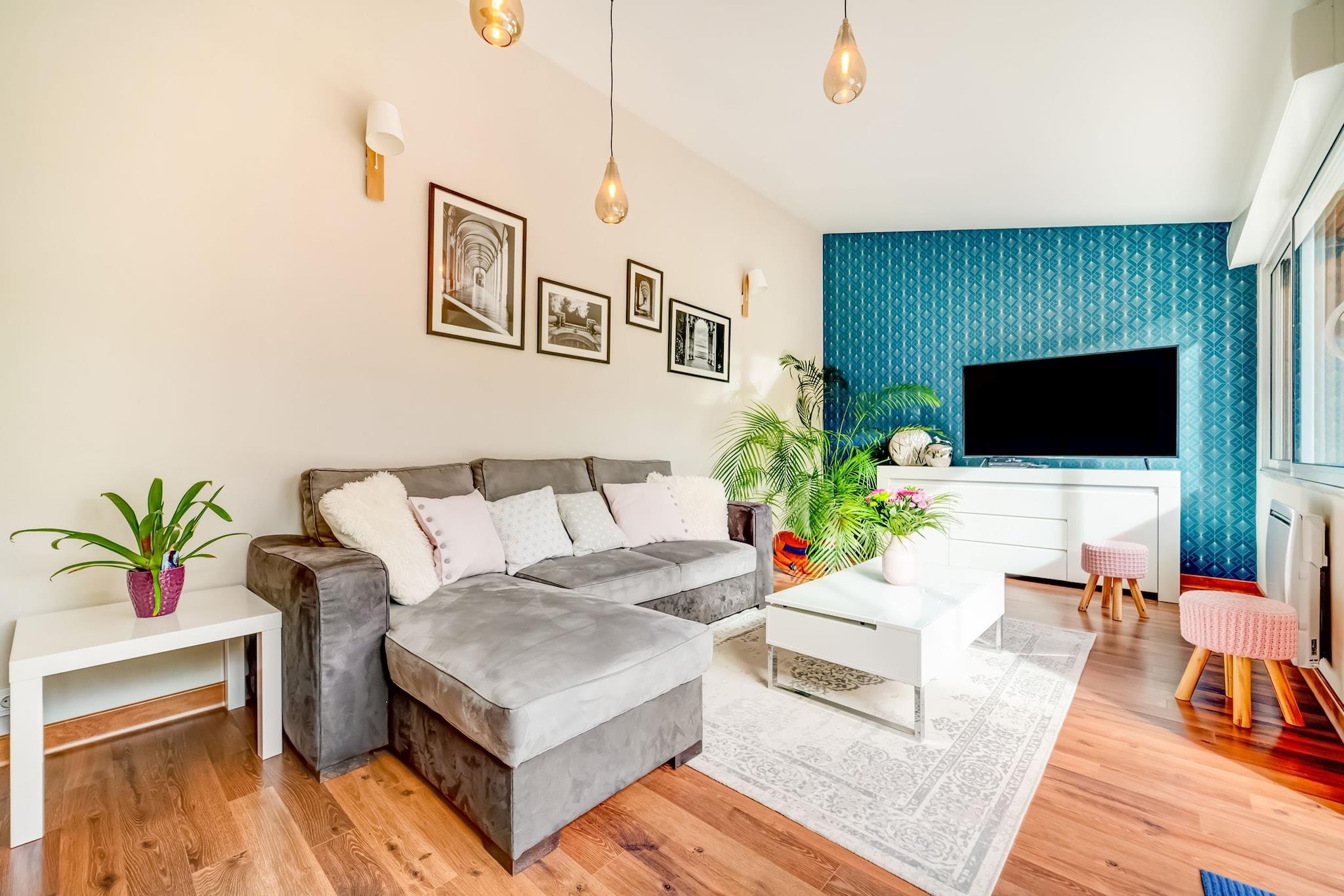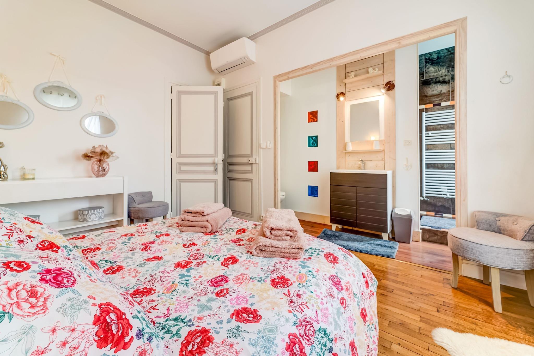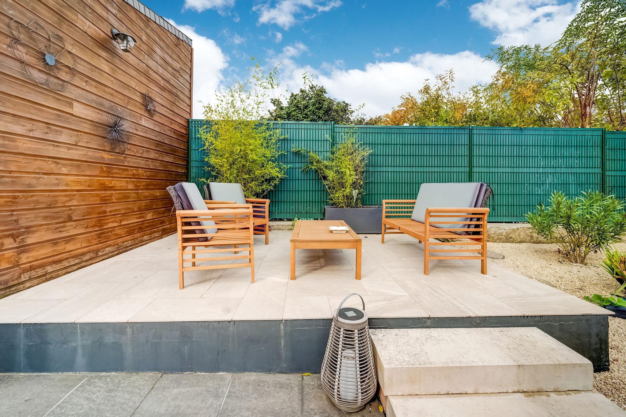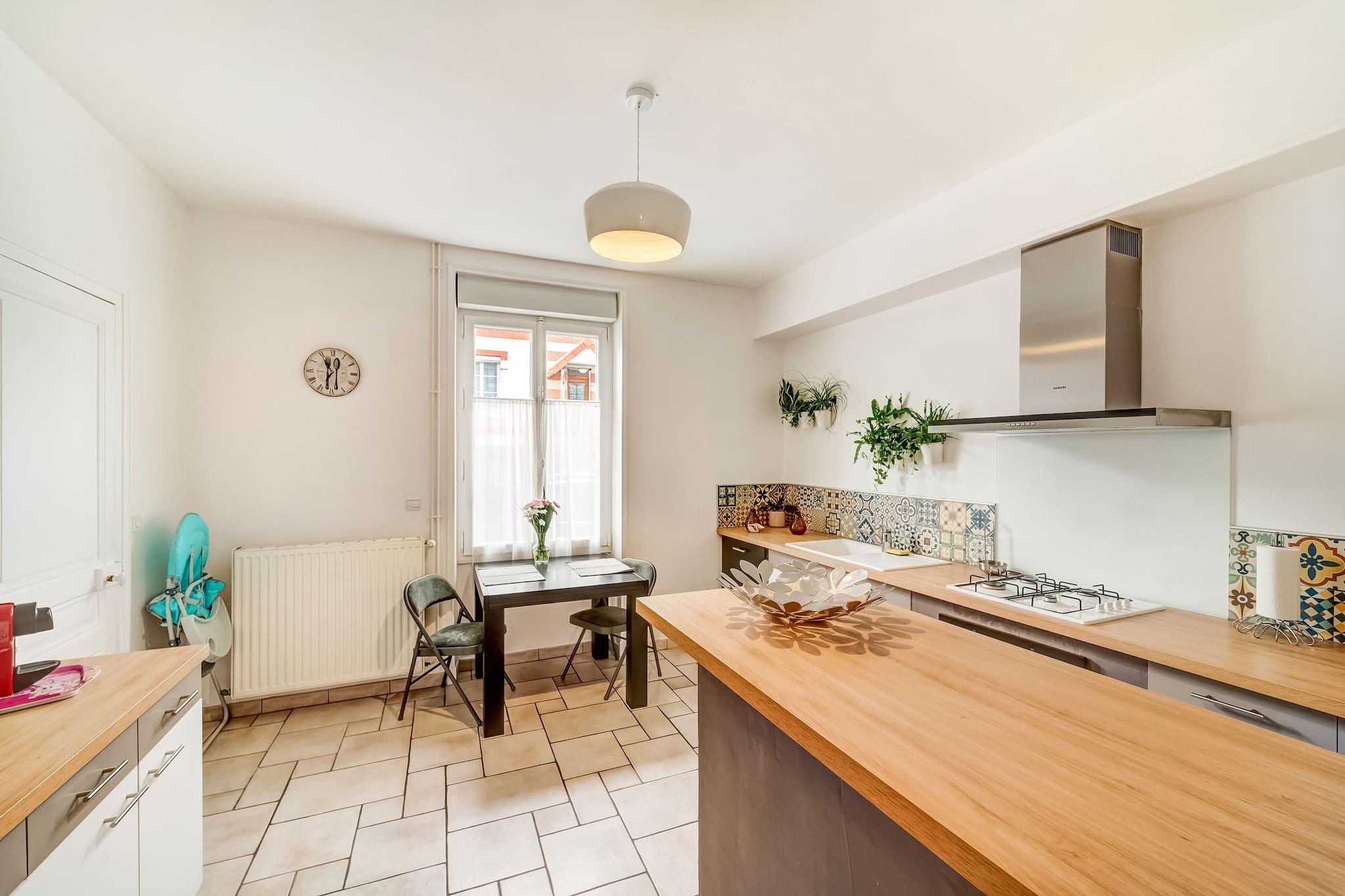 Dette charmerende rækkehus på 110 m² i Châtellerault er det ideelle sted for et ophold med familie, gruppe eller venner tæt på alle faciliteter. Din vært, der er bekymret for de rejsendes trivsel, har dekoreret sin ejendom med omhu. I stueetagen finder du en meget lys stue med fjernsyn med udsigt over haven, en spisestue, et smukt fuldt udstyret køkken (ovn, komfur, opvaskemaskine, mikroovn ...), et badeværelse badeværelse (vaskemaskine og tørretumbler) og separat toilet På første sal er der et første soveværelse med dobbeltseng og eget badeværelse (italiensk bad og toilet). Den tredje og sidste etage i huset består af et stort soveværelse med en 240 cm dobbeltseng samt to enkeltsenge med tv. Det udvendige af huset er lige så godt vedligeholdt som det indvendige. Din vært står til din tjeneste. havemøbler, liggestole og parasol er tilgængelige, så du kan nyde hver solstråle og alt sammen uden at blive overset. Gratis parkering i garagen er tilgængelig.