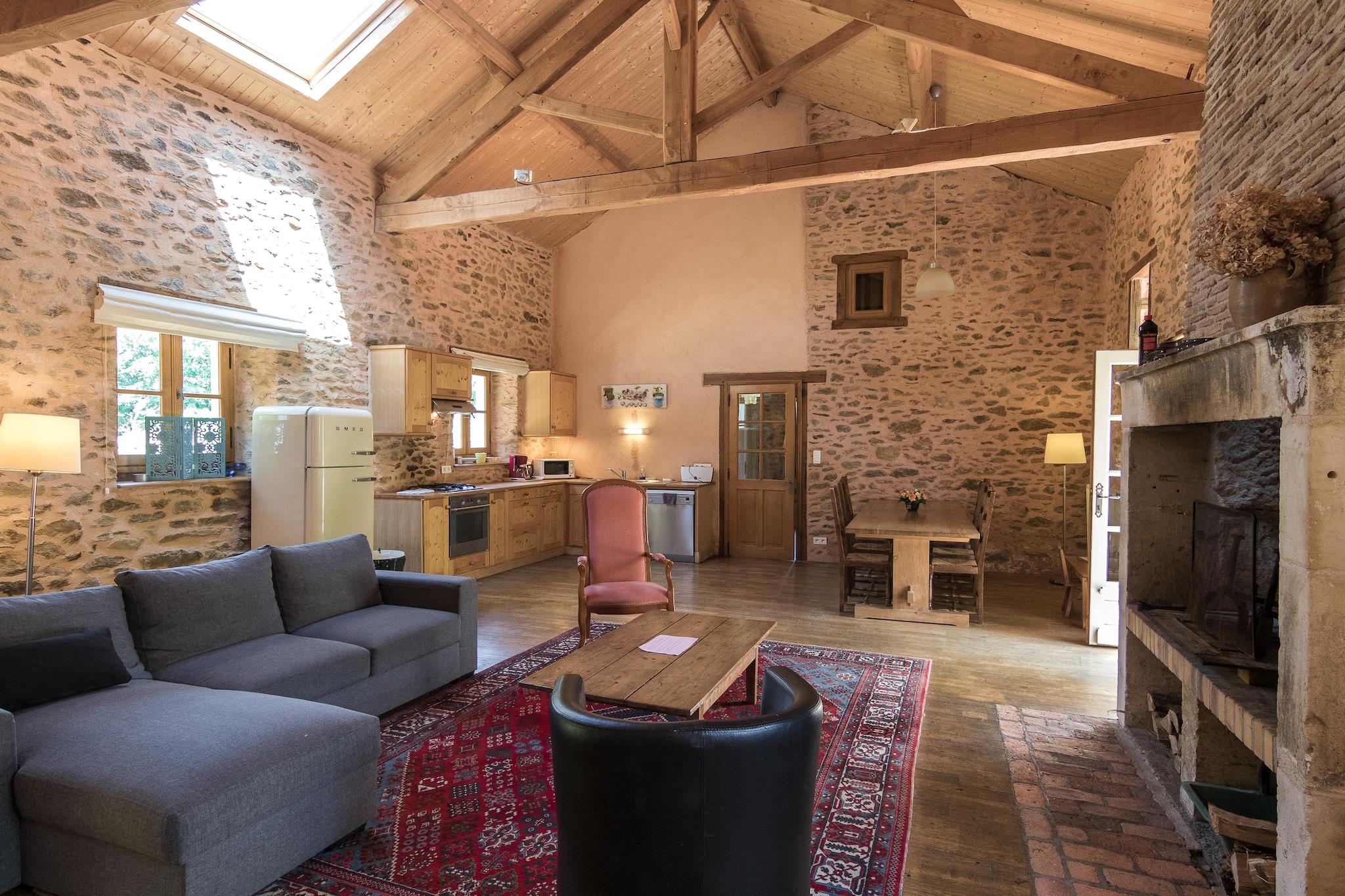 Dette stilfulde hus på ca 60m2 med masser af lys og plads ligger tæt på kanten af skoven og vandrestier. Det kombinerer moderne komfort med en arkitektonisk stil fra en svunden æra og er udelukkende lavet af sten. Imponerende træbjælker skaber stemning og storhed.