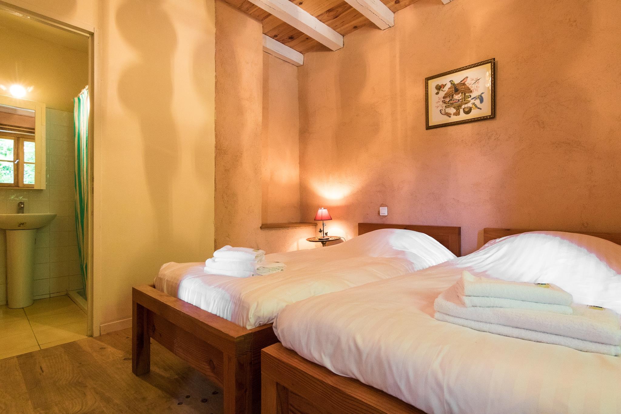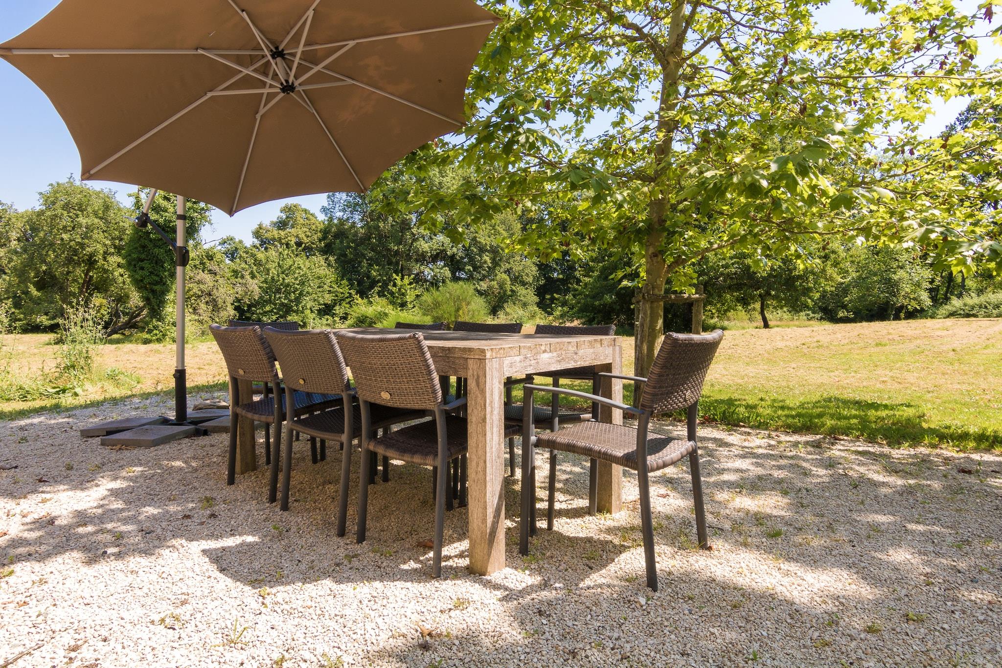 Stueetage: (entre, åbent køkken(komfur(Komfur med fire kogeplader), ovn(grill-ovn), opvaskemaskine , køle-fryseskab), stue / spisestue(Fjernsyn, pejs, DVD-afspiller), Soveværelse med badeværelse(dobbeltseng eller 2 enkeltsenge Senge, bruser, håndvask, toilet), bryggers(håndvask, vaskemaskine), toilet, pissoir) På 1. etage: (soveværelse(dobbeltseng), Soveværelse med badeværelse(dobbeltseng, bruser, håndvask, toilet), badeværelse(badekar med bruser, håndvask, toilet)) varme(central), terrasse(privat), havemøbler, grill, trampolin, dam, swimmingpool(deles med andre gæster, 15 x 7 m., opened from May upto and including Sep), tennisbane, petanquebane, bordfodbold, barneseng(på anmodning), barnestol(på anmodning), kravlegård