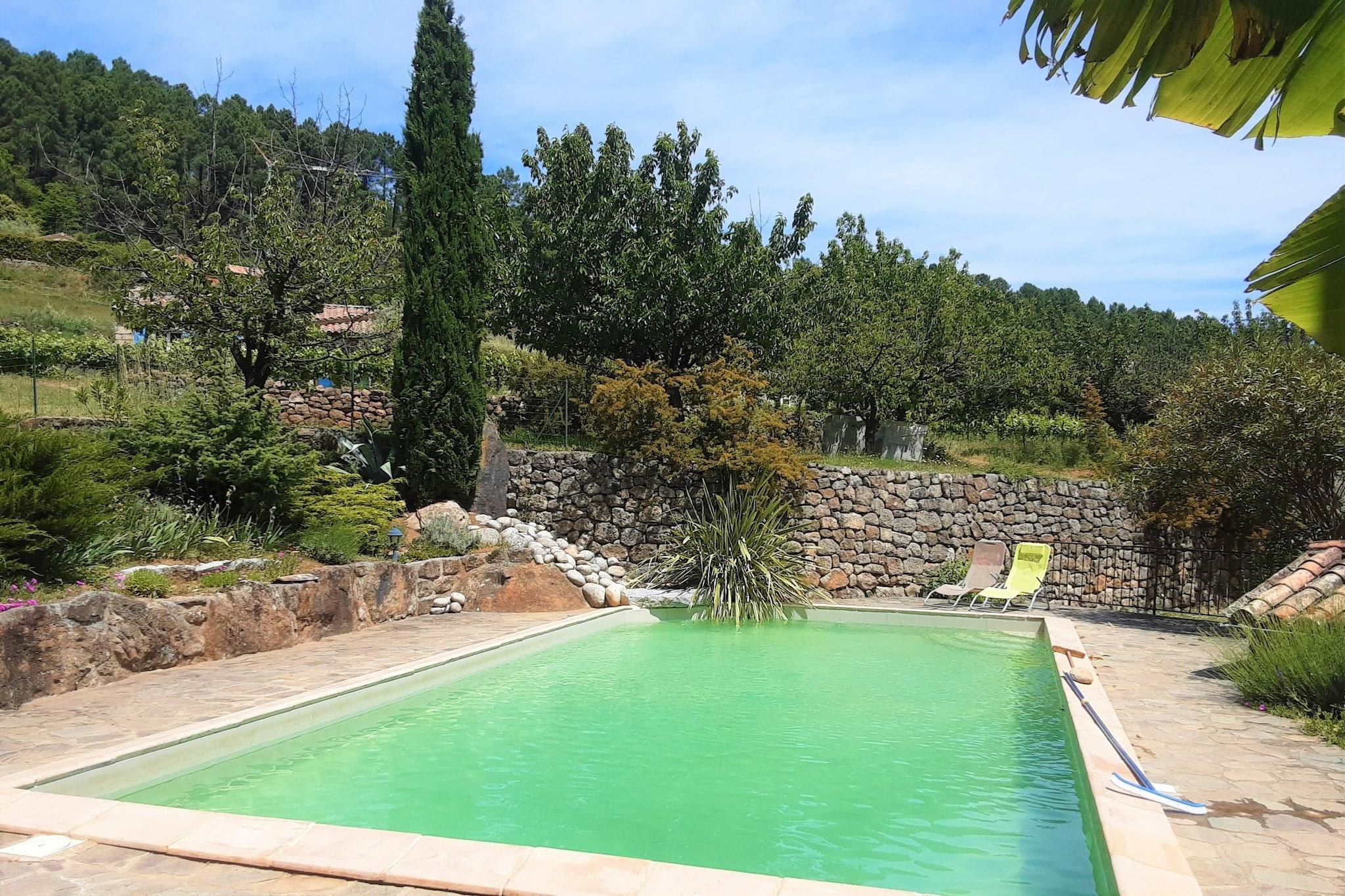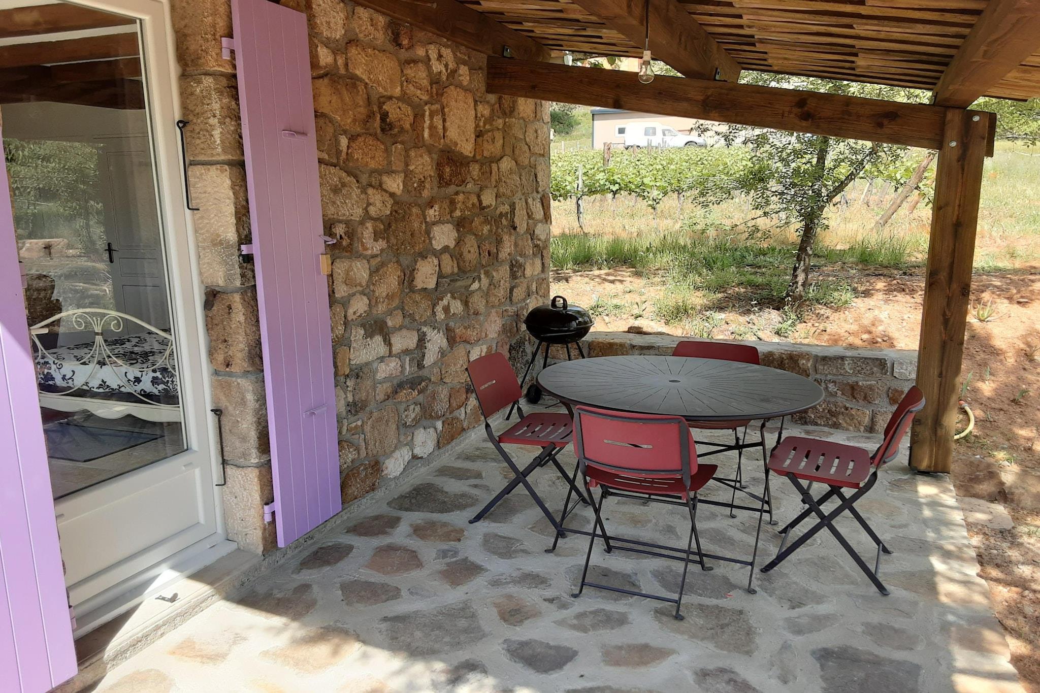 Four pretty houses built from natural stone and set in a 15-hectare estate among vineyards, olive groves and cherry trees, each with its own private space. Enjoy the peaceful surroundings and relax by the swimming pool, shared by all four houses. The small stone house is ideal for two people. Inside, you'll find a lounge/bedroom with a kitchenette, a shower room and a separate toilet. The covered terrace with barbecue invites you to enjoy your freshly prepared meals! Hiking trails start directly from the estate. You can also plan excursions in the surrounding area, on foot or by canoe!