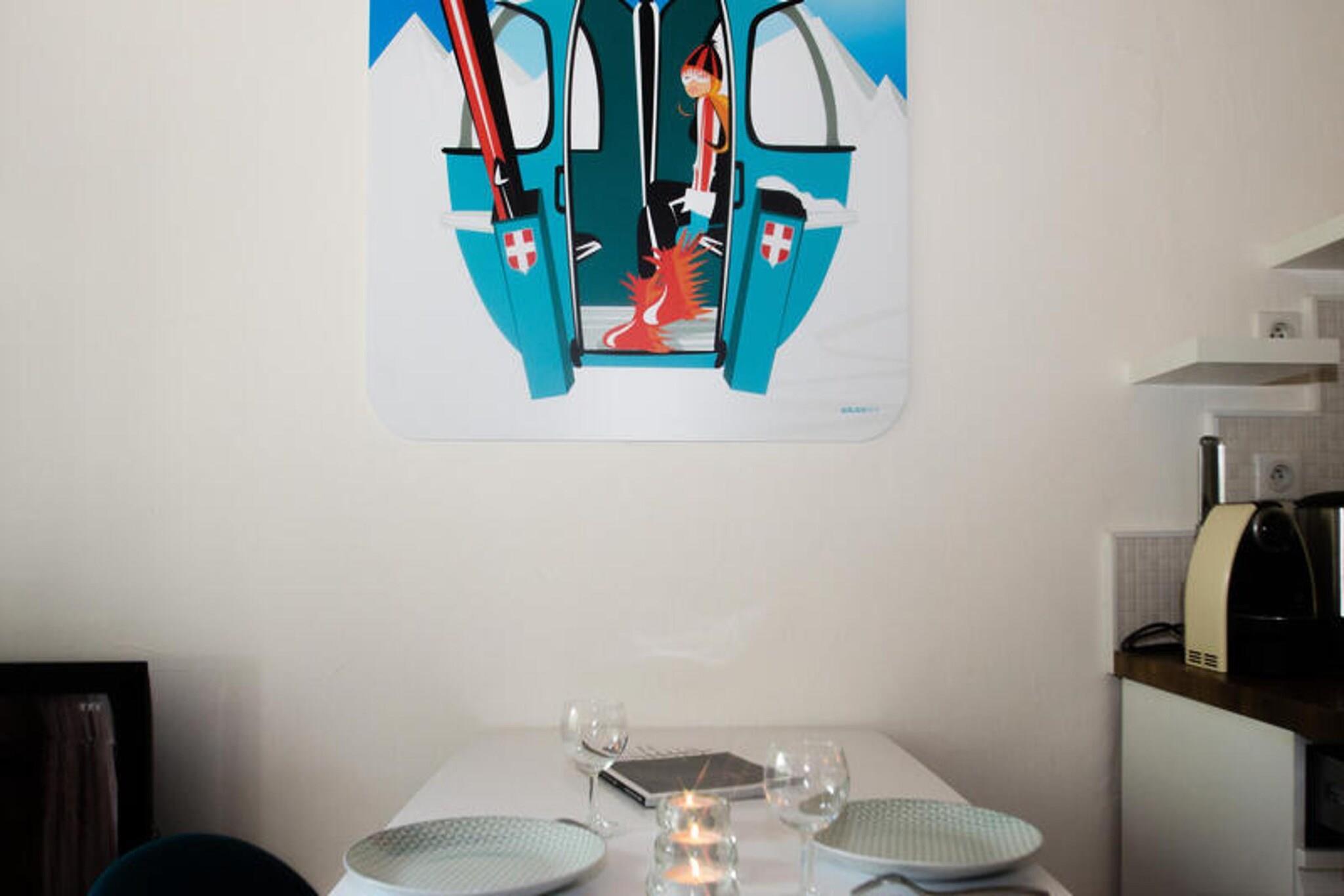 Denne lejlighed på 33 m², beliggende på 2. sal (uden elevator) i "Les 2 Chamois"-boligen i boligområdet Pècles, kan rumme op til 4 personer. Opholds- og spiseområdet er udstyret med et tv og PS2, perfekt til afslapning efter en dag med eventyr. Det åbne køkken indeholder køleskab med fryser, induktionskomfur (2 brændere), miniovn, KRUPS kaffemaskine og elkedel. Lejligheden har to dobbeltværelser (140x190 og 160x190), og et badeværelse med badekar/bruser og toilet. Kæledyr er ikke tilladt, og det er en ikke-ryger lejlighed. Beliggende kun 400 meter fra gågaden i Chamonix, er lejligheden bekvemt tæt på byens caféer, butikker og restauranter. Det tilbyder også en fantastisk sydvendt balkon med havemøbler og en betagende udsigt over Mont-Blanc-området. Busstoppestedet og busstationen (Chamonix syd) ligger 500 meter væk, mens togstationen Aiguille du Midi kun ligger 550 meter fra lejligheden. Yderligere faciliteter inkluderer Wi-Fi, en kælder til ski og cykler, privat underjordisk parkering (højde 2 m) og slutrengøring (undtagen køkken og skraldespande). Gæsterne vil finde sengetøj, badeværelsesprodukter og opredte senge ved ankomsten.