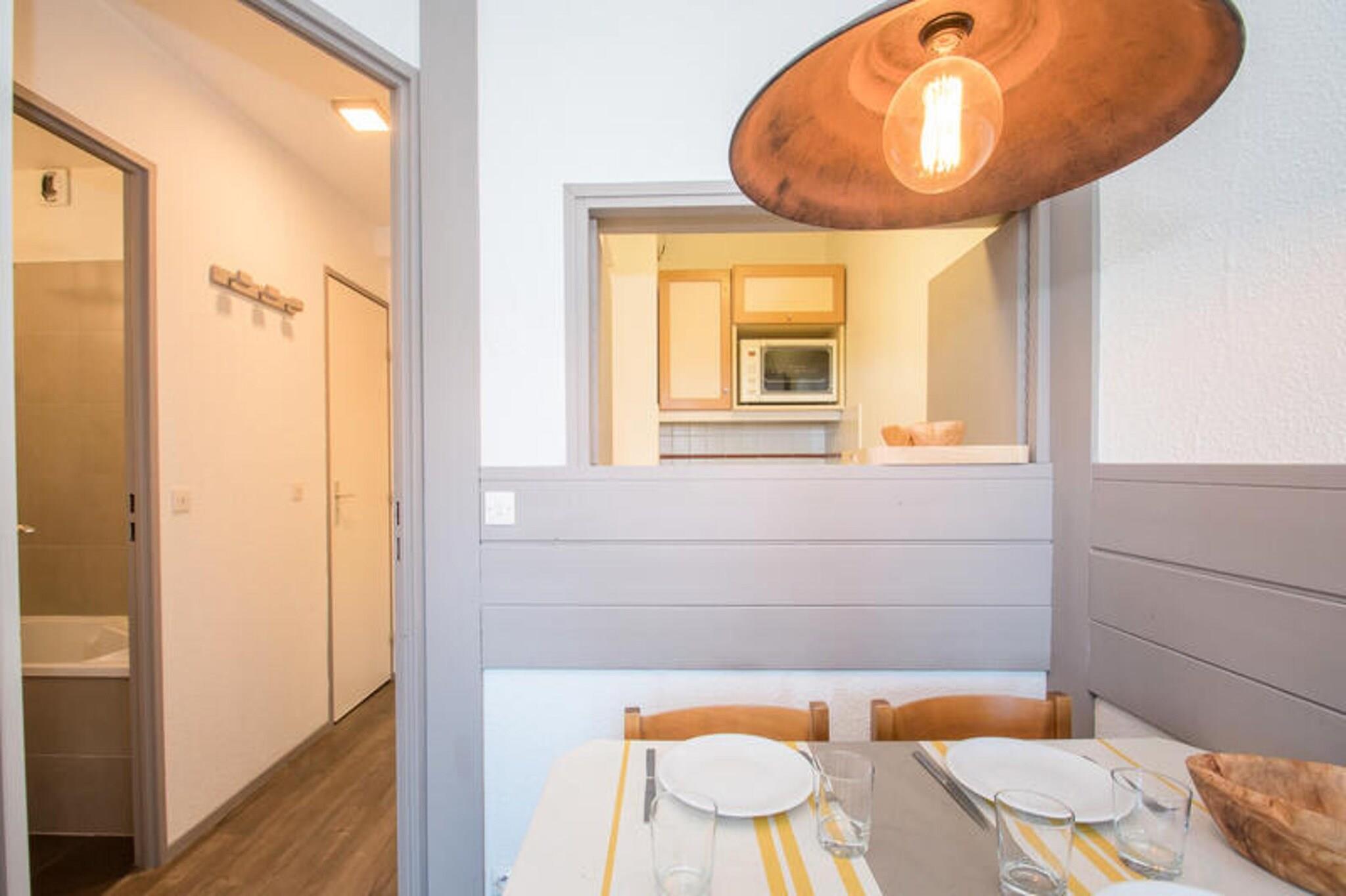 Denne renoverede lejlighed på 29 m², klassificeret 2 stjerner, kan komfortabelt rumme op til 4 gæster. Lejligheden ligger på 7. etage i Chamois Blanc-residensen i Chamonix Sud-distriktet og tilbyder nem adgang til skibussens stoppesteder og ligger kun 450 meter fra centrum af Chamonix. Det har en hyggelig stue/spisestue med en udtrækssovesofa til to og et tv. Det halvlukkede køkken er udstyret med køleskab, opvaskemaskine, miniovn, keramisk kogeplade, Nespresso-maskine, elkedel og stavblender. Soveværelset indeholder en dobbeltseng (140x190) med aftagelige skydedøre til stuen og et TV. Lejlighedens beliggenhed er ideel, med Chamonix South busstoppested lige ved døren. SNCF-stationen ligger 900 meter derfra, mens togstoppestedet Aiguille du Midi ligger 550 meter fra ejendommen. Gæsterne kan nyde de omkringliggende caféer, markeder og udendørsaktiviteter i det pulserende Chamonix-område. Yderligere faciliteter omfatter Wi-Fi, et badeværelse med separate toiletter og underjordisk parkering med en højde på 1,85 m. Der er også et skirum til opbevaring af udstyr. Lejligheden er ikke-ryger, og kæledyr er ikke tilladt. Et depositum er påkrævet, og rengøring er inkluderet, eksklusive køkken og affald.
