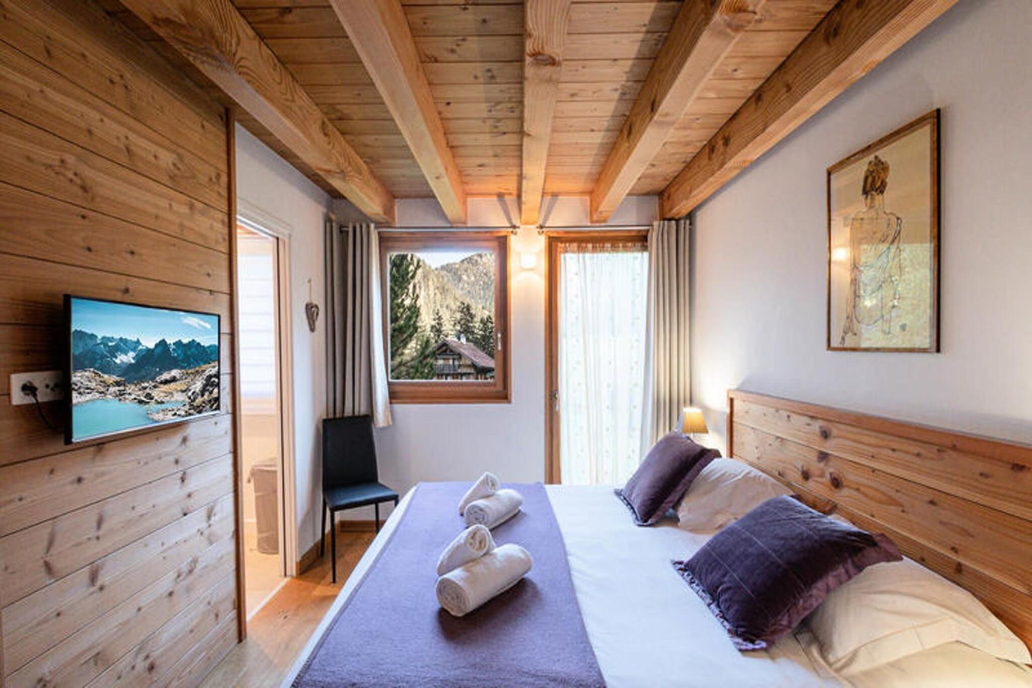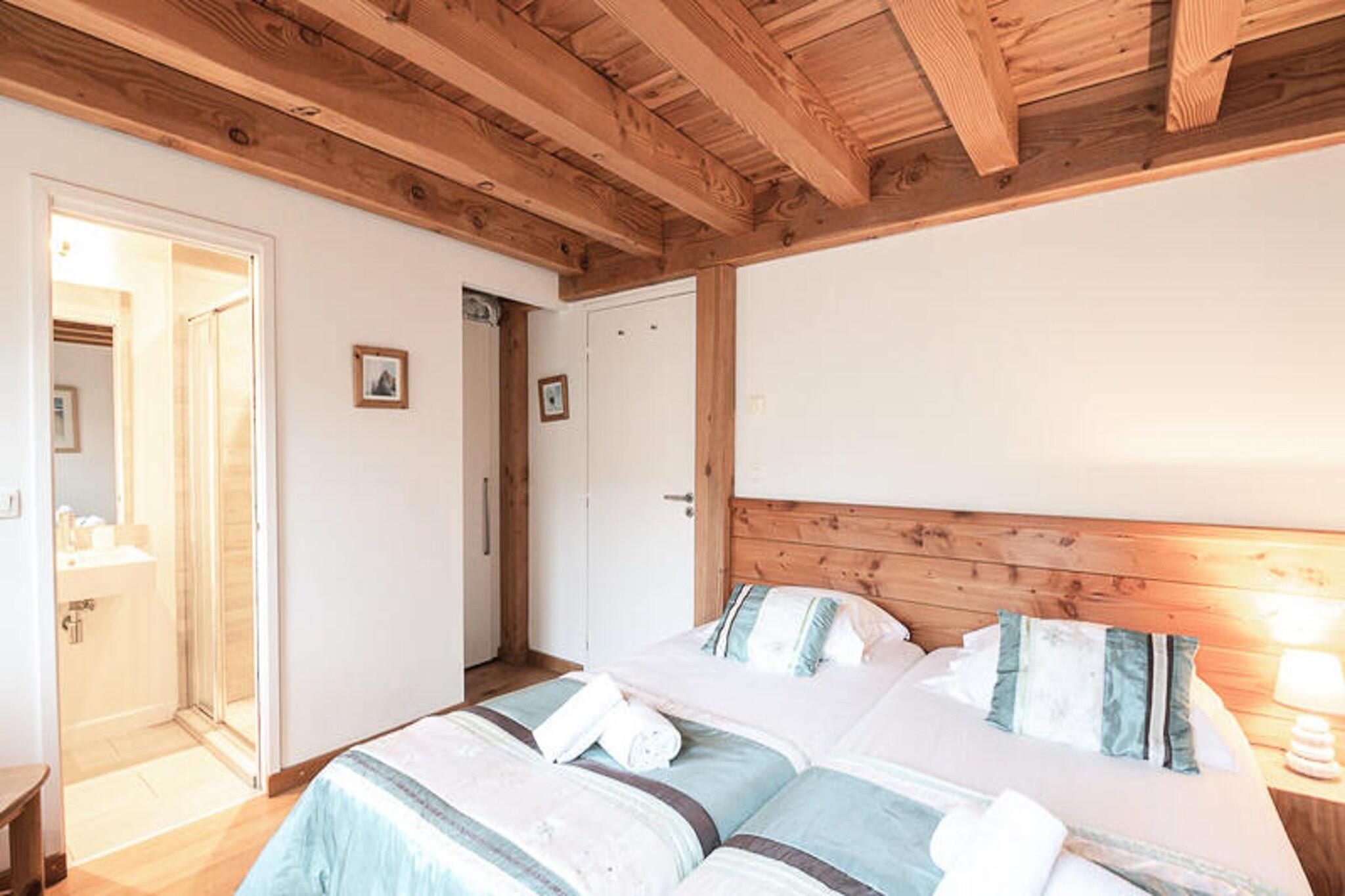 Denne hyggelige 60 m² store hytte, klassificeret 3 stjerner, kan komfortabelt rumme op til 6 personer. Det har to soveværelser med en dobbeltseng og to enkeltsenge, en stue med en sovesofa og et badeværelse med bruser og separat toilet. Ejendommen er kæledyrsfri og ikke-ryger, hvilket sikrer et rent og fredeligt miljø. Der er privat parkeringsplads til rådighed, og gæsterne har trådløs internetadgang. Denne hytte ligger kun 200 meter fra det nærmeste busstoppested og tilbyder nem adgang til nærliggende attraktioner. Centrum af Chamonix ligger kun 1,2 km væk, med caféer, restauranter og lokale markeder, der tilbyder en smag af regionens kultur. Planards-pisterne er i nærheden, hvilket giver mulighed for hurtig adgang til skiløb og udendørsaktiviteter. Den berømte Aiguille du Midi ligger 1,5 km væk, perfekt til at udforske det betagende Mont-Blanc-massiv. Hytten har et fuldt udstyret køkken med mikrobølgeovn, ovn, køleskab og kaffemaskine, der giver alt det nødvendige for at tilberede måltider under dit ophold. En hyggelig spiseplads og stue med tv, dvd-afspiller og pejs tilføjer chaletens charme. Ejendommen er designet til at tilbyde både komfort og bekvemmelighed for et afslappende ophold.