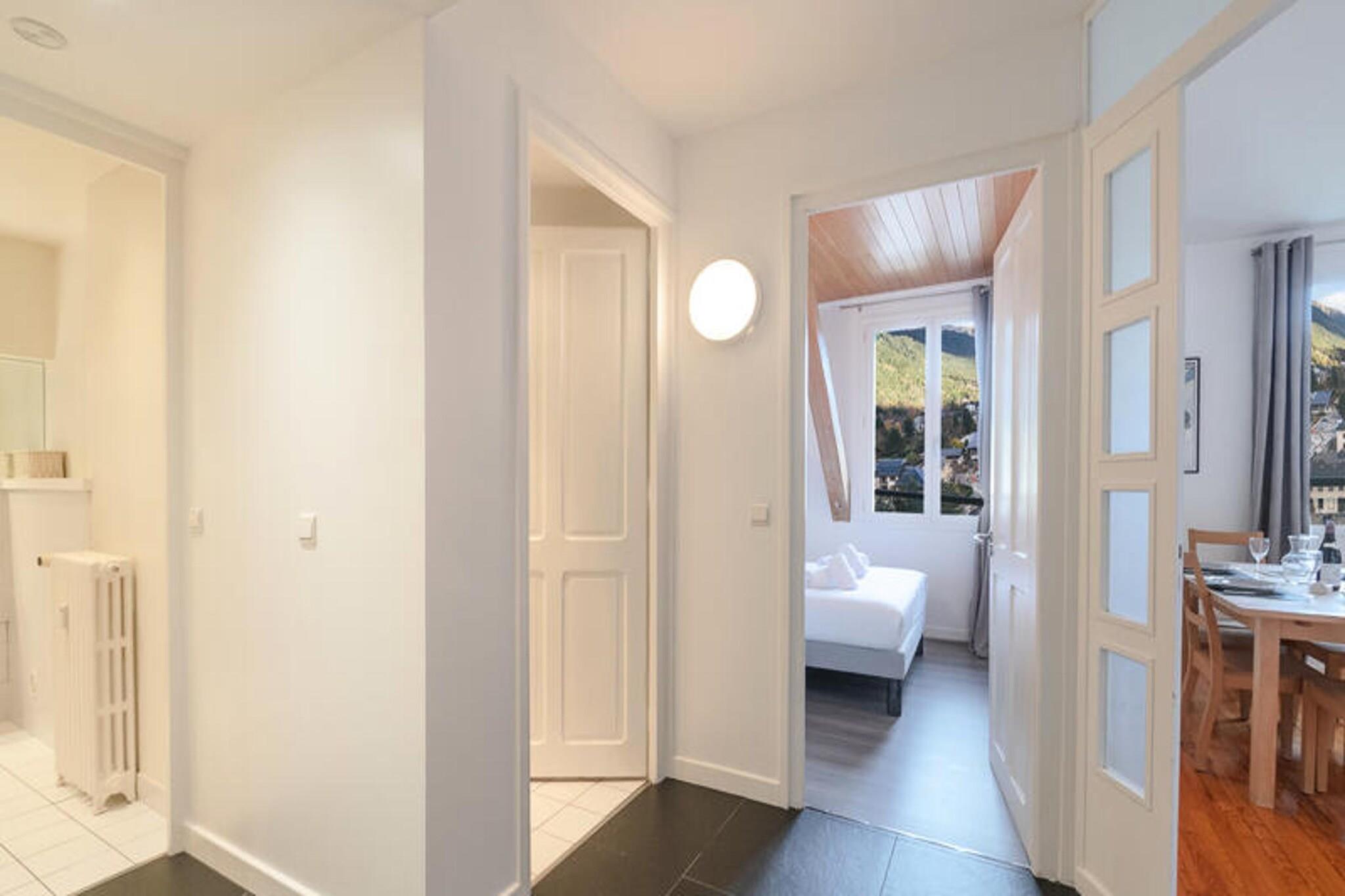 Denne lejlighed på 60 m², klassificeret 2 stjerner, kan komfortabelt rumme op til 5 gæster. Beliggende på 7. etage i Majestic-residensen tilbyder det en fantastisk udsigt over Mont-Blanc, Aiguilles de Chamonix og Tour. Lejligheden indeholder en stue/spisestue med tv og en enkelt sovesofa, som giver et hyggeligt sted at slappe af. Der er to soveværelser, det ene med en dobbeltseng (140x190) og det andet med to enkeltsenge (90x200), som kan kombineres til en dobbeltseng. Lejligheden er ikke-ryger, og kæledyr er ikke tilladt, hvilket sikrer et fredeligt ophold. Lejligheden er ideelt beliggende, kun 400 meter fra Savoy/Brévent-pisterne og 180 meter fra Chamonix centrum busstoppested, hvilket gør den til en perfekt base for at udforske regionen. Den centrale beliggenhed giver nem adgang til caféer, butikker og markeder, mens bus- og SNCF-stationerne, begge 800 meter væk, giver fremragende offentlige transportforbindelser. Uanset om du søger udendørs eventyr eller lokal kultur, er alt i gåafstand fra lejligheden. Lejligheden har et fuldt udstyret separat køkken med moderne apparater, herunder induktionskomfur, køleskab med fryser, mikroovn, miniovn, vaskemaskine og opvaskemaskine. Der er også to badeværelser, det ene med bruser og det andet med badekar, hvilket gør det ideelt for familier. Der er et skirum til rådighed til opbevaring af udstyr, og der tilbydes ikke-privat udendørs parkering.