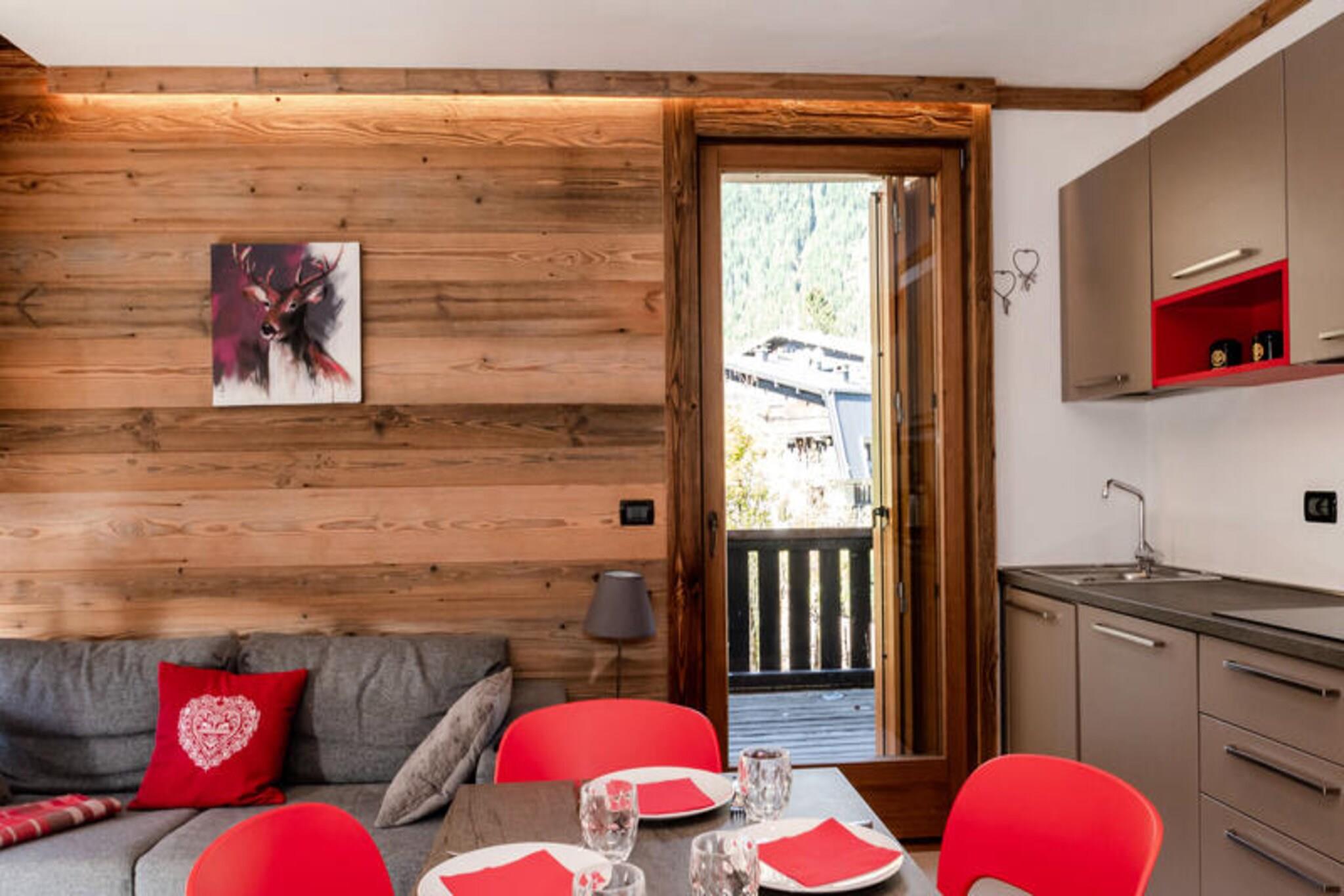 Denne varme lejlighed på 42 m² er perfekt til 4 personer og er beliggende på 1. sal (uden elevator) i "Rivo"-boligen, beliggende nær gågaden i Lyret-sektoren i Chamonix. Lejligheden har en hyggelig stue med tv, spiseplads og et veludstyret køkken med moderne apparater, herunder induktionskomfur, mikroovn, køleskab og opvaskemaskine. Gæsterne kan nyde en kop kaffe med filterkaffemaskine, Nespresso-maskine og meget mere. Lejligheden byder på et soveværelse med en dobbeltseng (160x200) og udgang til terrassen samt et andet soveværelse med 2 køjesenge (80x190). Terrassen er møbleret med havemøbler og har udsigt over Brévent, mens en balkon giver en fantastisk udsigt over Mont-Blanc. Placeringen er ideel, med et busstoppested kun 50 meter væk og SNCF-stationen kun 550 meter fra ejendommen. Lokale attraktioner og aktiviteter er let tilgængelige fra denne centrale beliggenhed. Yderligere faciliteter omfatter gratis WiFi, udendørs parkering og et skiskab til opbevaring af udstyr. Ejendommen er ikke-ryger, og kæledyr er ikke tilladt. Der kræves et depositum på 800 euro før ankomst. Gæster kan også nyde tjenester såsom linned, badeværelsesprodukter og slutrengøring (undtagen køkken og affald).
