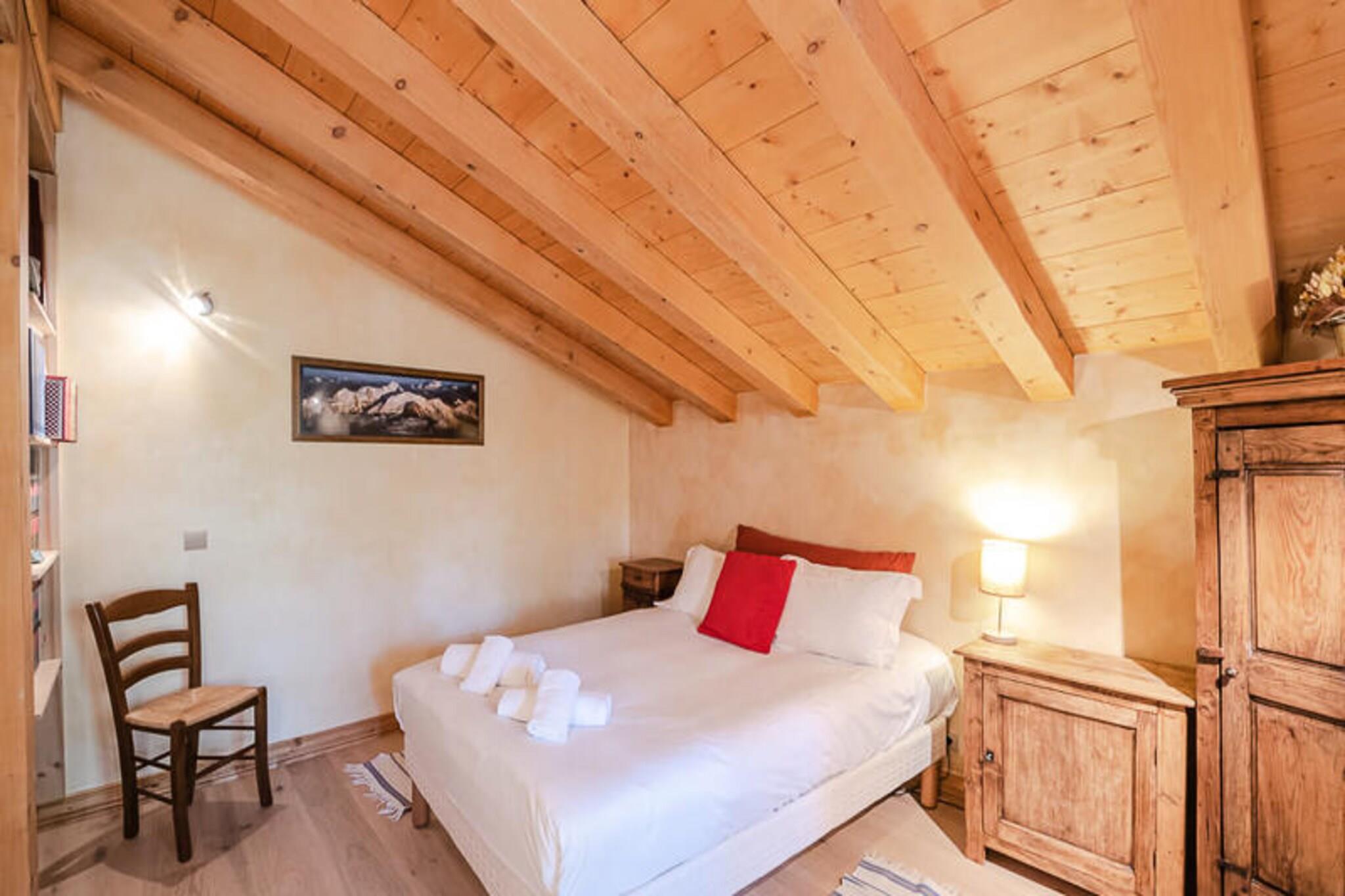 Denne charmerende hytte på 210 m², bedømt til 3 stjerner, er fordelt på 2 etager og har plads til op til 12 gæster fordelt på 6 rummelige soveværelser. Beliggende i Tines-distriktet, 5 km fra Chamonix, tilbyder det en betagende udsigt over Mont Blanc. Det hyggelige opholds- og spiseområde på 60 m² omfatter pejs, hjemmebiograf, dvd-afspiller og terrasse med havemøbler. Det separate køkken er fuldt udstyret med moderne apparater såsom en opvaskemaskine, ovn, induktionskomfur, mikroovn og kaffemaskiner, sammen med raclette- og fonduesæt til underholdning. Et soveværelse med dobbeltseng (160x200), privat brusebad og toilet er også placeret i stueetagen. På første sal er der flere soveværelser: et med to enkeltsenge, et med en dobbeltseng (140x190), og to mere med dobbeltsenge og balkoner. Et badeværelse, brusebad og separate toiletter fuldender layoutet. Hytten er udstyret med vaskemaskine, tørretumbler og skirum for nemheds skyld. Privat udendørs parkering er tilgængelig, og Wi-Fi sikrer, at du forbliver forbundet under hele dit ophold. Hytten er ikke-ryger, og kæledyr er ikke tilladt. Der kræves et depositum på 2.000 euro før ankomst. Nærliggende transportmuligheder omfatter et busstoppested 450 m væk, SNCF-stationen 450 m væk, og busstationen 5,3 km væk. Tjenester inkluderer en varm velkomst, badeværelsesprodukter, sengetøj og slutrengøring (undtagen køkken og affald).