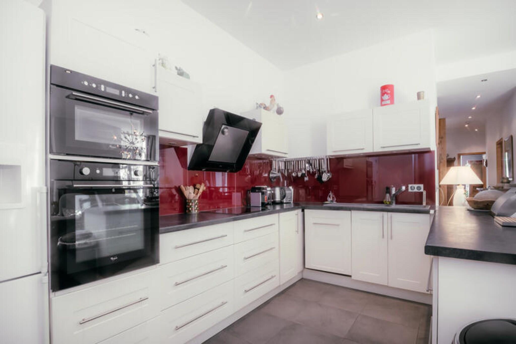 Denne lejlighed på 108 m² tilbyder et behageligt ophold for op til 6 gæster. Det har en lys stue med spiseplads og opholdsstue udstyret med tv. Det store køkken er fuldt møbleret med moderne hårde hvidevarer, herunder ovn, køleskab, mikroovn, induktionskomfur, emhætte, opvaskemaskine, elkedel, Nespresso-maskine og fransk presse-kaffemaskine. Ejendommen er røgfri og tillader ikke kæledyr, hvilket sikrer et rent miljø. Der er et ikke-privat udendørs parkeringsområde med en barriere for ekstra sikkerhed. Der kræves et kreditkortdepositum før ankomst. Beliggende i hjertet af Chamonix, er denne lejlighed ideelt beliggende kun 280 meter fra Place Mont Blanc-busstoppestedet og 180 meter fra SNCF-stationen, hvilket gør det nemt at udforske regionen. Gæsterne vil finde forskellige caféer og markeder inden for gåafstand, som tilbyder lokale delikatesser og shoppingmuligheder. For udendørsentusiaster er Mont Blanc i nærheden, som giver en fantastisk udsigt og vandrestier. Alpemuseet, der ligger tæt på, giver et fascinerende indblik i områdets historie og kultur. Lejligheden har to badeværelser, et med badekar og bruser, og et andet med bruser. Det en-suite soveværelse med dobbeltseng har et privat brusebad. Der er også selvstændige toiletter og et vaskerum med vaskemaskine og tørretumbler. Gæsterne har adgang til en fælles terrasse for at nyde udsigten og slappe af. Væsentlige faciliteter, herunder WiFi, linned og badeværelsesprodukter, er inkluderet for et bekvemt og behageligt ophold.