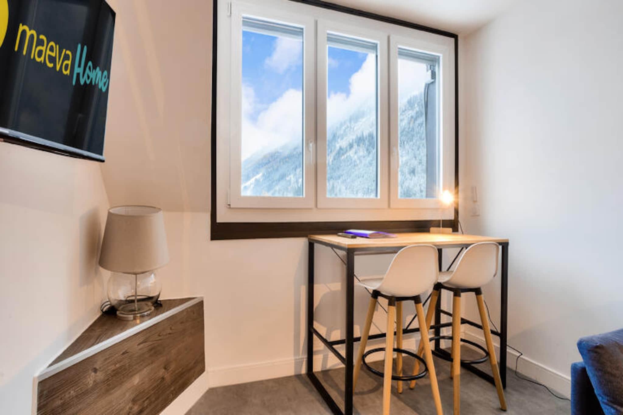 Beliggende i det pulserende Chamonix Sud-kvarter tilbyder denne charmerende lejlighed et hyggeligt tilflugtssted ved foden af ??Mont Blanc. Stuen indeholder to sovesofaer (sover to), en spiseplads med fire stole og et semi-åbent køkken for din bekvemmelighed. Soveværelset har en komfortabel dobbeltseng. Badeværelset har badekar, og der er separat toilet. Lejligheden ligger på 7. sal og har en betagende udsigt over bjergene. En parkeringsplads er også tilgængelig, hvilket sikrer nem adgang til ejendommen under dit ophold. Denne lejlighed er perfekt beliggende, kun 5 minutters gang fra byens centrum, hvor du finder et udvalg af caféer, butikker og restauranter. Uanset om du er i humør til et hyggeligt måltid eller har brug for udendørsudstyr, er alt, hvad du har brug for lige ved døren. Ejendommen ligger kun 1 km fra Mont Blanc, hvilket gør den til en ideel base for udendørsentusiaster. Vandring, skiløb og klatring er blot nogle af de aktiviteter, du kan nyde i nærheden, og tilbyder en uforglemmelig oplevelse i hjertet af Alperne. Yderligere faciliteter omfatter et veludstyret køkken med komfur, køleskab og mikrobølgeovn til tilberedning af måltider. Et fjernsyn er tilgængeligt for underholdning, og sengetøj leveres. Dog er håndklæder tilgængelige mod et ekstra gebyr. Ejendommen tilbyder også adgang til et wellness-center på Hôtel Les Aiglons, hvor du kan nyde en sauna til en afslappende oplevelse (mod betaling). Kæledyr er tilladt mod et ekstra gebyr. Denne lejlighed tilbyder både komfort og bekvemmelighed, hvilket sikrer et mindeværdigt ophold i Chamonix.