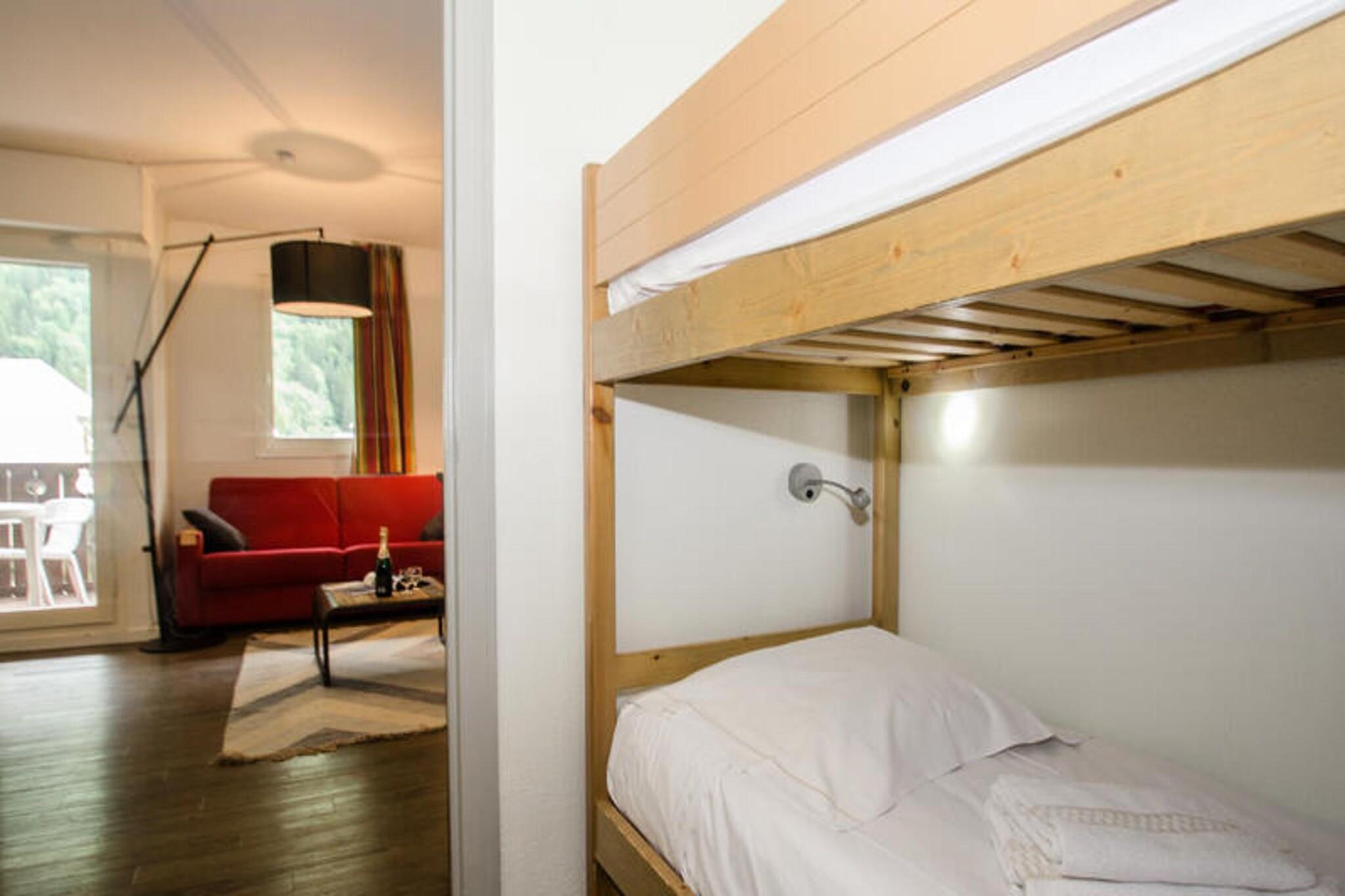Dette 25 m² store studie, klassificeret 2 stjerner, er designet til op til 4 personer og er beliggende på 5. sal i en bolig med elevator i Chamonix South. Studiet indeholder en entré med to køjesenge (80x190), et opholdsområde med en dobbelt sovesofa og et tv. Rummet er røgfrit og kæledyrsfrit, hvilket gør det til et behageligt valg for familier eller små grupper. Der kræves et depositum på 400 euro før ankomst. Ejendommen ligger kun 350 meter fra gågaden og 50 meter fra det vigtigste skibusstoppested og tilbyder nem adgang til lokale attraktioner. Området byder på et udvalg af caféer, restauranter og butikker, hvor gæsterne kan udforske det lokale køkken og kultur. Skientusiaster vil sætte pris på nærheden til Chamonix' skiløjper og andre udendørs aktiviteter, mens de nærliggende tog- og busstationer gør det nemt at komme rundt i området. Studiet har et veludstyret tekøkken med to keramiske kogeplader, en mikrobølgeovn, et køleskab og en filterkaffemaskine. Badeværelset har toilet, og ejendommen har balkon med en fantastisk udsigt over Mont-Blanc. Lejen inkluderer linned (lagner og håndklæder), badeværelsesprodukter og slutrengøring (ekskl. køkken og affald). Skiopbevaring er tilgængelig for gæsterne.