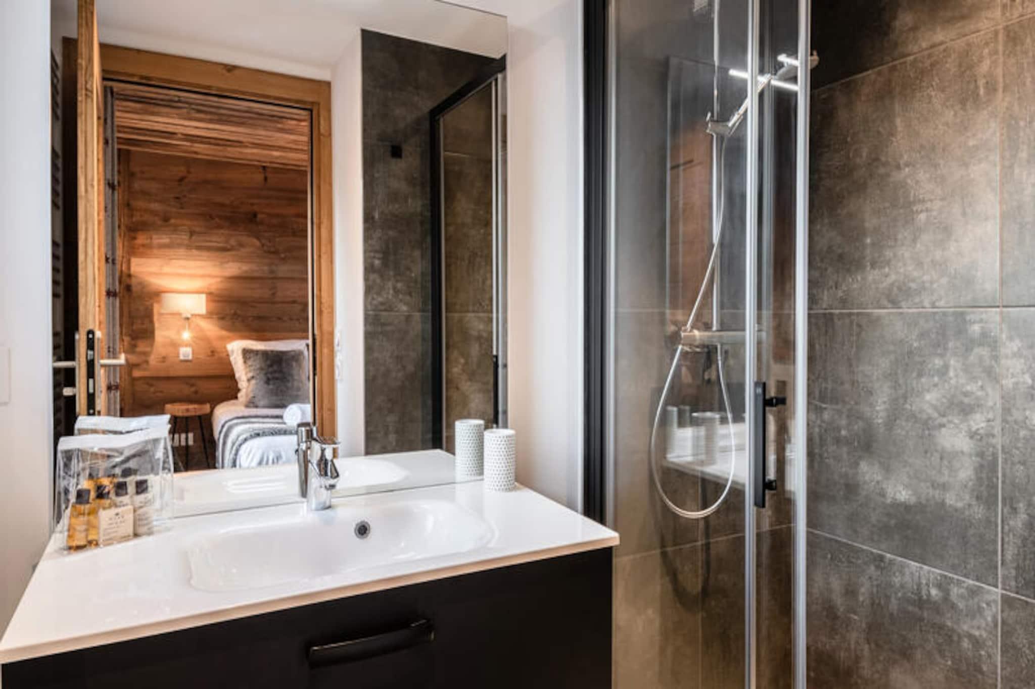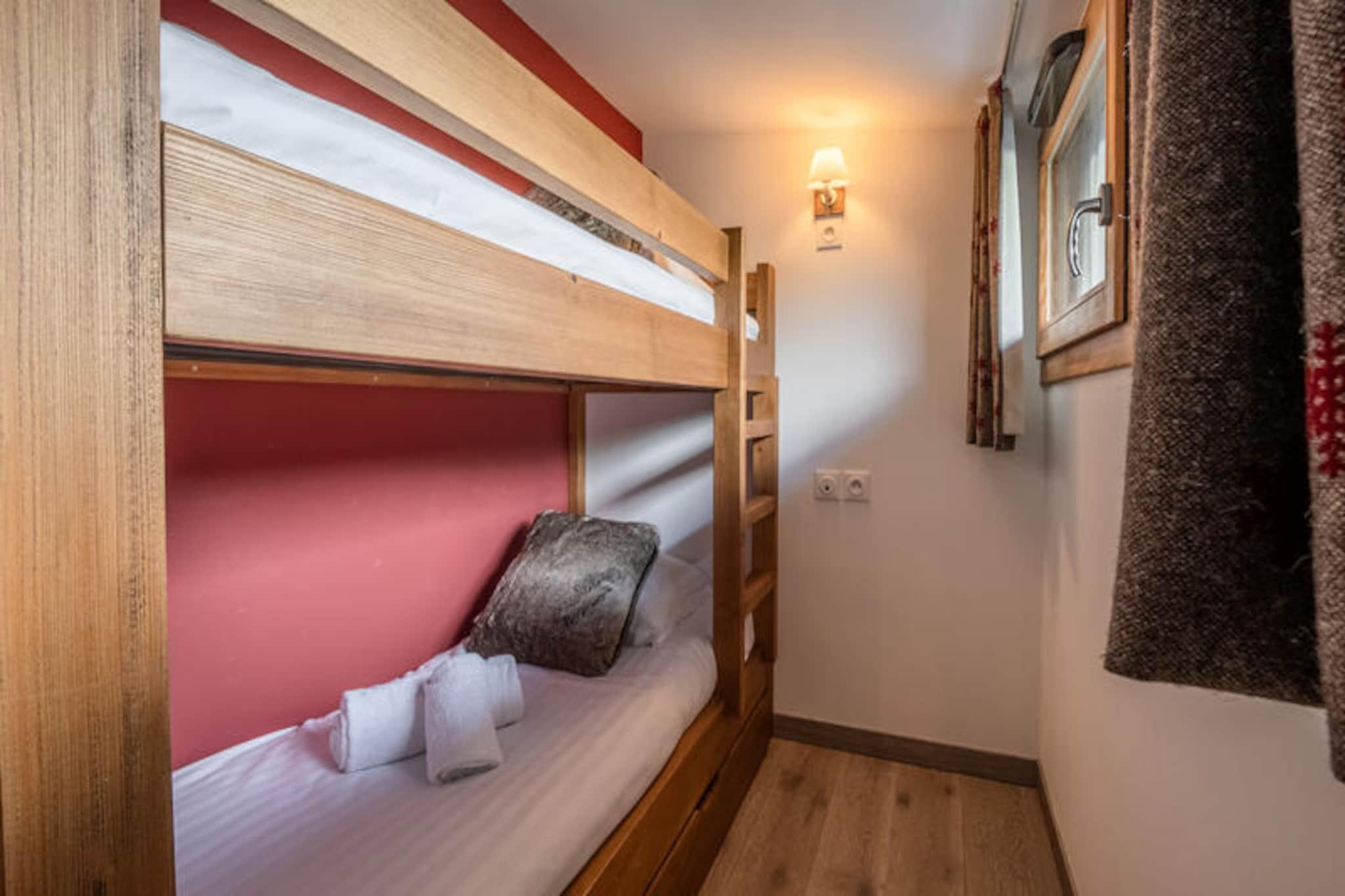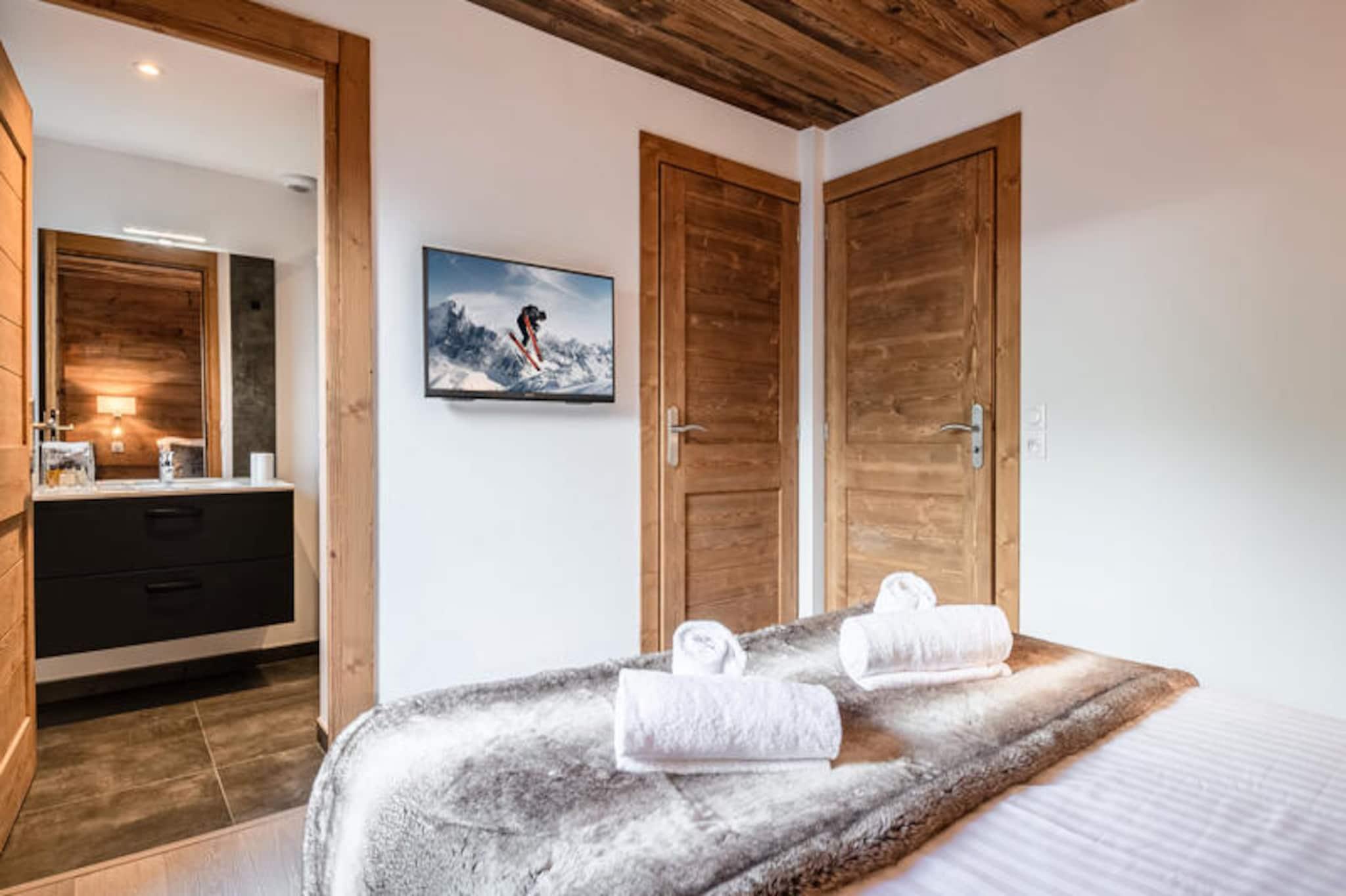 I hjertet af Chamonix, hvor Alpernes charme møder moderne komfort, tilbyder denne 3-stjernede duplexlejlighed et idyllisk tilflugtssted for op til seks gæster. Beliggende i det rolige Lyret-distrikt kombinerer denne bolig ro med bekvemmeligheden ved at være kun få skridt fra Chamonix' pulserende centrum. Fra balkonen kan du nyde de beroligende syn og lyde af Brévent-floden og skabe den perfekte kulisse for din alpine flugt. \n\nLejligheden på 77 m² er fordelt på to etager og er omhyggeligt designet til at imødekomme alle dine behov. Den nederste etage har en hyggelig tv-stue, en spiseplads og et fuldt udstyret åbent køkken med moderne apparater såsom induktionskogeplade, ovn og Nespresso-kaffemaskine. Et luksuriøst soveværelse med dobbeltseng og eget badeværelse, adgang til balkon og et separat toilet fuldender denne etage. Ovenpå finder du et fleksibelt soveværelse med to enkeltsenge, et charmerende værelse med køjeseng og et ekstra brusebad med toilet, hvilket sikrer rigelig plads og privatliv for alle gæster. \n\nMed en privat garage, skirum og Wi-Fi inkluderet er denne ejendom perfekt udstyret til både vinter- og sommereventyr. Busstoppestedet og togstationen ligger kun en kort gåtur væk, hvilket giver nem adgang til de omkringliggende skiløjper, vandrestier og den ikoniske Aiguille du Midi. Efter en dag med udforskning kan du vende tilbage til din komfortable lejlighed, hvor sengene er redt ved ankomst, og slutrengøring er sørget for. \n\nUanset om du er her for at stå på ski, vandre eller blot nyde den betagende udsigt, lover denne lejlighed i Chamonix en uforglemmelig alpin oplevelse. Med sin blanding af bekvemmelighed, komfort og naturlig skønhed er det den perfekte base for din bjergferie.