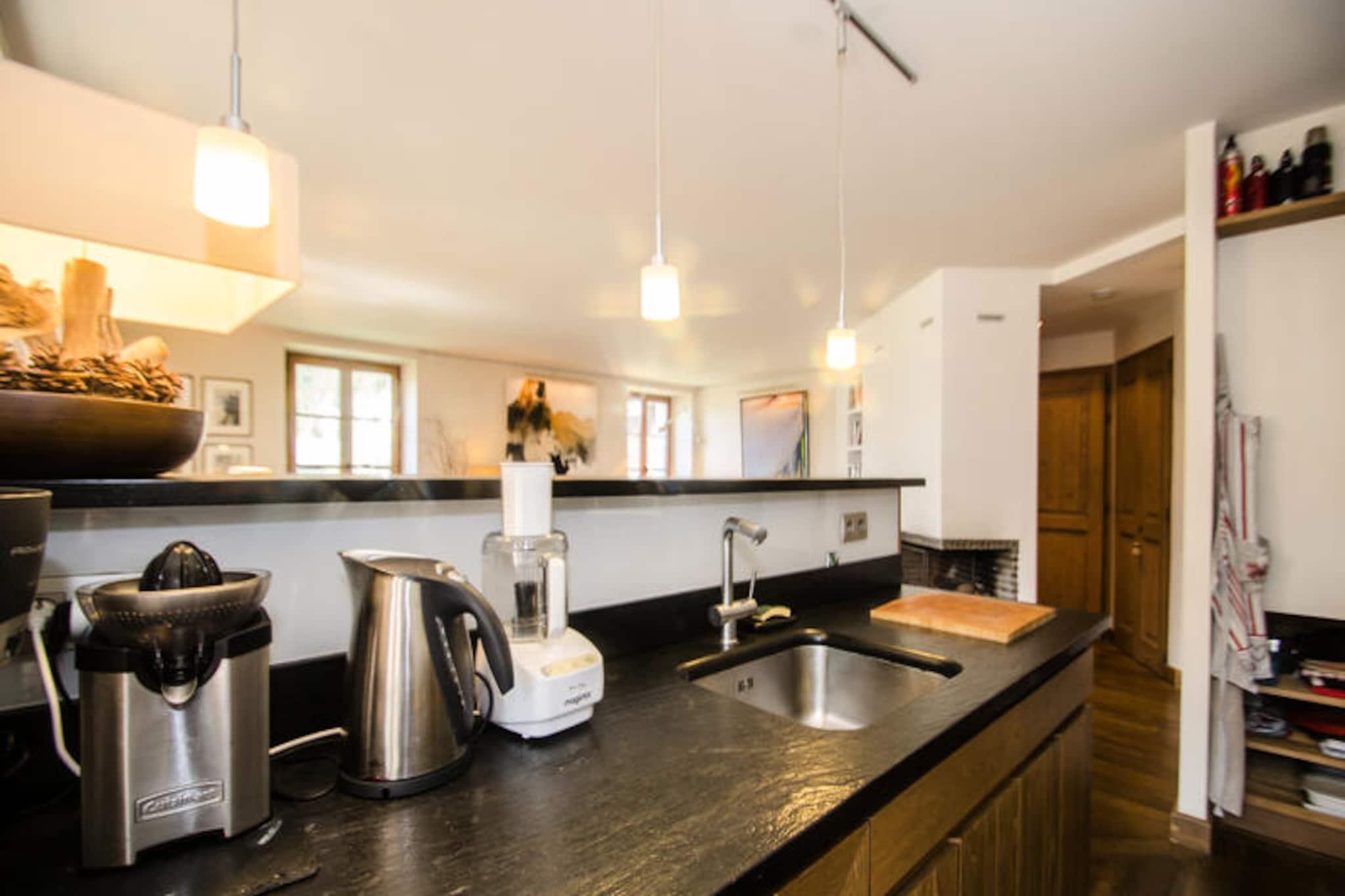 Omgivet af de majestætiske tinder af Mont Blanc-massivet tilbyder denne elegante lejlighed på 100 m² i det rolige Les Pécles-distrikt i Chamonix et roligt alpint tilflugtssted, kun 1 km fra det pulserende bycentrum. Denne ejendom kombinerer moderne komfort med traditionel charme og inviterer dig til at fordybe dig i de franske alpers skønhed, mens du nyder bekvemmeligheden ved nærliggende faciliteter og transportforbindelser. Den betagende udsigt fra balkonen med udsigt over Mont Blanc sætter tonen for en uforglemmelig bjergferie. Indvendigt er lejligheden omhyggeligt designet til at rumme op til seks gæster. Den rummelige opholds- og spisestue er udstyret med tv, dvd-afspiller, satellit-tv og stereoanlæg, hvilket skaber et hyggeligt sted at slappe af efter en dag med eventyr. Det åbne køkken er fuldt udstyret med alt fra en Nespresso-maskine til et raclette-sæt, hvilket sikrer, at du nemt kan nyde lækre måltider. Hvert af de tre soveværelser med eget badeværelse tilbyder komfort og privatliv, hvoraf to har balkonadgang til at nyde den alpine luft. Yderligere faciliteter inkluderer et vaskerum, skiopbevaring og gratis Wi-Fi, hvilket sikrer et problemfrit ophold. Beliggenheden er ideel til at udforske Chamonix' vidundere. Der ligger et busstoppested kun 300 meter væk, hvilket giver nem adgang til skilifte, vandrestier og byens travle butikker og restauranter. Uanset om du er her for vintersport eller sommervandreture, er området et paradis for friluftsentusiaster. Efter en dag med eventyr kan du vende tilbage til den fredelige atmosfære i Les Pécles, hvor Mont Blancs skønhed altid er i syne. Med sin førsteklasses beliggenhed, luksuriøse faciliteter og uovertrufne bjergudsigt er denne lejlighed den perfekte base for at skabe dyrebare minder i hjertet af Alperne.