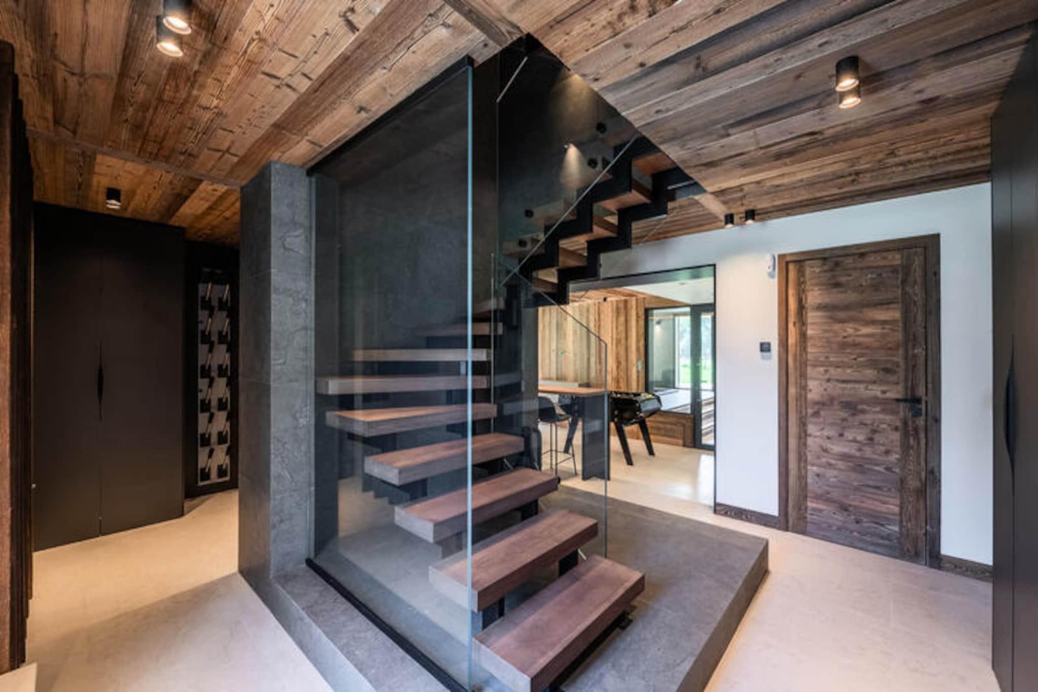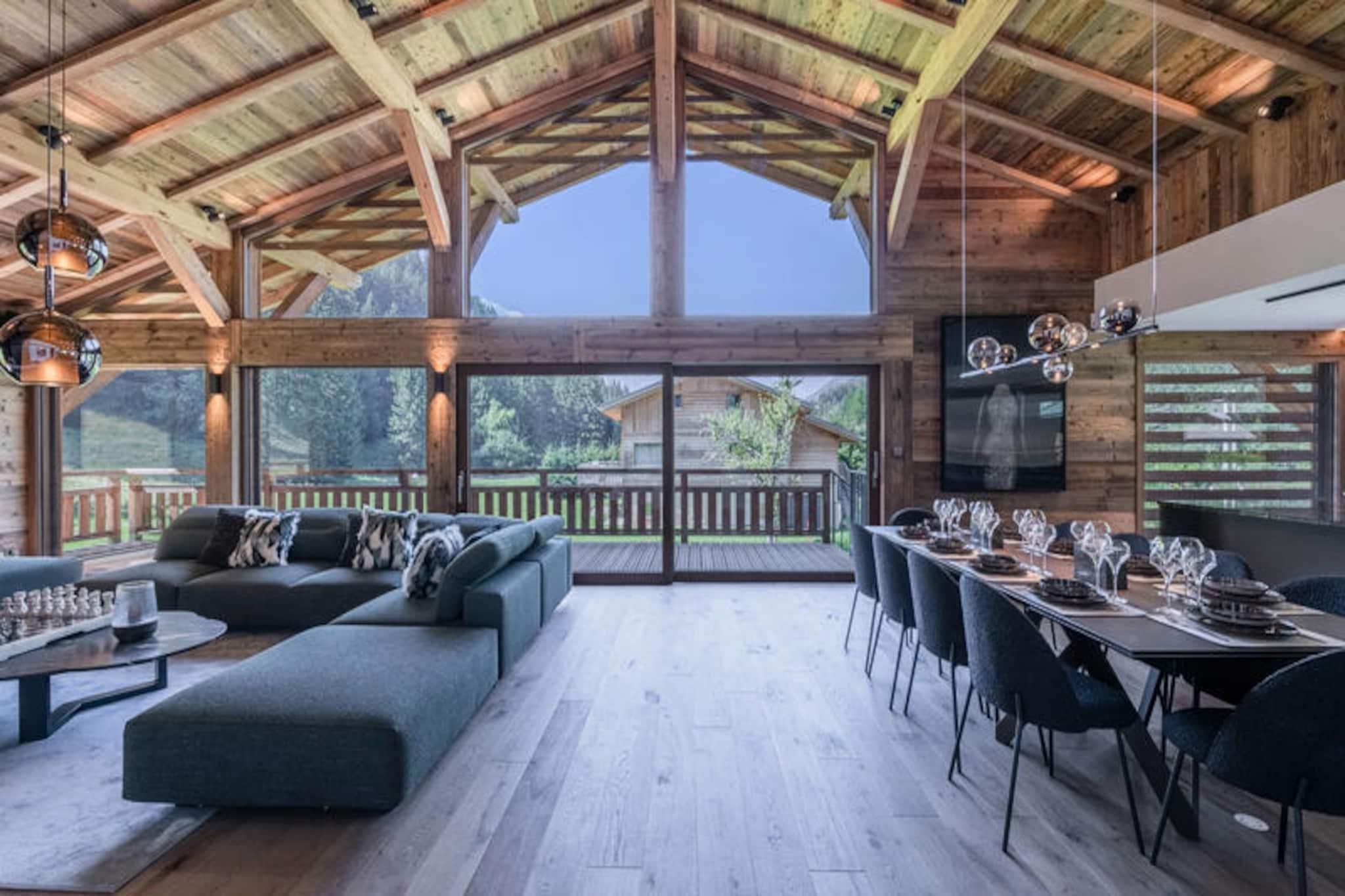 I skyggen af ??Mont Blanc, hvor roen i de alpine landskaber møder luksuriøs komfort, tilbyder denne storslåede hytte et uforglemmeligt tilflugtssted i Argentière. Ejendommen strækker sig over 450 m² fordelt på tre etager og er perfekt beliggende langs langrendsløjpen, kun 1,6 km fra det berømte skiområde Grands-Montets og den charmerende landsby Argentière. Uanset om du søger spændende vintereventyr eller rolige sommerferier, er denne hytte din port til det bedste af de franske alper. \n\nTræd indenfor og bliv mødt af en elegant blanding af moderne design og alpin charme. Hytten kan prale af en rummelig opholdsstue med en hyggelig pejs, bibliotek og siddepladser til op til 12 gæster, hvilket skaber den perfekte atmosfære til afslapning efter en dag udendørs. Det åbne køkken og spisestue er ideelle til at dele måltider, mens soveværelserne, inklusive en master suite med privat balkon og spa-lignende badeværelse, sikrer afslappende nætter for op til 14 gæster. Yderligere faciliteter såsom et skirum, fitnesscenter og indendørs spa med jacuzzi og sauna hæver dit ophold til et af ren forkælelse. \n\nUd over hytten byder regionen på uendelige muligheder for udforskning. Fra skiløb og snowboarding i Grands-Montets til vandrestier, der snor sig gennem betagende alpine landskaber, er hvert øjeblik en chance for at komme i kontakt med naturen. Den nærliggende landsby Argentière tilbyder dejlige butikker, restauranter og en varm lokal atmosfære, mens Mont Blanc danner en majestætisk kulisse for dine eventyr. \n\nUanset om du slapper af på terrassen med havemøbler eller nyder den indendørs spa, lover denne hytte en harmonisk blanding af luksus og natur. Gør dine alpine drømme til virkelighed i dette ekstraordinære tilflugtssted, hvor hver eneste detalje er blevet omhyggeligt designet for at sikre et mindeværdigt ophold.