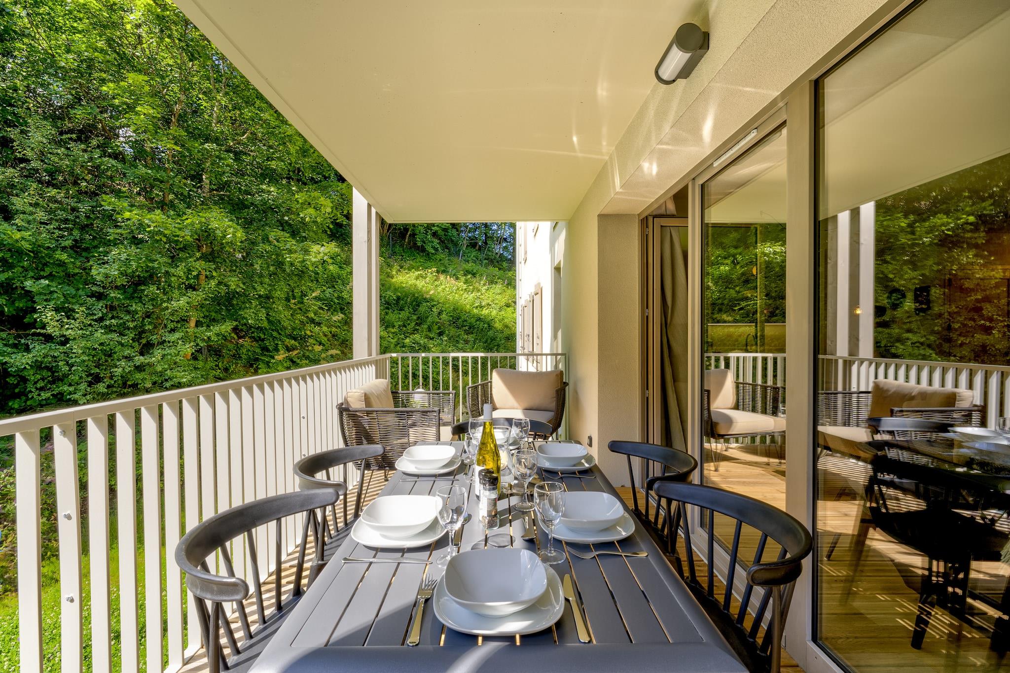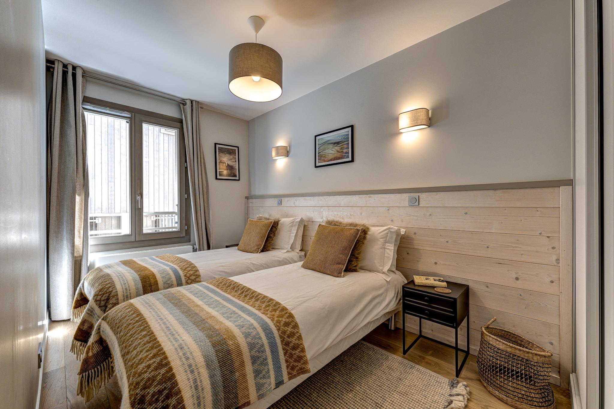 Denne moderne alpine lejlighed med tre soveværelser tilbyder stilfuldt interiør og en fremragende beliggenhed kun en kort gåtur fra Chamonix bycentrum. Den åbne stue er lys og rummelig med store vinduer, der giver masser af naturligt lys og en fantastisk udsigt over bjergene. En stor overdækket altan udvider opholdsrummet og er udstyret med udendørs spisemøbler – perfekt til at nyde måltiderne, mens man nyder den alpine udsigt. Det fuldt udstyrede køkken har en stor ovn, mikroovn, køleskab, fryser, opvaskemaskine, Nespresso-kaffemaskine og alle nødvendige køkkenredskaber, hvilket er ideelt til et behageligt ophold med egen forplejning. Lejligheden har plads til op til seks gæster og har tre soveværelser og to badeværelser. Det store soveværelse har eget bad og toilet, mens de øvrige soveværelser deler et badeværelse og separat toilet. Det tredje soveværelse tilbyder fleksibilitet med enten to enkeltsenge eller en dobbeltseng, hvilket gør lejligheden velegnet til familier, par eller grupper. Underholdningsmulighederne omfatter gratis WiFi, streamingtjenester som Netflix og en musikhøjttaler. Yderligere faciliteter omfatter vaskemaskine, ski- og cykelopbevaring samt støvletørrere, så gæsterne har alt, hvad de har brug for til både vinter- og sommerophold. Beliggenheden giver nem adgang til alle Chamonix' attraktioner, butikker og restauranter, så en bil er ikke nødvendig. Gæster, der vælger at køre i bil, kan dog benytte den private underjordiske parkeringsplads. Med sit moderne design, høje kvalitet og panoramaudsigt over bjergene tilbyder denne lejlighed en perfekt blanding af komfort og bekvemmelighed for en uforglemmelig alpin ferie. Bemærk, at kæledyr ikke er tilladt.