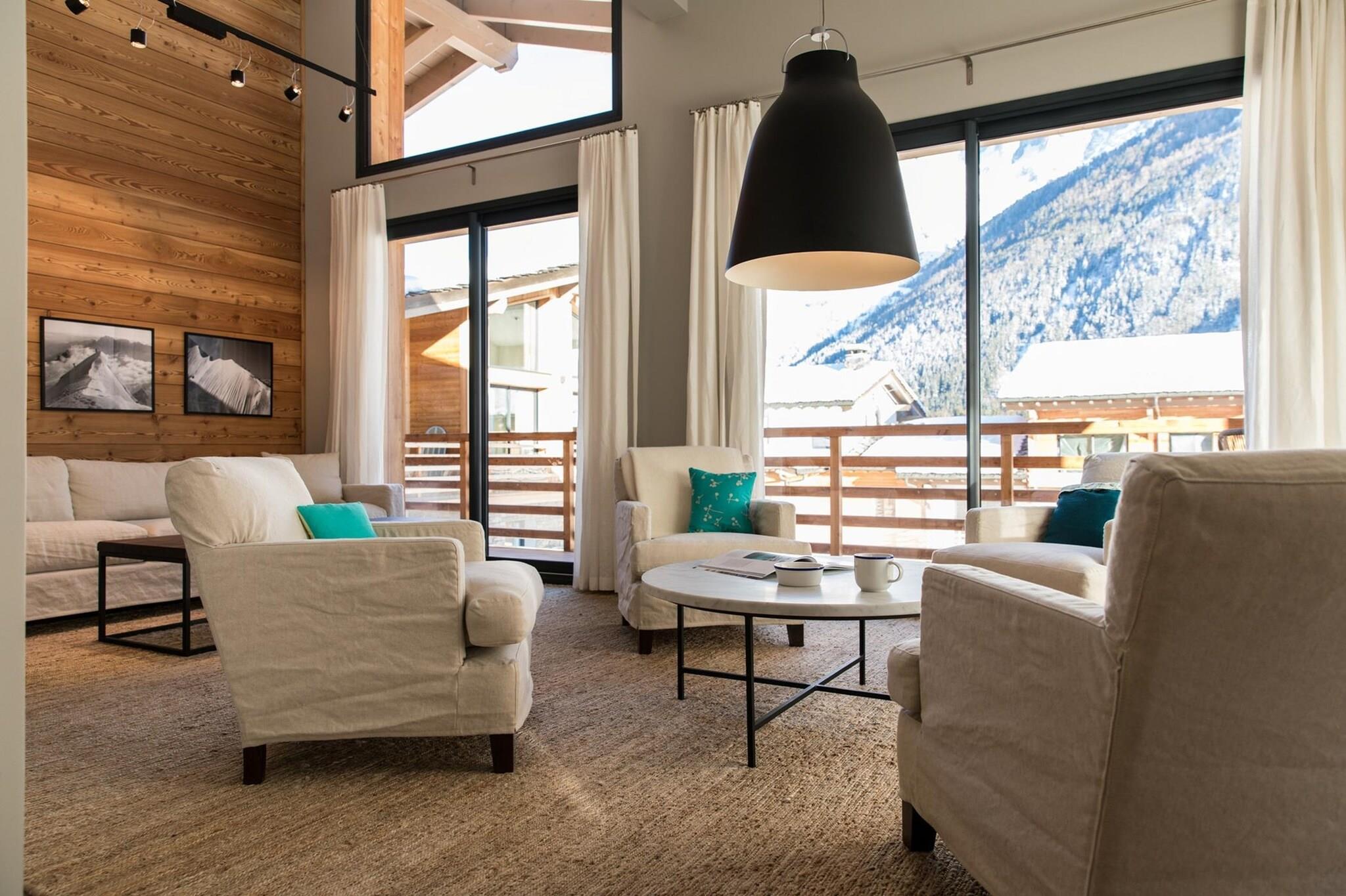Oplev det perfekte alpine fristed i Chamonix Les Praz. Gulv-til-loft-glasdøre fylder det åbne opholdsrum med lys og indrammer en betagende udsigt over Mont Blanc og Bosson-gletsjeren. Slap af på den omgivende altan med loungemøbler, nyd måltiderne udendørs eller nyd blot bjergpanoramaet. Indvendigt sikrer elegante møbler, et fuldt udstyret køkken og komfortable soveværelser med eget badeværelse et luksuriøst, men alligevel hjemligt ophold. Underholdning er nemt med gratis WiFi, satellit-tv, streamingtjenester og et Sonos-lydsystem, mens ski- og cykelopbevaring, støvletørrere og underjordisk parkering gør bjergeventyr nemme. Bemærk, at hunde ikke er tilladt. Gæsterne har også eksklusiv adgang til boligkompleksets spa- og fritidsfaciliteter, herunder indendørs pool, jacuzzi, sauna, fitnesscenter og et spillerum med poolbord. Uanset om du vil slappe af efter en dag på ski eller nyde en sommerdag, er lejligheden det perfekte sted at genoplade batterierne, mens du er omgivet af alpernes skønhed. Den ligger i et roligt boligområde, kun to minutters kørsel fra landsbyen og Flegere-svævebanen eller fem minutter fra Chamonix centrum, hvor du har nem adgang til butikker, restauranter og skilifte. Beliggenheden er ideel til alle årstider. Om vinteren kan du stå på ski i Le Brevent, La Flegere, Les Houches, Vallorcine, Grands Montets eller udforske området yderligere med skiture til Crans Montana eller Courmayeur. Prøv skøjteløb, kælkning, indendørs klatring, eller tag Aiguille du Midi-svævebanen og træd ud i tomrummet. Om sommeren kan du nyde vandreture, mountainbiking, trail running, klatring eller svømning i Passy-søen.