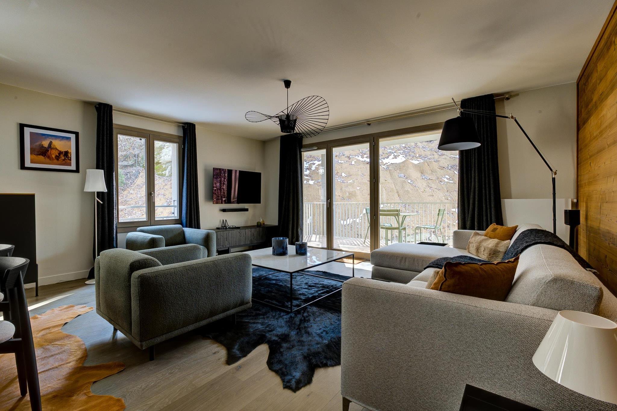 I hjertet af Chamonix tilbyder denne elegante lejlighed med 3 soveværelser og 2 badeværelser en blanding af alpin luksus og hjemlig varme. Lejligheden er designet af en lokal indretningsarkitekt, og alle rum er rolige, stilfulde og indrettet med komfort for øje. Den lyse, åbne stue åbner ud mod en stor altan med havemøbler – det perfekte sted til morgenmad med udsigt over bjergene eller en stille aften under stjernerne. Det store soveværelse har sin egen private altan, der tilbyder et intimt tilflugtssted, hvor man kan nyde den friske alpine luft. Indvendigt løfter gennemtænkte detaljer oplevelsen: et fuldt udstyret køkken med moderne apparater, Nespresso-kaffemaskine, opvaskemaskine, vaskemaskine og elegante finish overalt. Hold kontakten med gratis WiFi, stream dine yndlingsprogrammer på smart-tv'et, eller slap af med musik fra Bluetooth-højttaleren. Der er ski- og cykelopbevaring med støvletørrere, privat underjordisk parkering (højdebegrænsning 2,2 m) og udendørs parkering for nemheds skyld. Bemærk, at kæledyr, herunder hunde, ikke er tilladt. Om vinteren kan du udforske verdensberømte skisportssteder – Le Brévent, La Flégère, Grands Montets, Les Houches, Vallorcine, Le Tour, St Gervais, Megève, Les Contamines og Courmayeur (Italien) – eller tage på skiture til Crans Montana. Udover skiløb kan du nyde skøjteløb, après-ski, Aiguille du Midi-svævebanen, Skyway Monte Bianco, Montenvers-toget til Mer de Glace og isgrotterne eller Krystalmuseet. Når sommeren kommer, forvandles regionen til en udendørs legeplads med vandreture, mountainbiking, klatring, trail running, rafting, canyoning og vandsport ved Passy-søen. Efter en dag fuld af eventyr kan du vende tilbage til dit fredelige alpine fristed, hvor al komfort venter på dig.