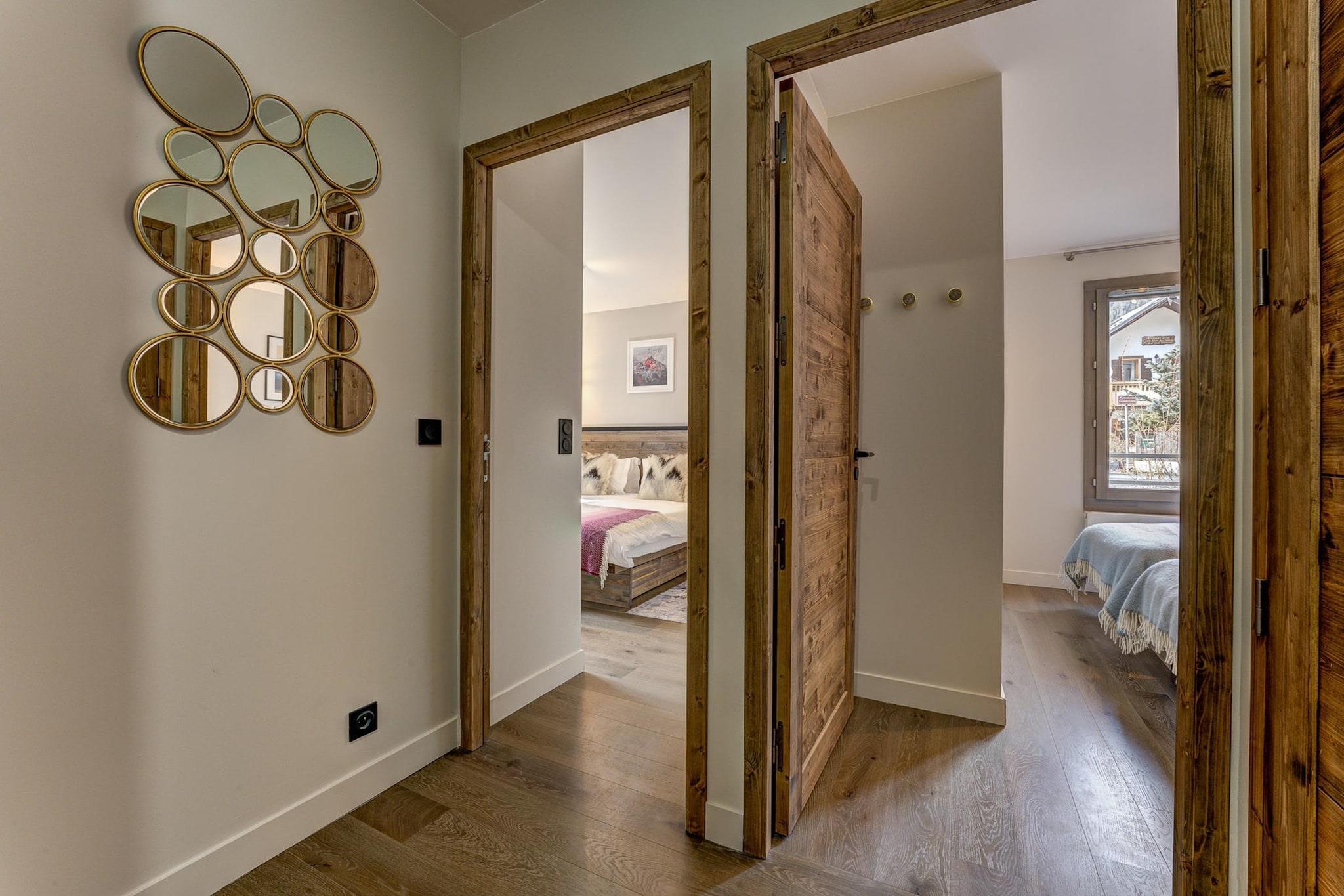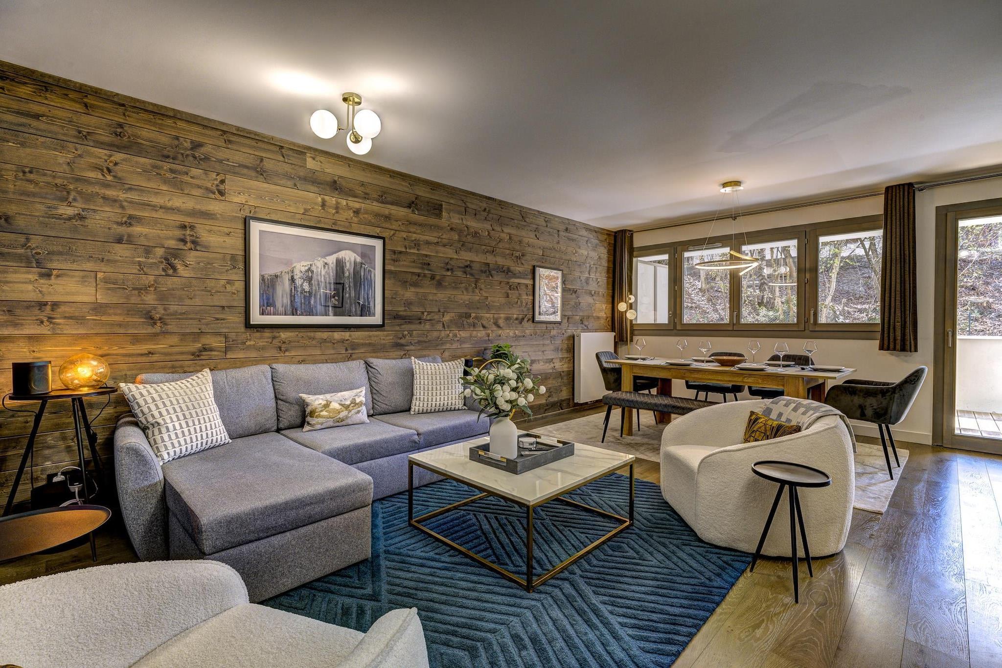 Denne elegante lejlighed med 2 soveværelser og 2 badeværelser ligger i hjertet af Chamonix og kombinerer alpin charme med moderne sofistikering. White Pearl A04 tilbyder et smukt designet åbent opholdsområde med luksuriøse møbler, stemningsfuld belysning og et 165 cm stort Smart TV – perfekt til afslappende aftener efter en dag i bjergene. Store glasdøre åbner ud til en overdækket terrasse med lounge-møbler, der skaber et fredfyldt udendørsrum, hvor du kan nyde din morgenkaffe eller et glas vin om aftenen, mens du indånder den friske bjergluft. Hvert element i denne 83 m² store lejlighed er designet med henblik på komfort og bekvemmelighed. Det fuldt udstyrede køkken har en stor ovn, mikroovn, køleskab, fryser, opvaskemaskine, vaskemaskine og Nespresso-kaffemaskine, hvilket er ideelt til længere ophold eller familieferier. Underholdning er nemt med gratis WiFi og streamingtjenester som Netflix. Gæsterne har også adgang til et privat skiskab med opvarmede støvletørrere, cykelopbevaring og underjordisk parkering (maks. højde 2,2 m). Bemærk, at kæledyr, herunder hunde, ikke er tilladt. Den centrale beliggenhed betyder, at alt, hvad Chamonix har at byde på – fra butikker og caféer til livlige restauranter og skilifte – ligger inden for gåafstand, så en bil er unødvendig. Om vinteren kan gæsterne stå på ski på de legendariske pister i Le Brévent, La Flégère, Les Houches, Vallorcine, Grands Montets, St Gervais, Megève, Les Contamines eller endda Courmayeur (Italien). Om sommeren kan du nyde vandreture, cykling, klatring, paragliding eller en afslappet dag ved Lake Passy.