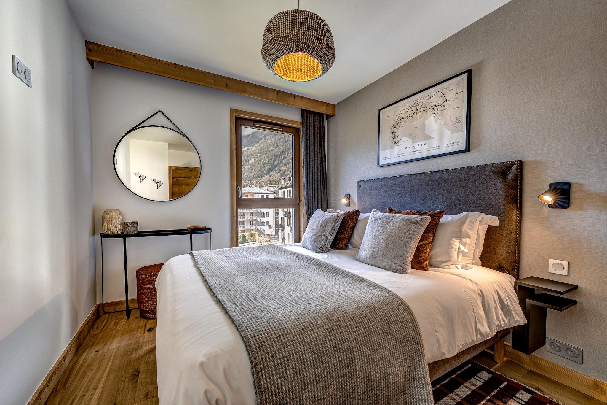 Denne moderne lejlighed med 3 soveværelser og 2 badeværelser ligger i hjertet af Chamonix og tilbyder moderne alpin livsstil med en betagende udsigt over Mont Blanc. Lejligheden er indrettet i en enestående standard og kombinerer elegant design, naturligt lys og komfort, hvilket gør den til et ideelt fristed for familier eller grupper på op til seks gæster. Den lyse åbne stue åbner ud mod to altaner – den ene er perfekt til udendørs spisning, den anden til afslapning – begge med spektakulær udsigt over bjergene. Den uovertrufne beliggenhed i byens centrum betyder, at butikker, restauranter og skilifte alle ligger inden for gåafstand. Interiøret blander moderne elegance med alpin varme. Det fuldt udstyrede køkken har en stor ovn, mikroovn, opvaskemaskine, køleskab, fryser, vaskemaskine og Nespresso-kaffemaskine, så gæsterne kan nyde alle hjemmets bekvemmeligheder. Underholdning er nemt med Smart TV, britiske kanaler, Netflix, en musikhøjttaler og gratis WiFi. Lejligheden har også skiopbevaring, elevatoradgang og sikker underjordisk parkering (maksimal højde 2,2 m). Bemærk, at kæledyr ikke er tilladt. Lejligheden kan rumme seks gæster komfortabelt med fleksible soveværelsesindretninger – et dobbeltværelse, et værelse med to enkeltsenge eller dobbeltsenge og et tredje værelse med køjesenge og eget badeværelse med brusebad. Om vinteren kan du nyde skiløb i verdensklasse i Chamonix' legendariske områder, herunder Le Brévent, La Flégère, Grands Montets, Les Houches, Vallorcine og Courmayeur (Italien). Om sommeren kommer dalen til live med vandreture, mountainbiking, klatring, paragliding og vandsport ved Passy-søen. Med sine dobbelte altaner, udsigt over bjergene og førsteklasses centrale beliggenhed tilbyder denne lejlighed den perfekte blanding af luksus og bekvemmelighed for et mindeværdigt ophold i hjertet af Alperne.