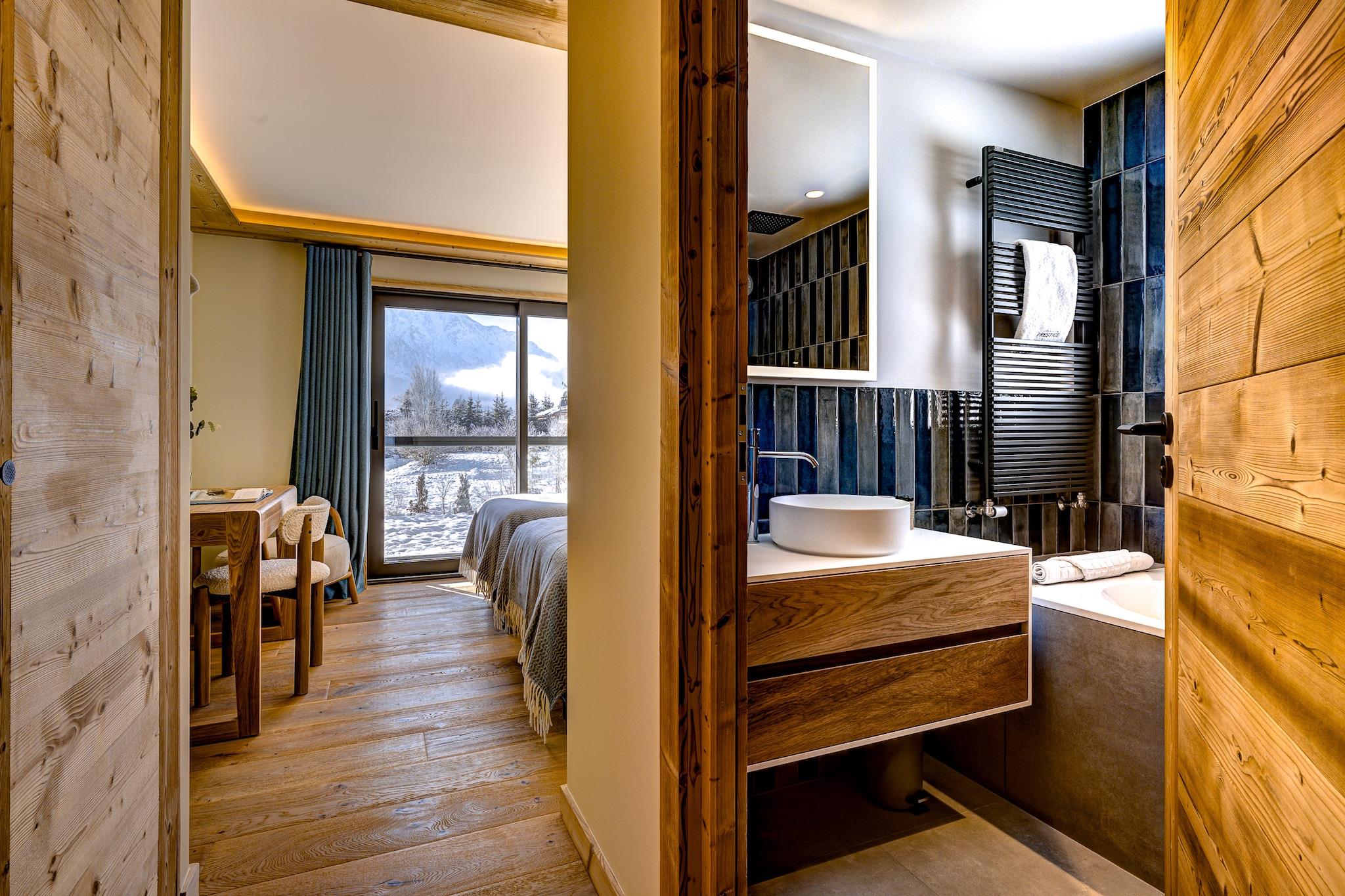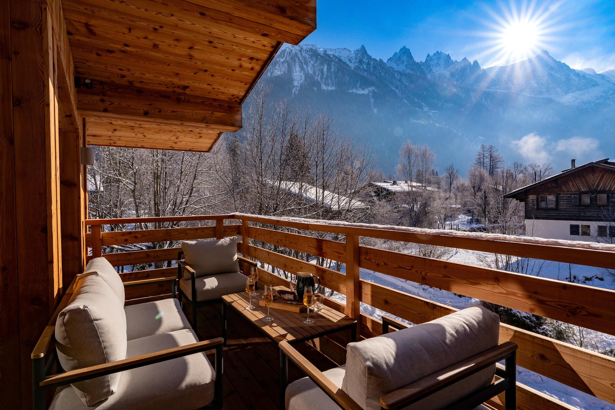 Chalet med udsigt over bjergene og spabad