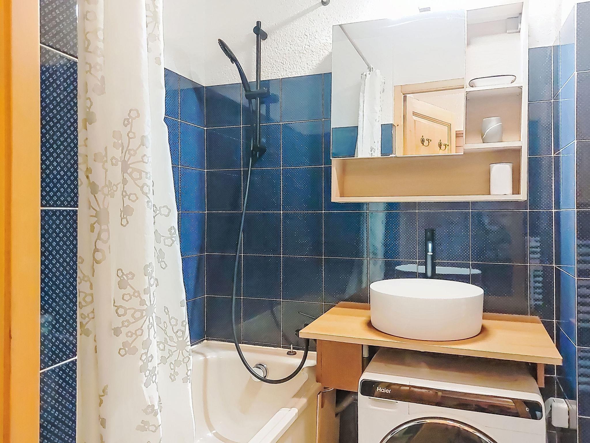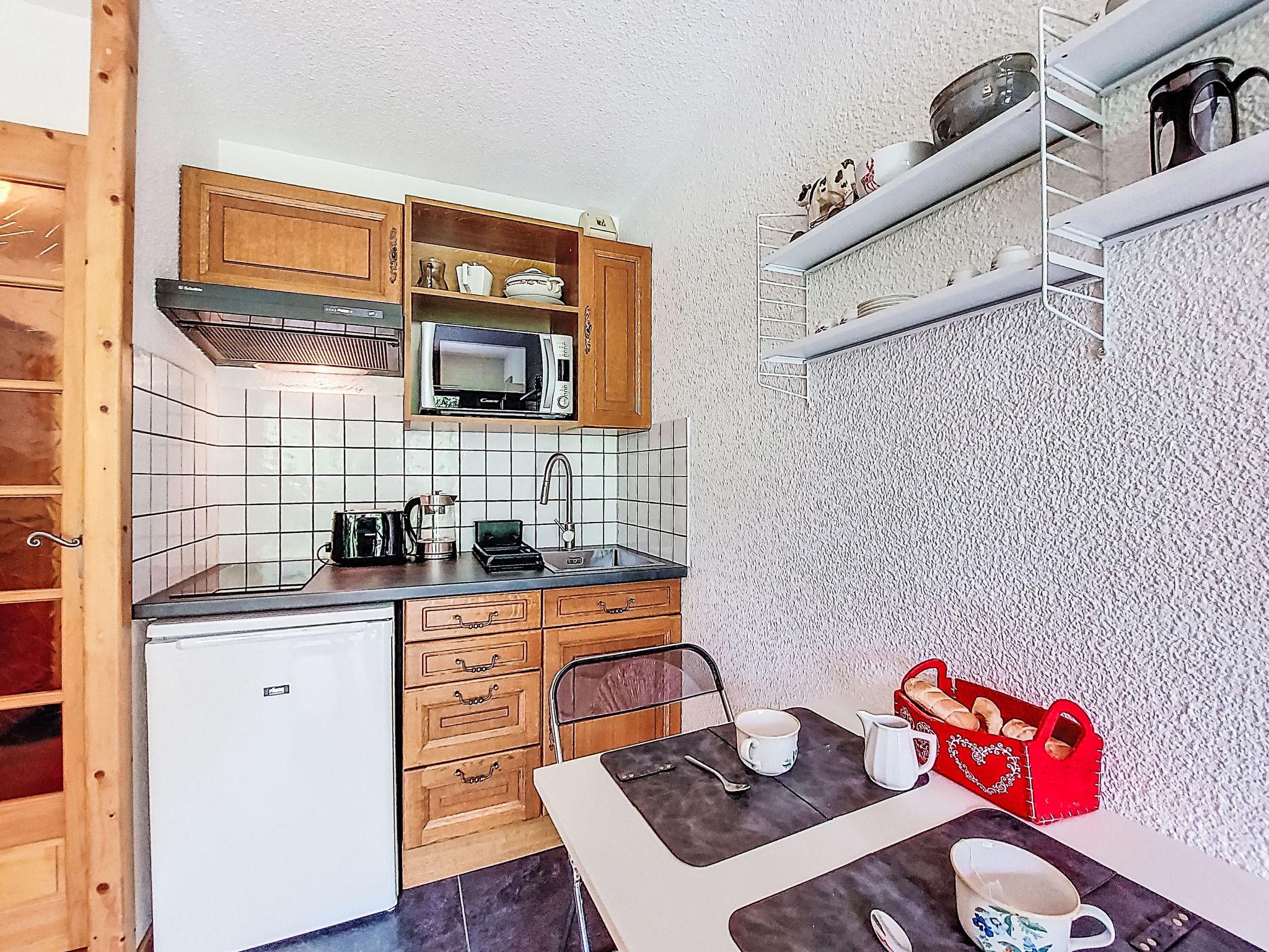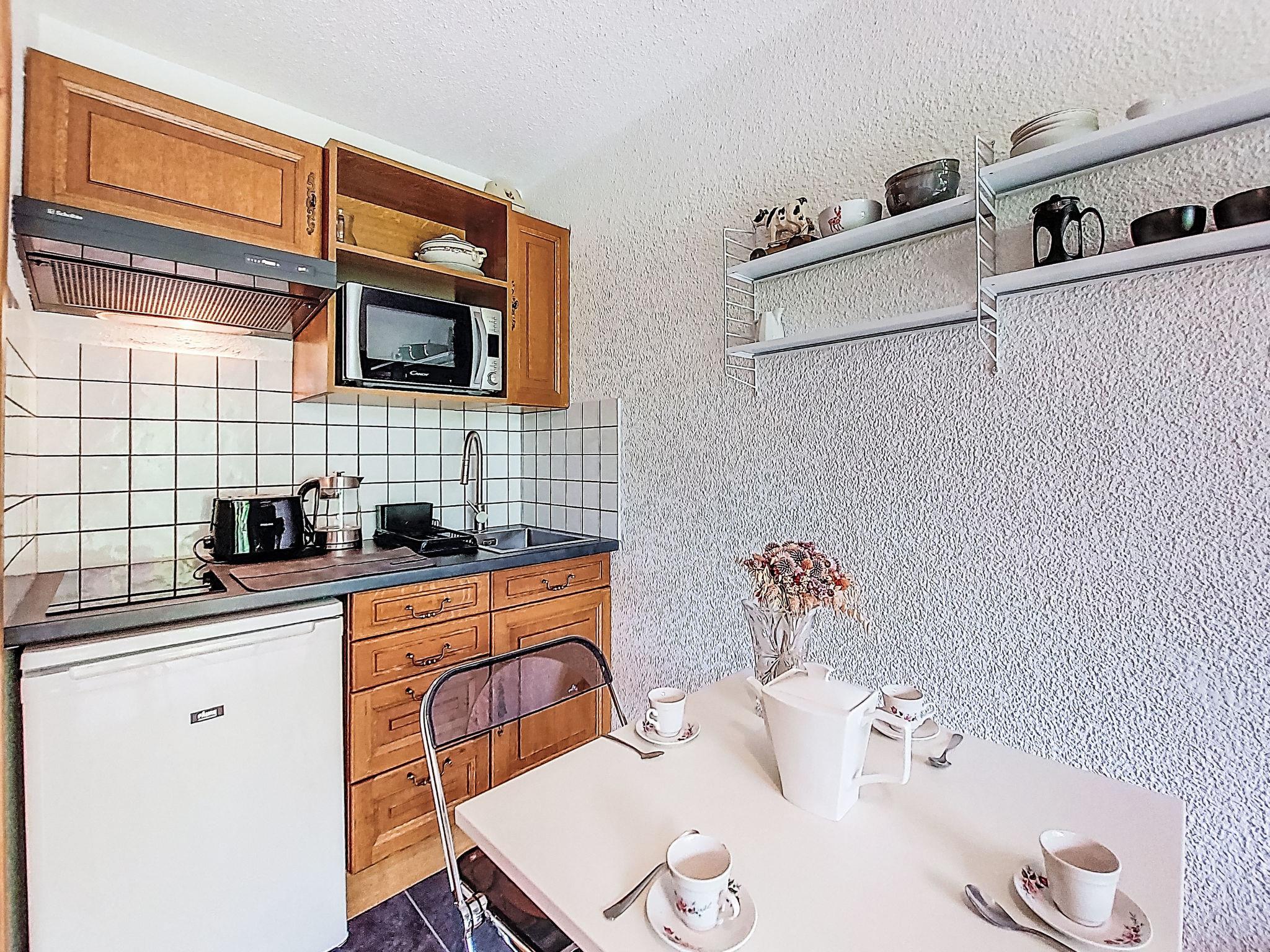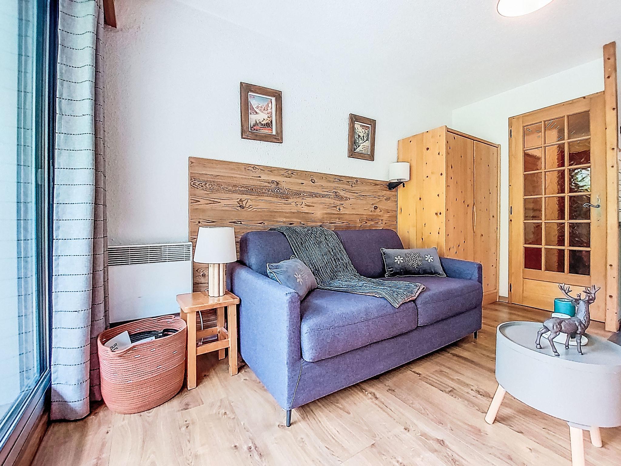 1-room studio 21 m2, on the ground floor, south facing position. Living/dining room with 1 double sofabed (160 cm, length 190 cm), TV. Exit to the terrace, to the patio. Entrance hall with 1 wall-trunk bed (80 cm, length 190 cm). Kitchenette (4 hot plates, oven, kettle, electric coffee machine). Bath/WC. Electric heating. Terrace, patio. Terrace furniture. Beautiful view of the mountains. Facilities: washing machine. Internet (WiFi, extra). Please note: non-smokers only, no parking. TV only FR. Smoke alarm. 74056 000385 ZT