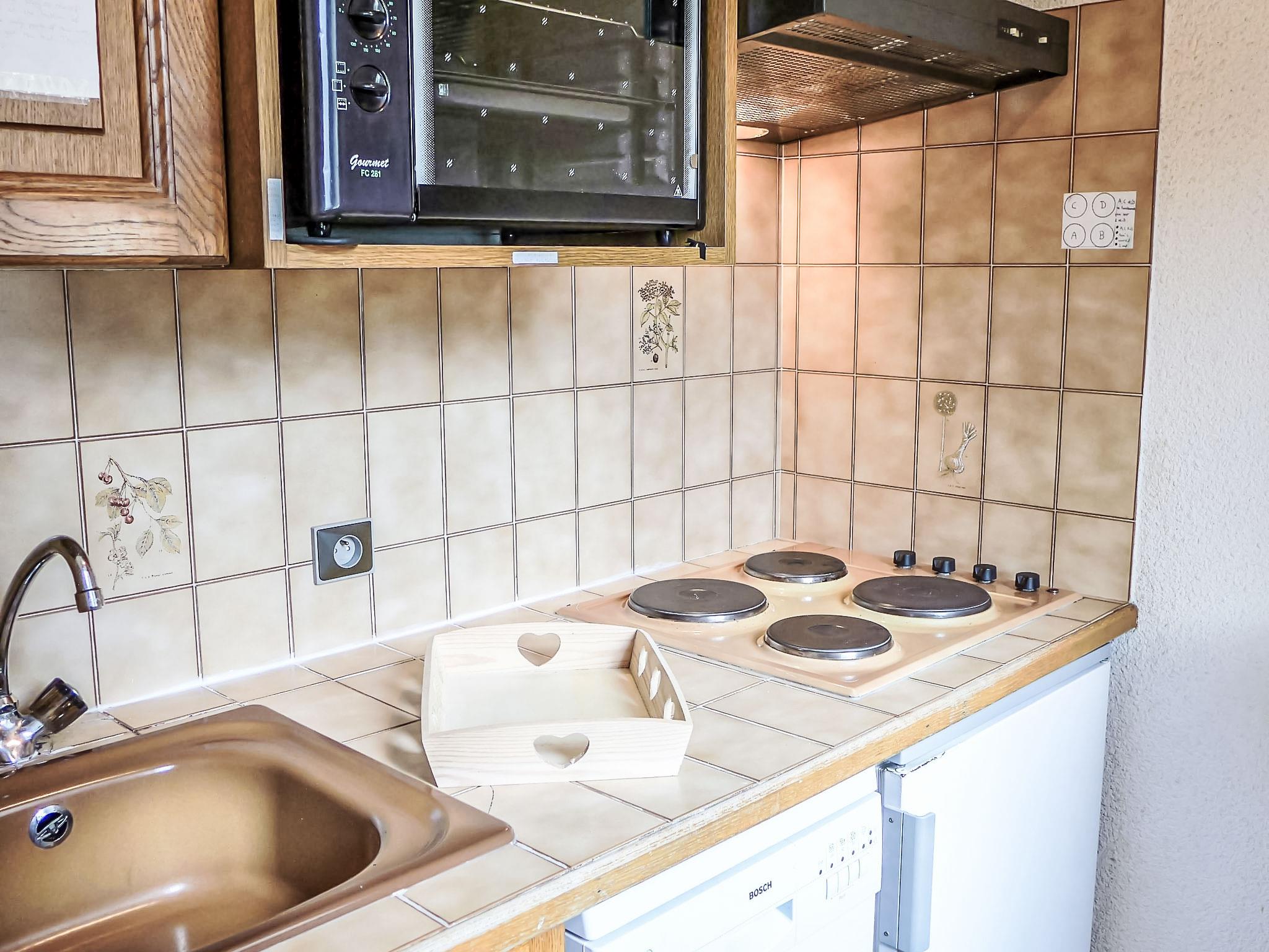 2-room apartment 30 m2 on 3rd floor. Simple furnishings: living/dining room with 1 pull-out bed (2 pers. 2 x 90 cm, length 190 cm), TV. Exit to the balcony. 1 room with 1 double sofabed (140 cm, length 190 cm). Small kitchen (oven, dishwasher, 4 induction hot plates, kettle, electric coffee machine). Bathroom, sep. WC. Electric heating. Balcony, south facing position and, east facing position. Balcony furniture. Very beautiful view of the mountains. Facilities: Internet (WiFi, free). Parking space n C 72 (roofed), height 190 cm. Please note: parking space for small car only. TV only FR. Smoke alarm. 74056 0007960U
