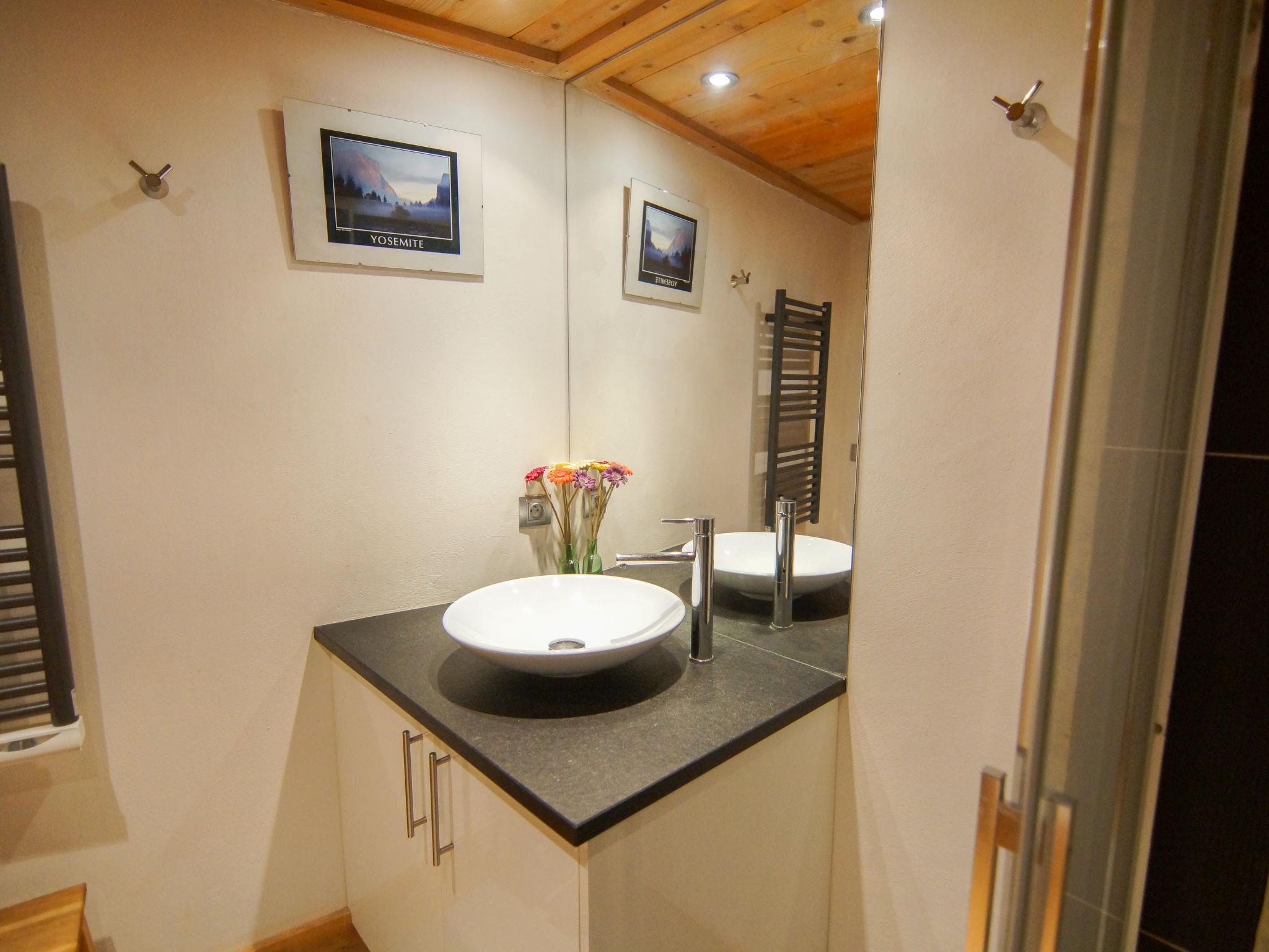 3-room apartment 60 m2, on the ground floor. Very comfortable furnishings: living/dining room with TV, CD-player, DVD and Home cinema. Exit to the garden, to the terrace. 1 room with 2 beds (90 cm, length 200 cm), TV and DVD. 1 room with 2 beds (90 cm, length 200 cm), shower/WC and TV. Open kitchen (oven, dishwasher, 4 ceramic glass hob hotplates, toaster, kettle, microwave, freezer, electric coffee machine, Capsules for coffee machine (Nespresso) extra, raclette grill, fondue Set (cheese)). Bathroom, sep. WC. Electric heating. Terrace, south facing position, garden 30 m2. Terrace furniture. Very beautiful view of the mountains. Facilities: washing machine, dryer, safe, iron. Internet (WiFi, free). Garage space n 4 en sous sol at 450 m. Please note: smoke alarm. All beds can be transformed into a double bed 180x200. Summer 2023: work nearby. 74056000387KL