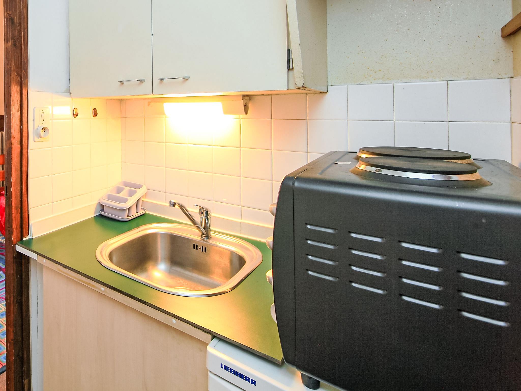 1-room apartment 20 m2 on 5th floor. Very simple furnishings: living/dining room with 1 double sofabed and TV. Exit to the balcony. Kitchenette (2 hot plates, mini-oven, kettle, electric coffee machine). Shower/WC. Small balcony, north-east facing position. Beautiful view of the mountains. Facilities: Internet (WiFi, extra). Please note: no parking. Maximum 1 small pet/ dog allowed. TV only FR. Smoke alarm. 74056000390BR