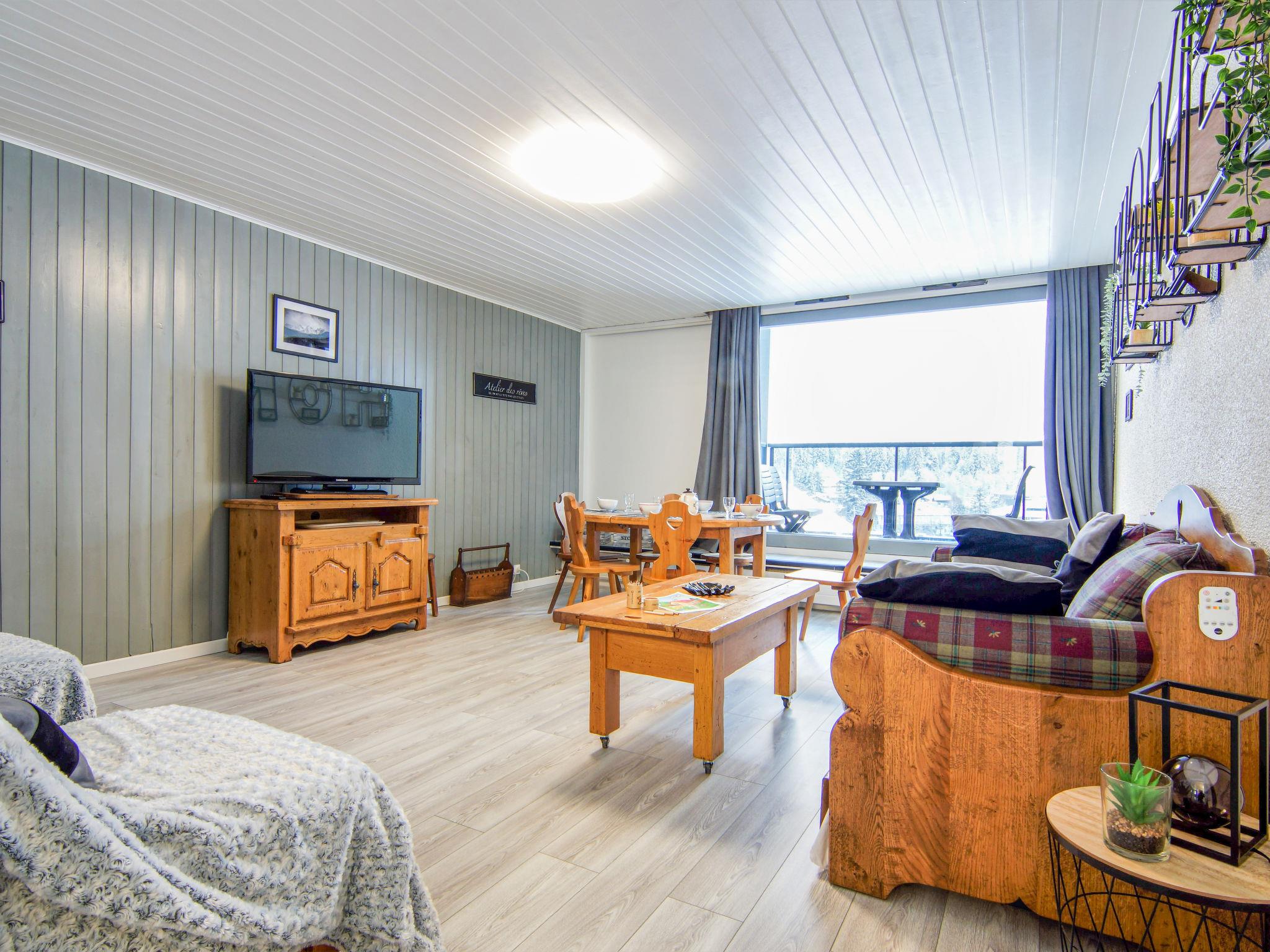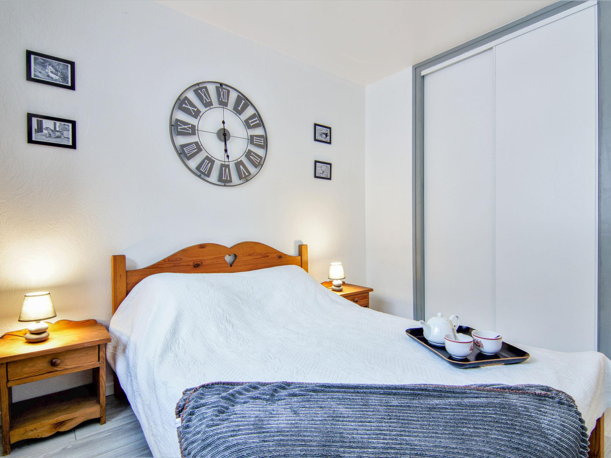 2-room apartment 52 m2 on 5th floor. Living/dining room with 1 pull-out bed (2 pers. 2 x 90 cm, length 190 cm), TV. Exit to the balcony. 1 room with 1 french bed (140 cm, length 190 cm). Kitchenette (1 induction hot plates, kettle, microwave, electric coffee machine). Bath/WC. Balcony, south-east facing position. Beautiful view of the mountains. Facilities: washing machine. Internet (WiFi, extra). Parking space n 8. Please note: TV only FR. Smoke alarm. 74056002697IC