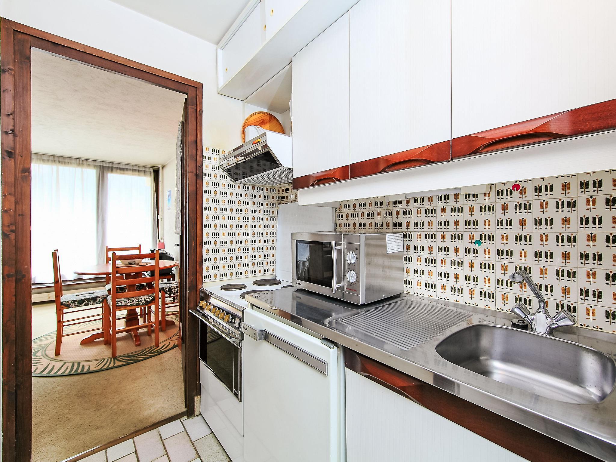 1-room apartment 30 m2, on the ground floor. Object suitable for 2 adults + 2 children. Living/dining room with panoramic window with 1 double sofabed and TV. Exit to the balcony. Small alcove with 1 x 2 bunk beds. Kitchenette (4 hot plates, kettle, microwave, electric coffee machine). Bathroom, sep. WC. Gas heating. Heating available only from 01.12. to 30.04. Balcony 6 m2, south-east facing position. Very beautiful view of the mountains. Facilities: Internet (WiFi, extra). Parking space n 103 au sous sol. Please note: parking space for small car only. TV only FR. Smoke alarm. Instead of an enclosed bedroom, some sleeping areas are located in an open-plan area (gallery, alcove, etc.). 74056002014WK
