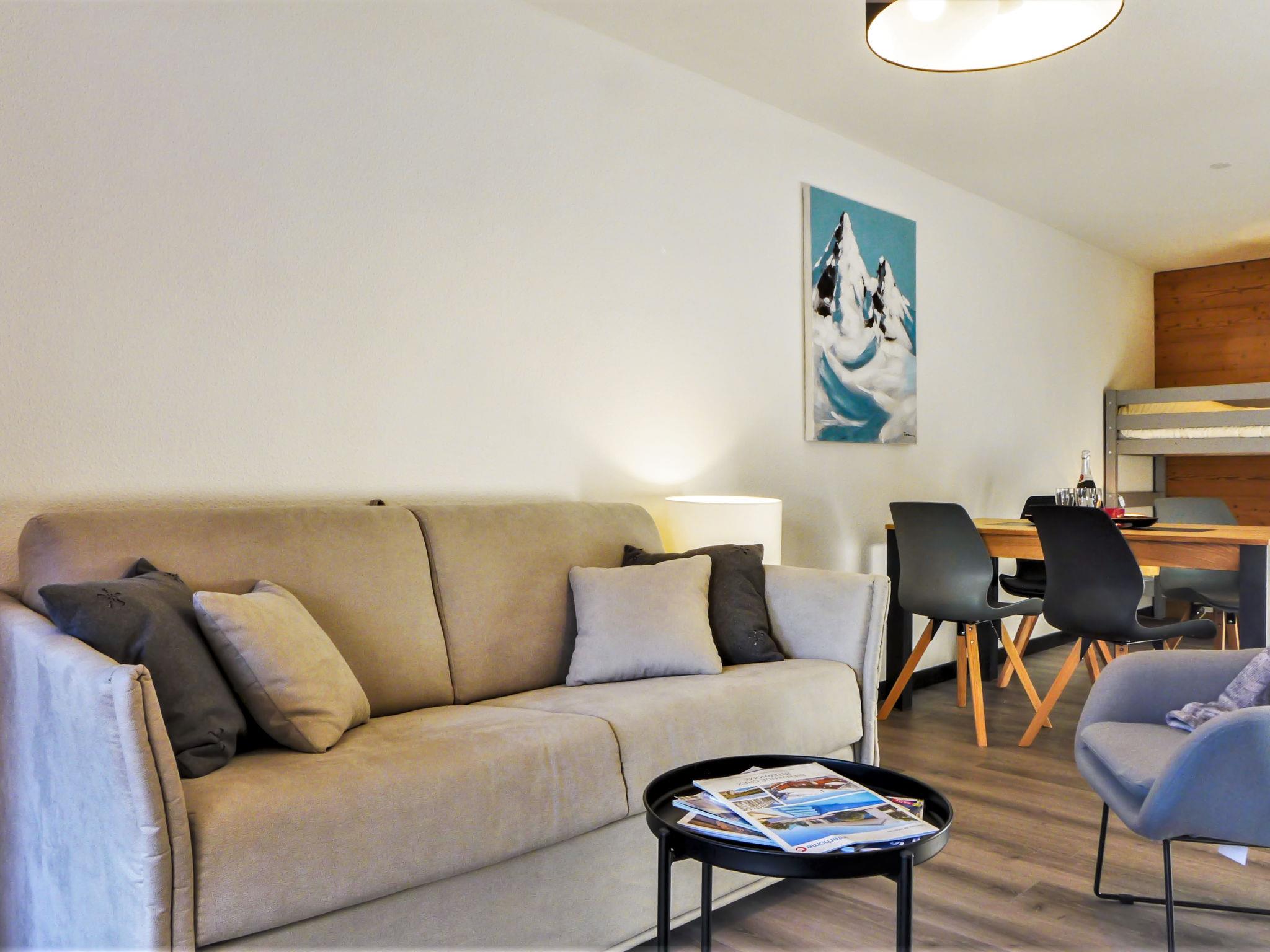 Residence "L'Espace Montagne", 4 storeys. 50 m from the centre. In the complex: lift. Shop 100 m, shopping centre 200 m, restaurant 30 m, bus stop "Place Mont-Blanc" 150 m, railway station "Chamonix Mont-Blanc" 300 m. Golf course (18 hole) 3 km, sports centre 500 m, skisport facilities 900 m, ski bus stop 300 m, ski school 450 m, cross country ski track 500 m. Nearby attractions: Téléphérique de l'Aiguille du Midi 900 m, Train du Montenvers Mer de Glace 400 m. Please note: the photograph shows a typical example. Additional accommodations can be booked.