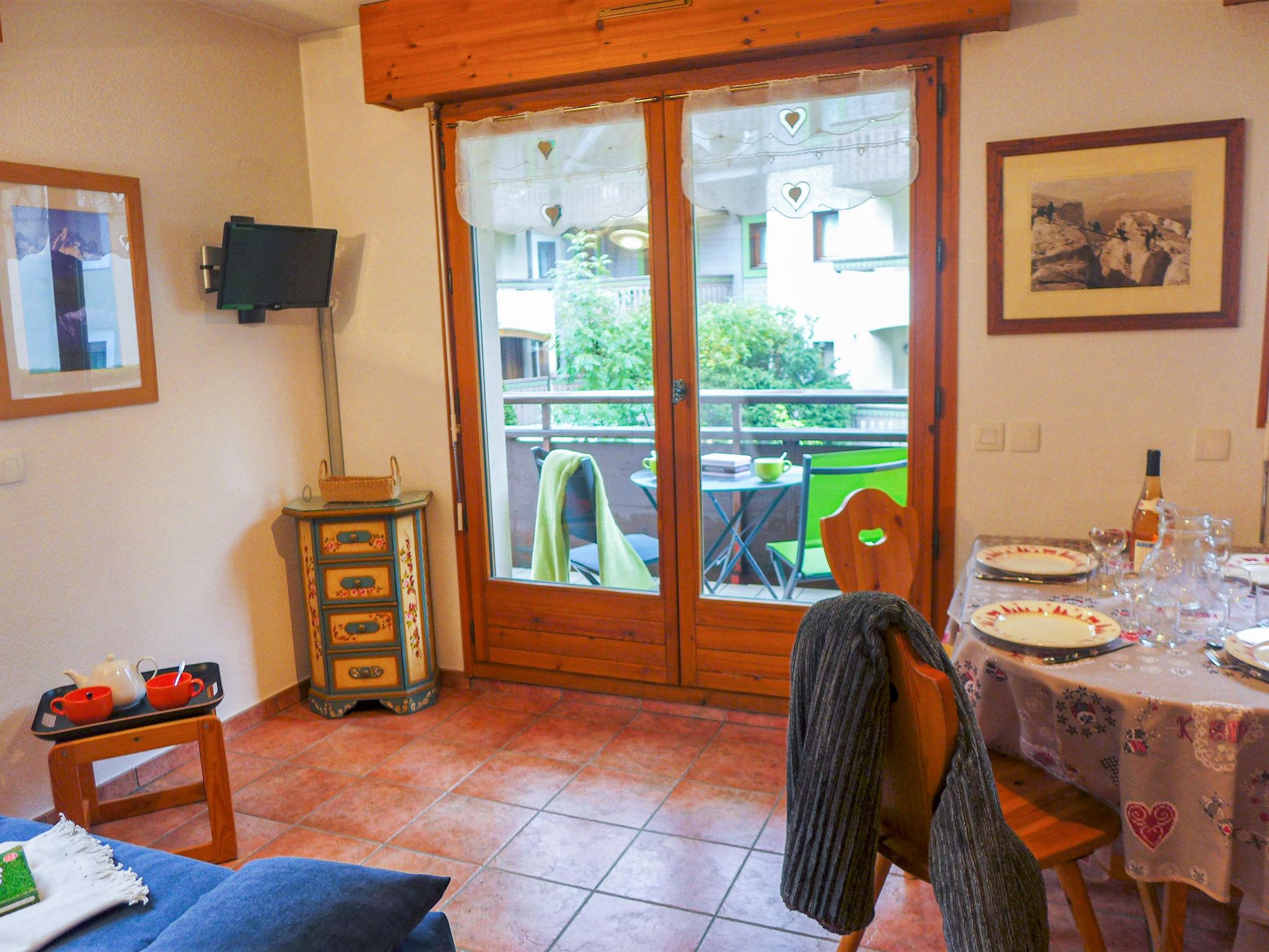 Residence "L'Espace Montagne", 4 storeys. 50 m from the centre. In the complex: lift. Shop 100 m, shopping centre 200 m, restaurant 30 m, bus stop "Place Mont-Blanc" 150 m, railway station "Chamonix Mont-Blanc" 300 m. Golf course (18 hole) 3 km, sports centre 500 m, skisport facilities 900 m, ski bus stop 300 m, ski school 450 m, cross country ski track 500 m. Nearby attractions: Téléphérique de l'Aiguille du Midi 900 m, Train du Montenvers Mer de Glace 400 m. Please note: the photograph shows a typical example. Additional accommodations can be booked.