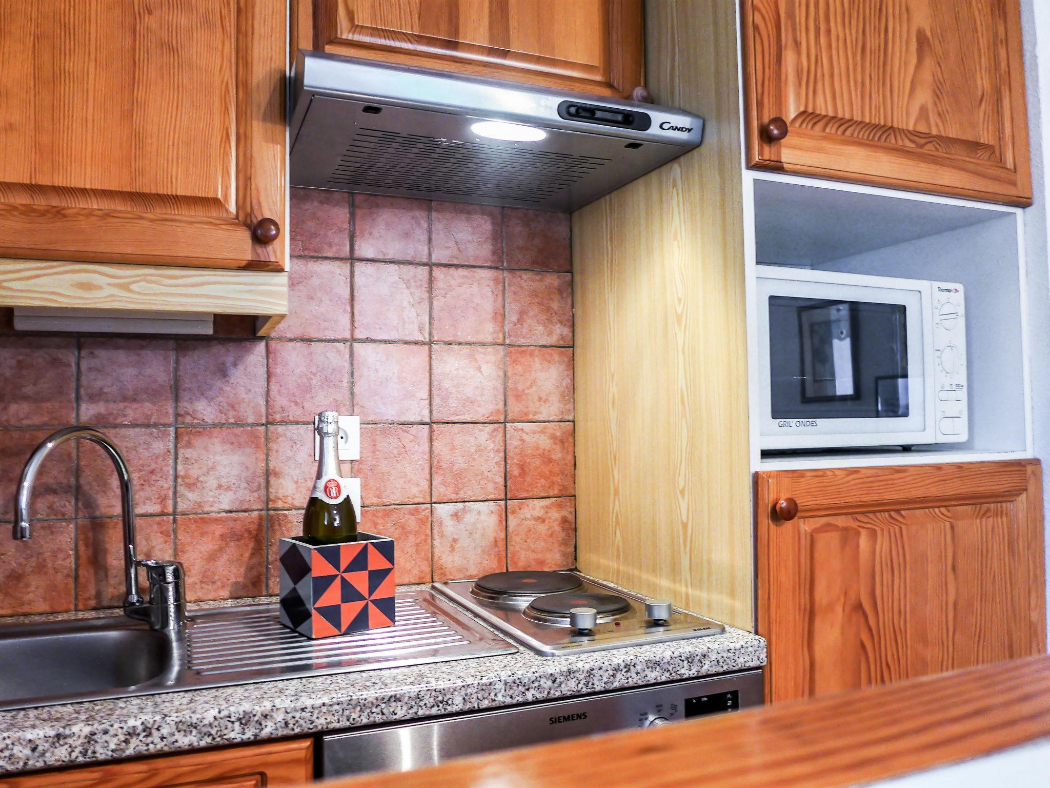 2-room apartment 31 m2 on 1st floor. Living/dining room with 1 double sofabed (140 cm, length 190 cm), TV. Exit to the balcony. 1 room with 1 double bed (140 cm, length 190 cm). Kitchenette (dishwasher, 2 ceramic glass hob hotplates, kettle, electric coffee machine, Capsules for coffee machine (Tassimo) extra, combination microwave). Shower, sep. WC. Electric heating, boiler. Balcony, north-east facing position. Balcony furniture. View of the mountains. Facilities: Internet (WiFi, extra). Please note: no parking. TV only FR. Smoke alarm. 740560025907Y