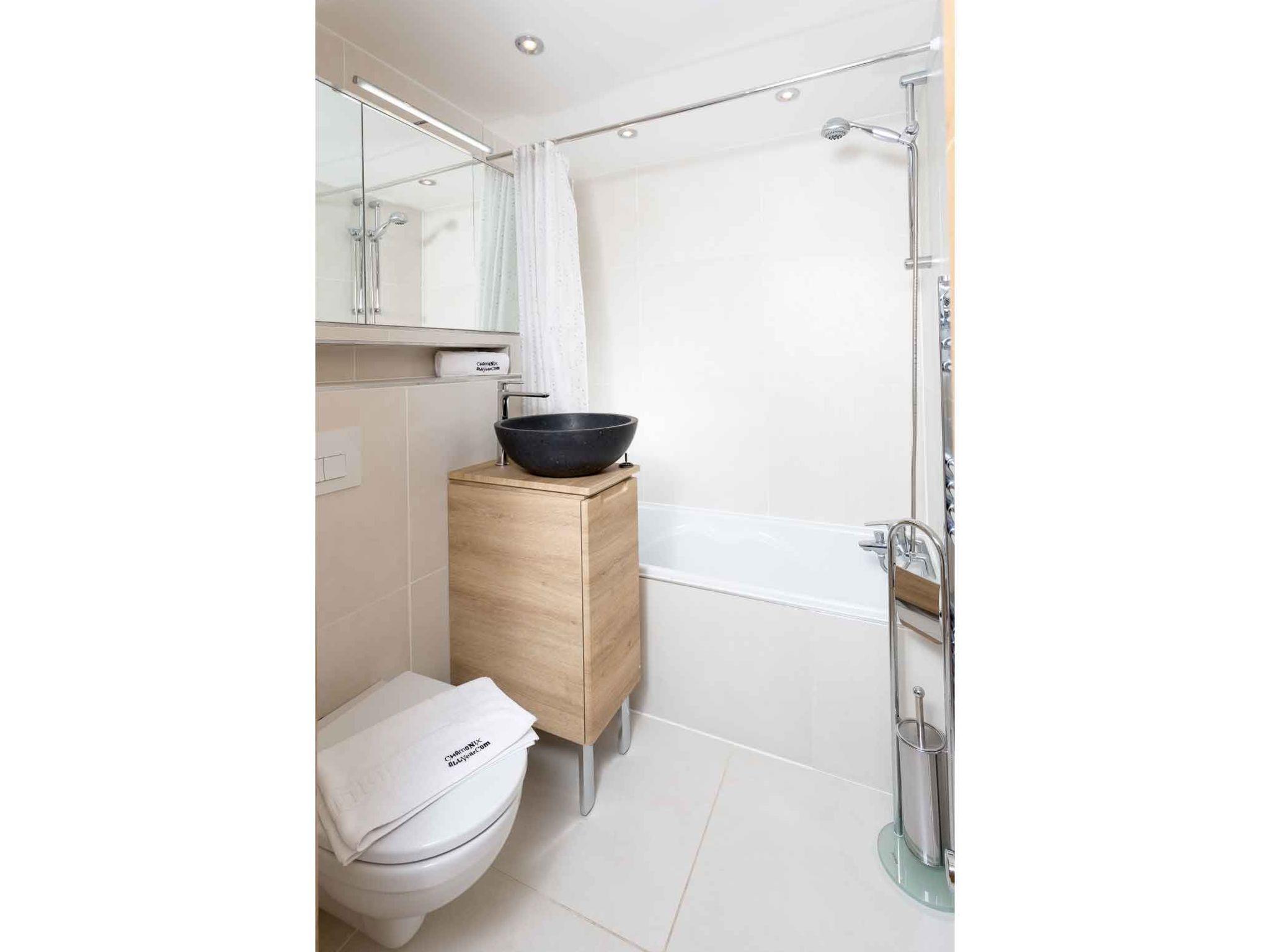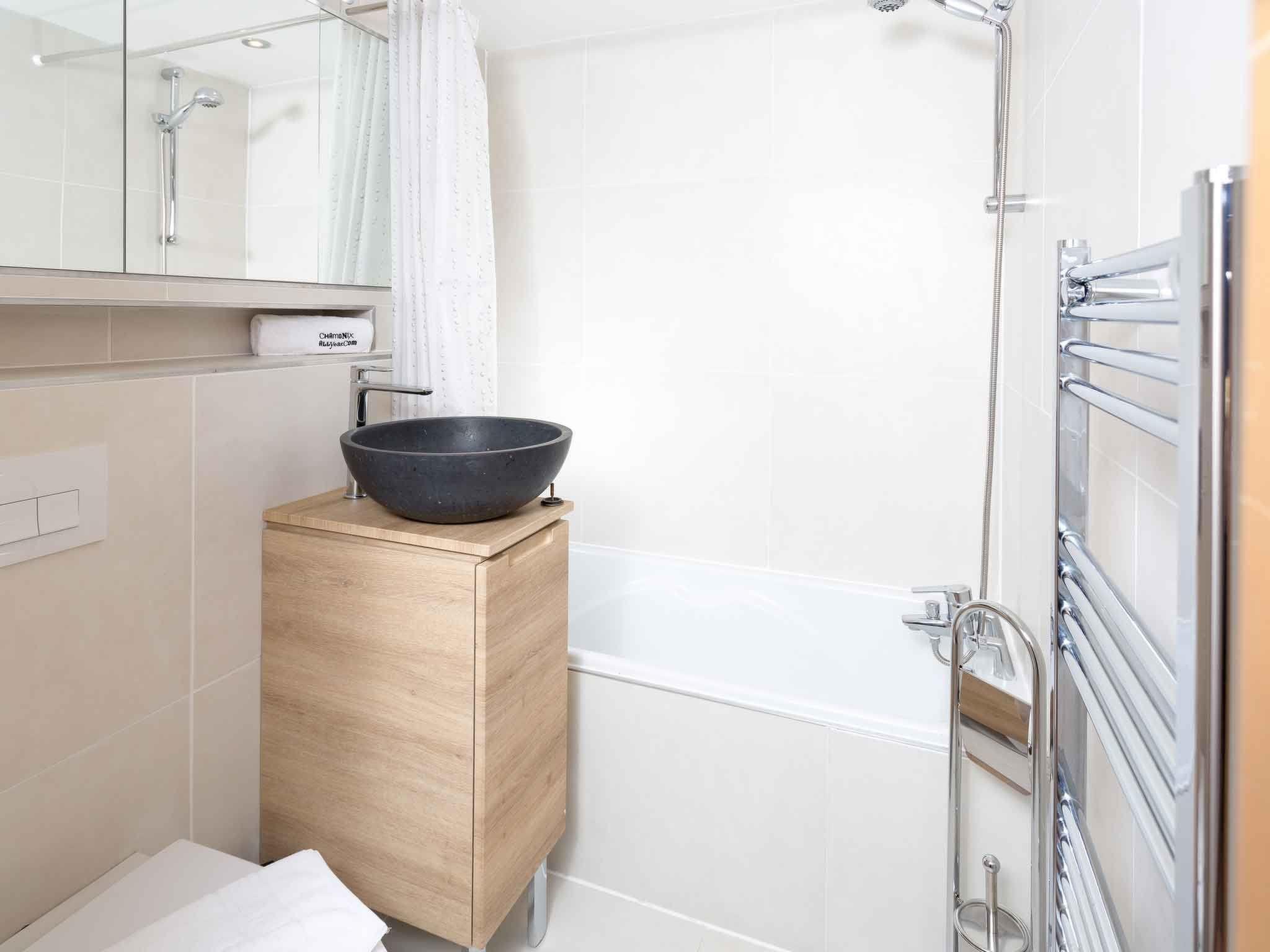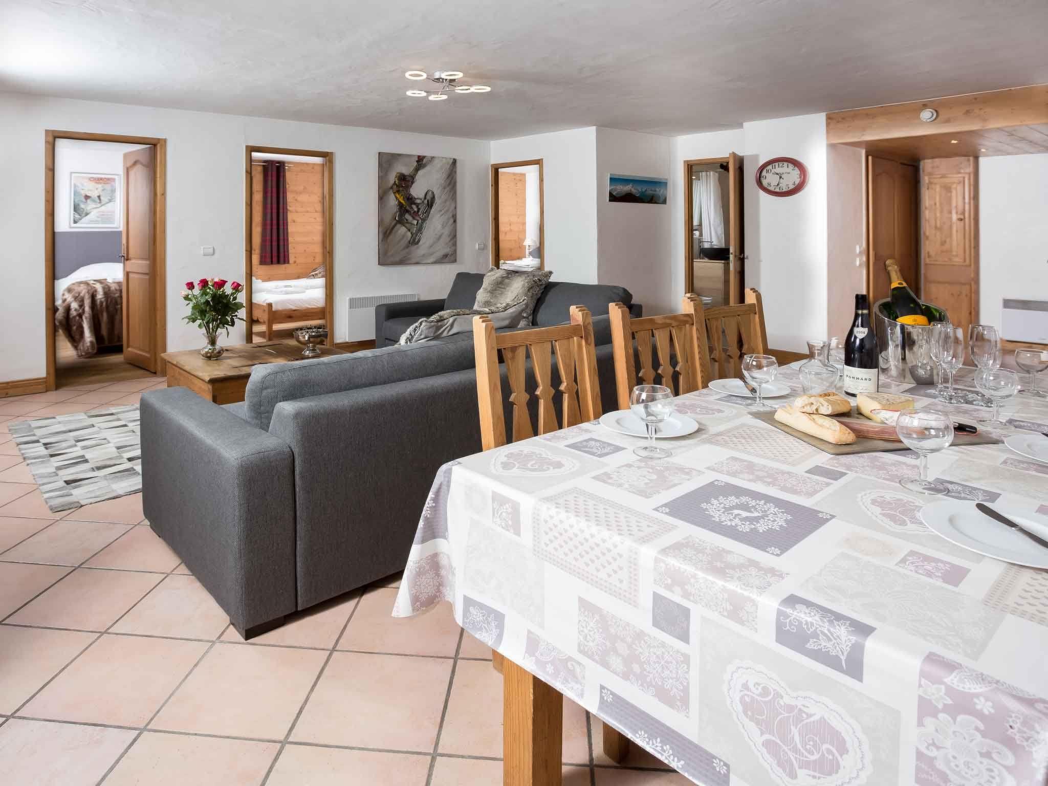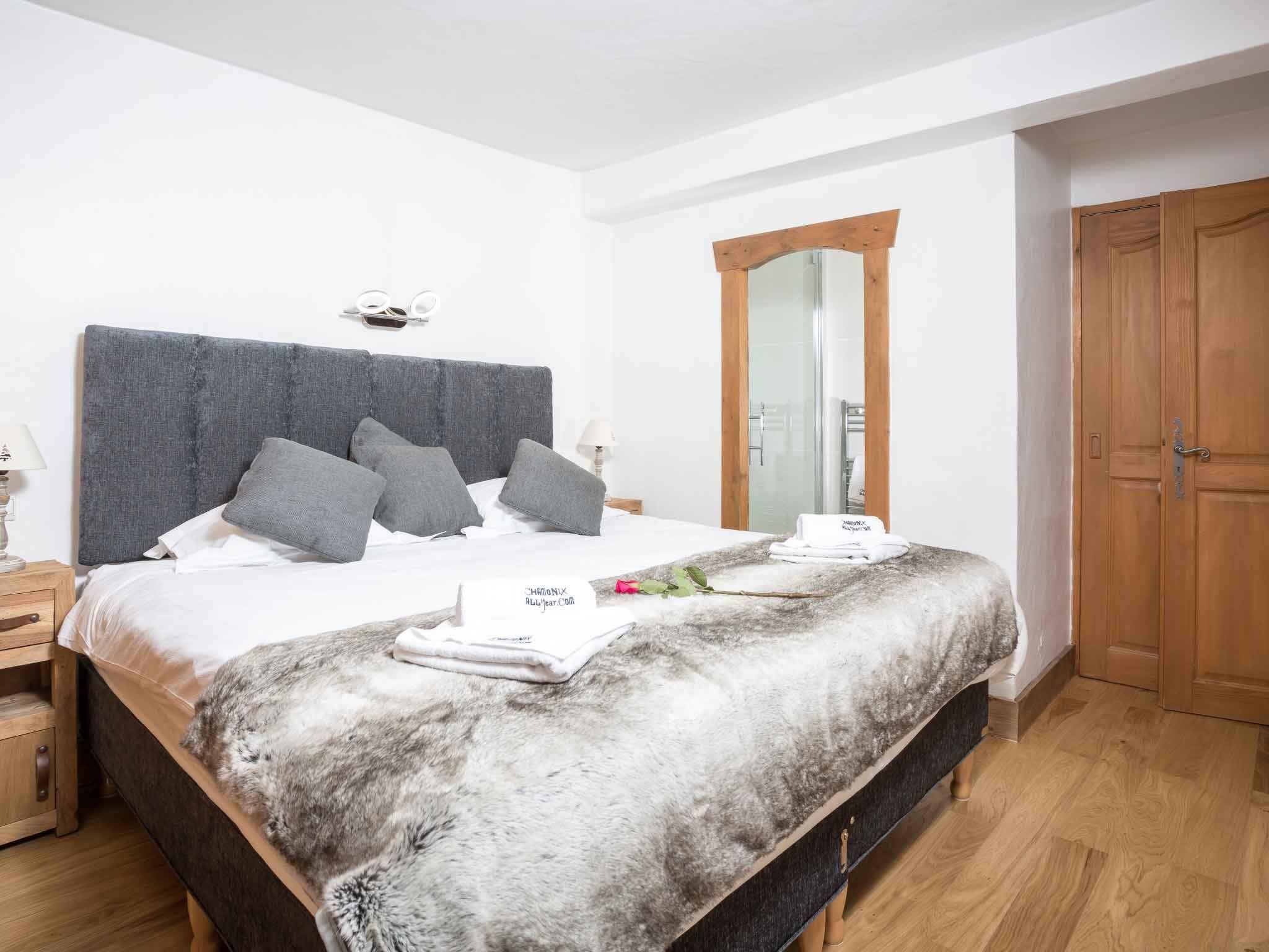 Ginabelle 8 apartment is a superb newly furnished Chamonix property, situated right in the centre of town, overlooking Place du Mont Blanc. This Chamonix property has 3 good sized bedrooms, 2 bathrooms and a separate additional WC. Ginabelle 8 is located close to all the shops, restaurants and bars as well as the Planards ski nursery slopes. Ginabelle 8 apartment is spacious at 80sqm, with a large open-plan living area, well-equipped kitchen, dining table for 6-8, and lounge seating for 6. The master bedroom has a superking bed with ensuite bathroom with shower, the 2nd bedroom can be either twin or king bed, the third has twin beds, and they both share a bathroom with bath shower. There is a good size balcony at Ginabelle 8 apartment with table and chairs leading off the living room, and spectacular panoramic views. There is one underground parking space for your use, and there is also free wifi in the apartment and satellite TV and DVD player.