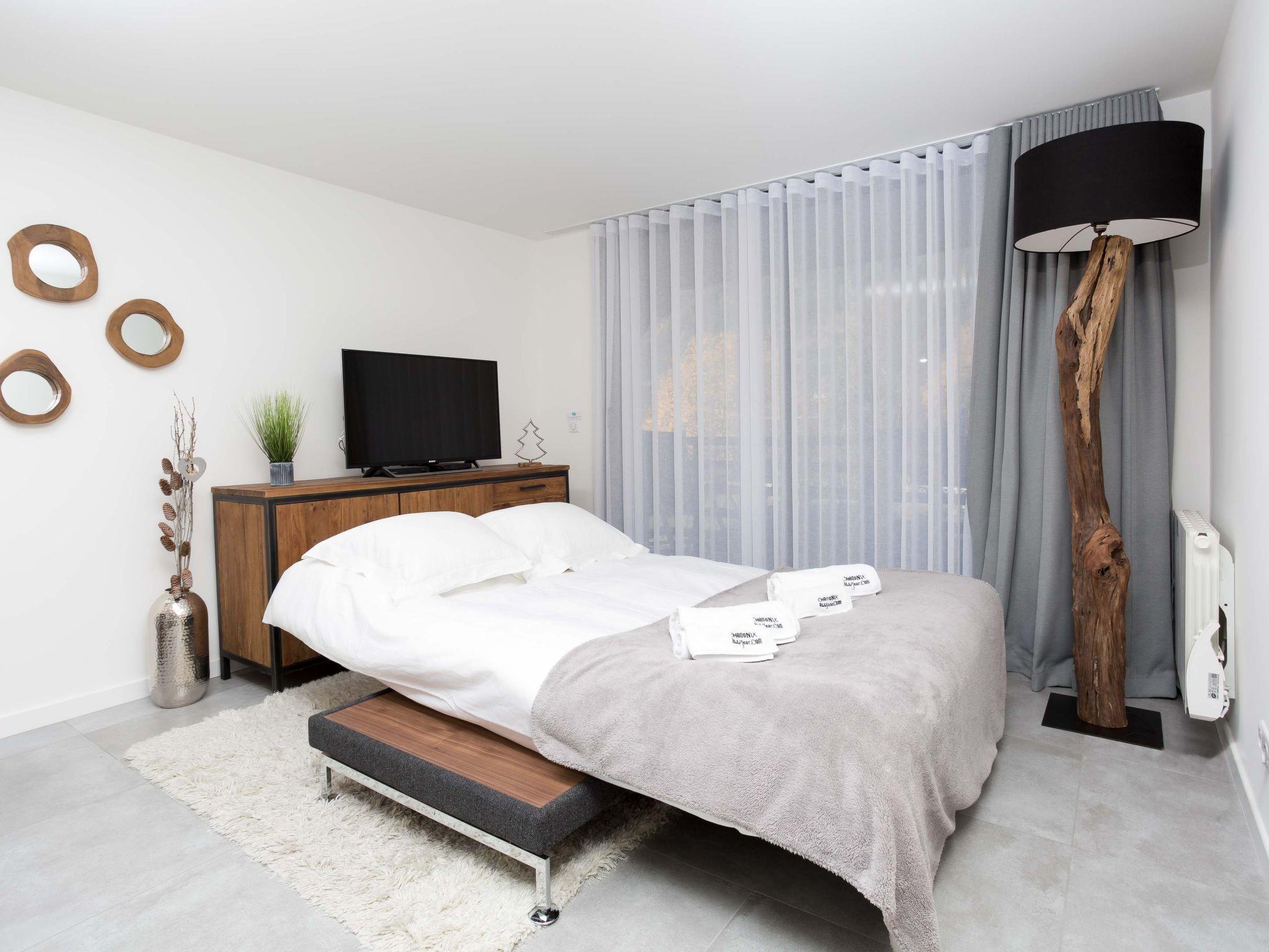 La Cordee 412 Apartment has an open living area, with a well-equipped modern kitchen. You'll find everything you need for a self-catered holiday including a microwave and real oven, a Nespresso coffee machine and a dishwasher. The dining table is full-sized for 4 people, so there'll be no knocking elbows. And the sitting area has a comfortable and stylish sofa, as well as opening out onto the balcony with table and seating for 2-4 people.